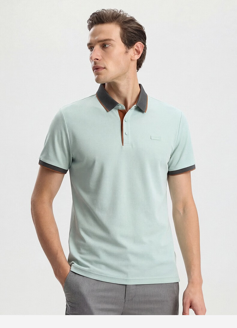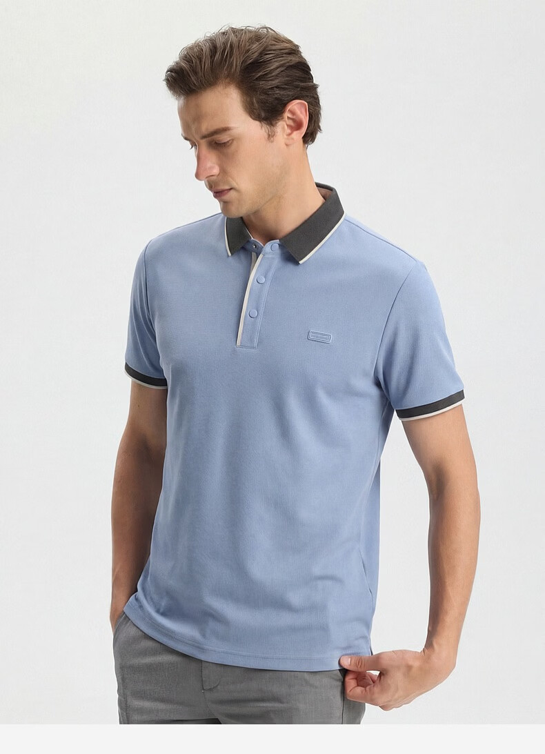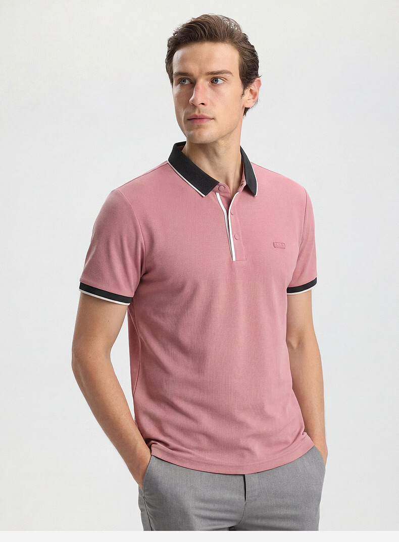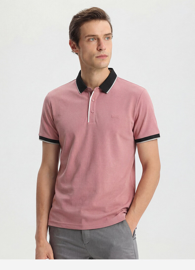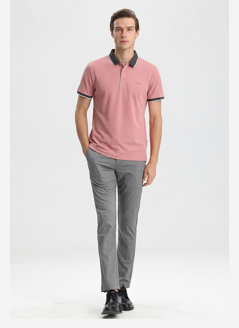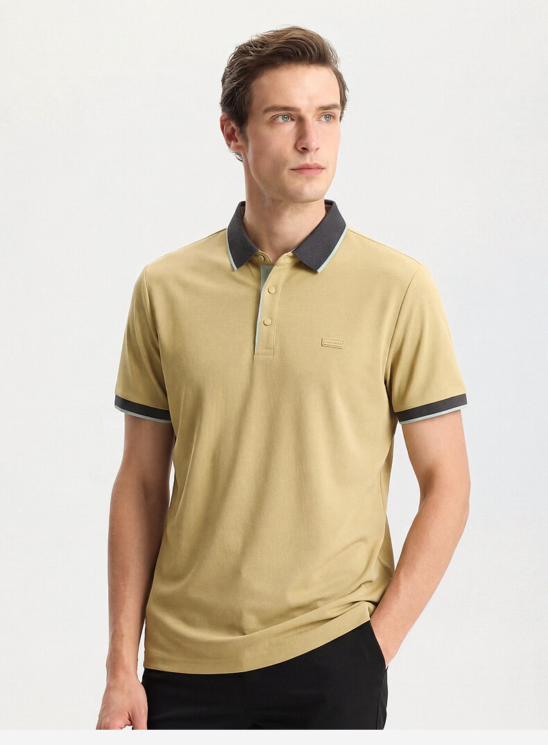 SHANSHAN杉杉【无痕商务休闲】短袖t恤男撞色翻领POLO衫锦氨夏季 皮红色 XL /180