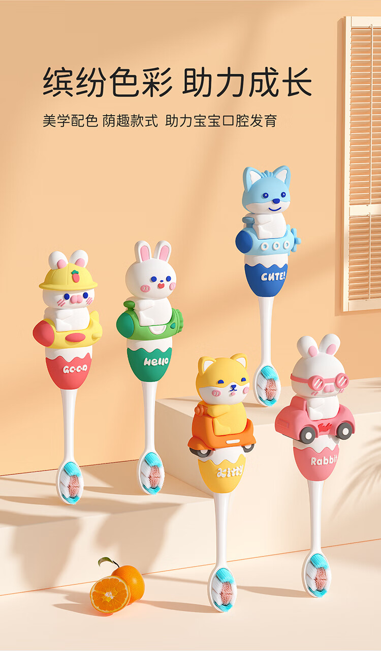 英格翰儿童牙刷宝宝婴儿换牙期0-3岁-6-12岁刷头细软毛刷幼儿园小学生 【0-6岁】儿童萌宠牙刷【5支】