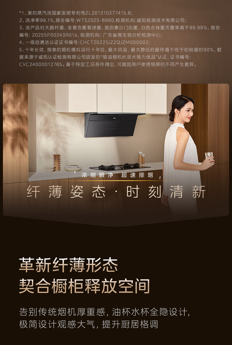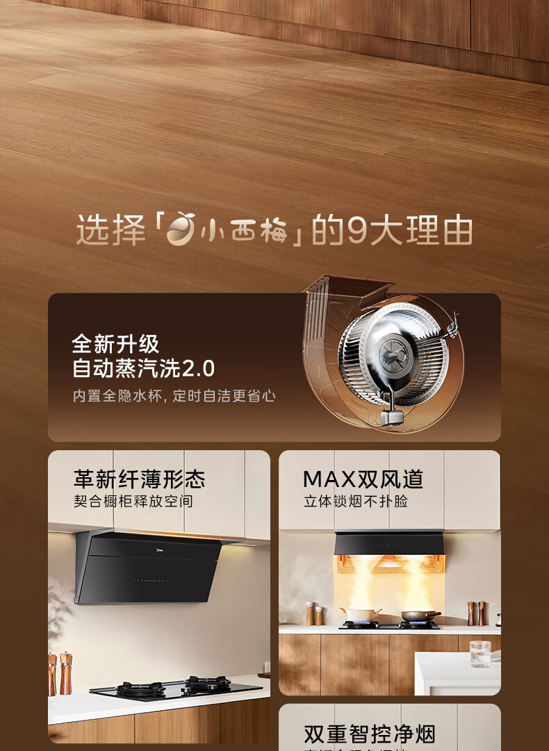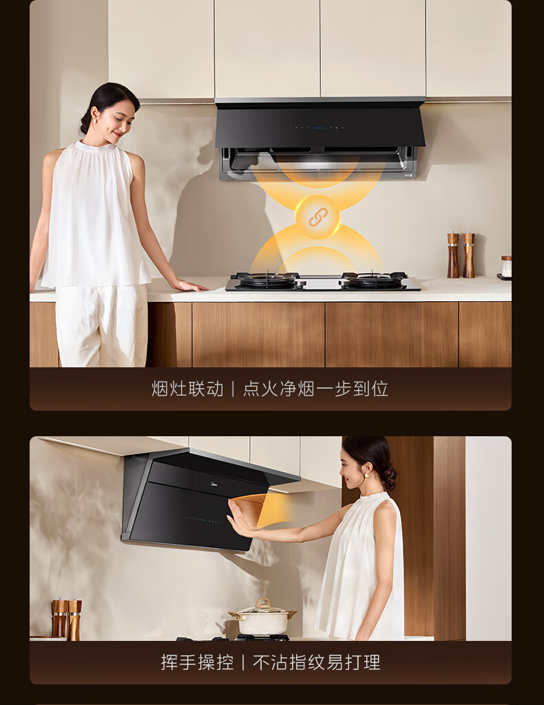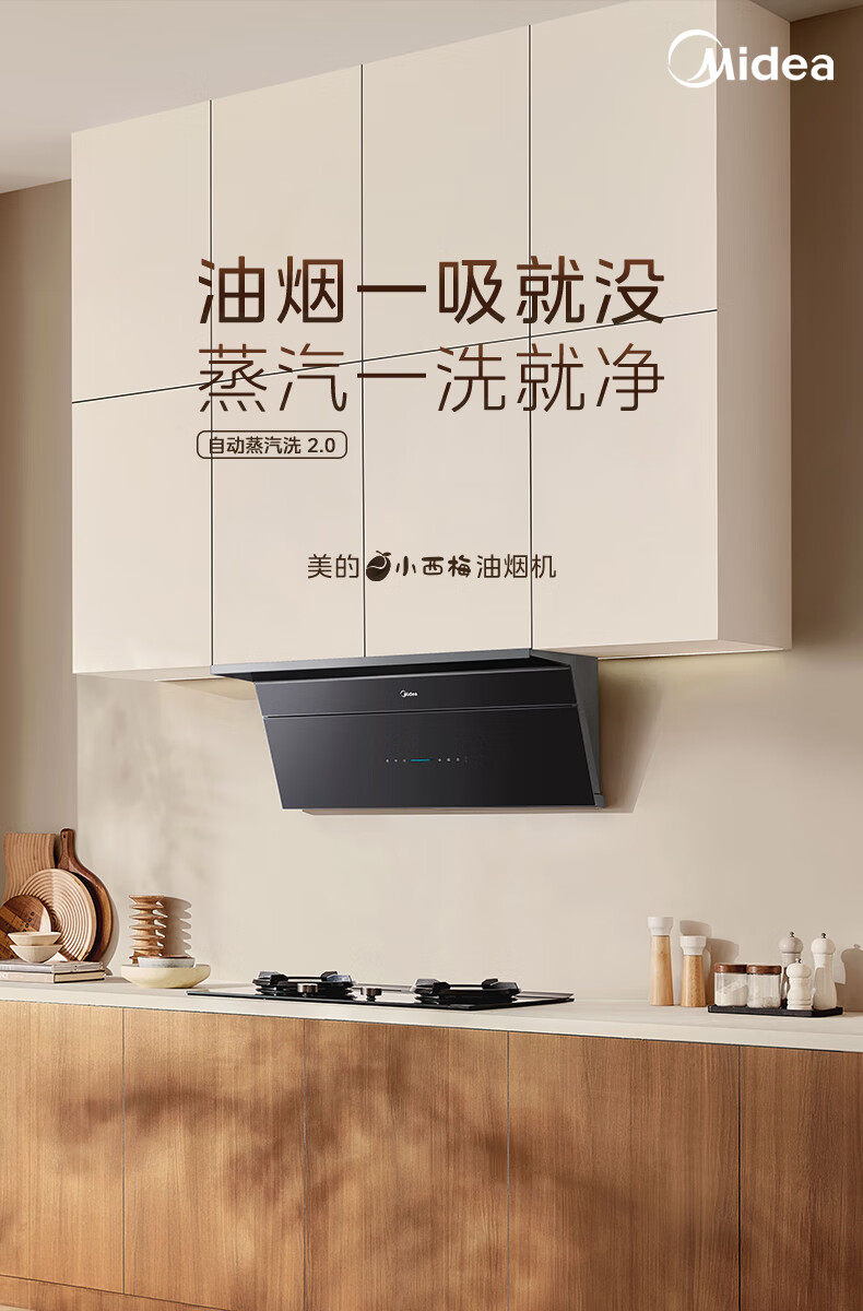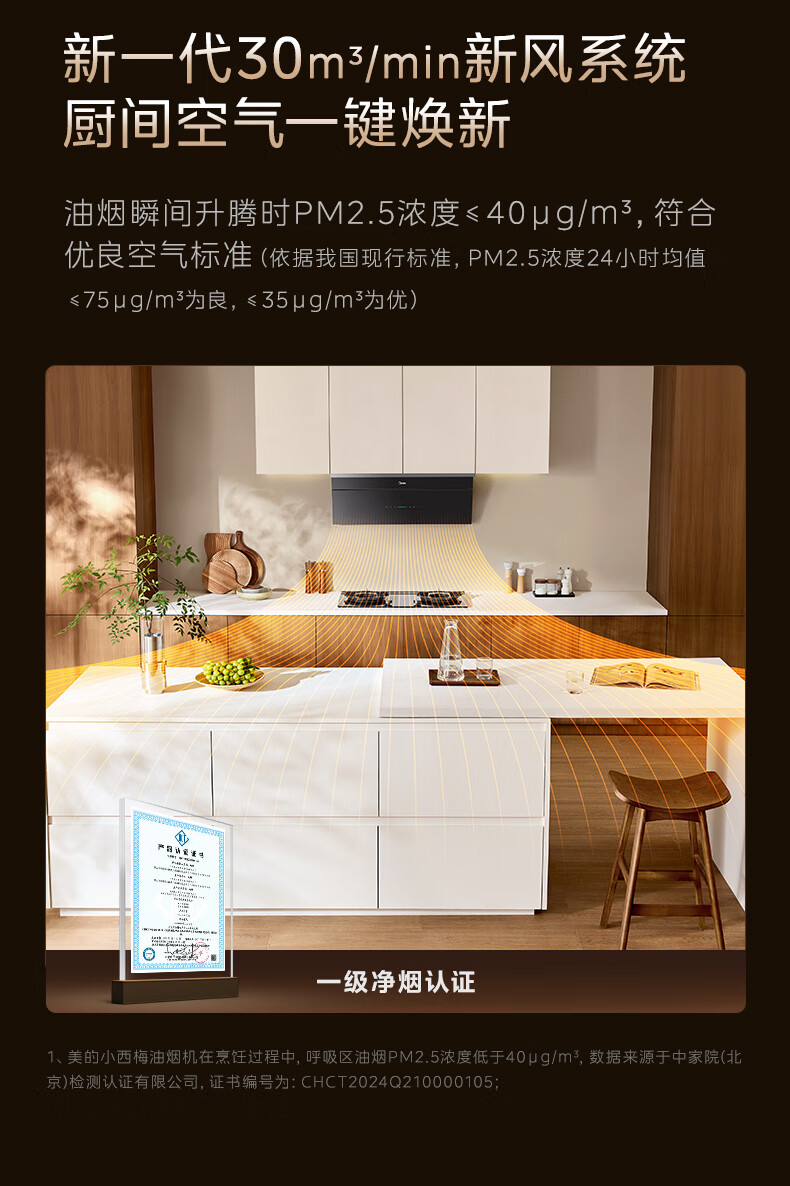 美的(Midea)【小西梅】油烟机全自动蒸汽洗2.0 30风量顶侧一体大吸力 MAX双风道吸排油烟机 以旧换新AK11