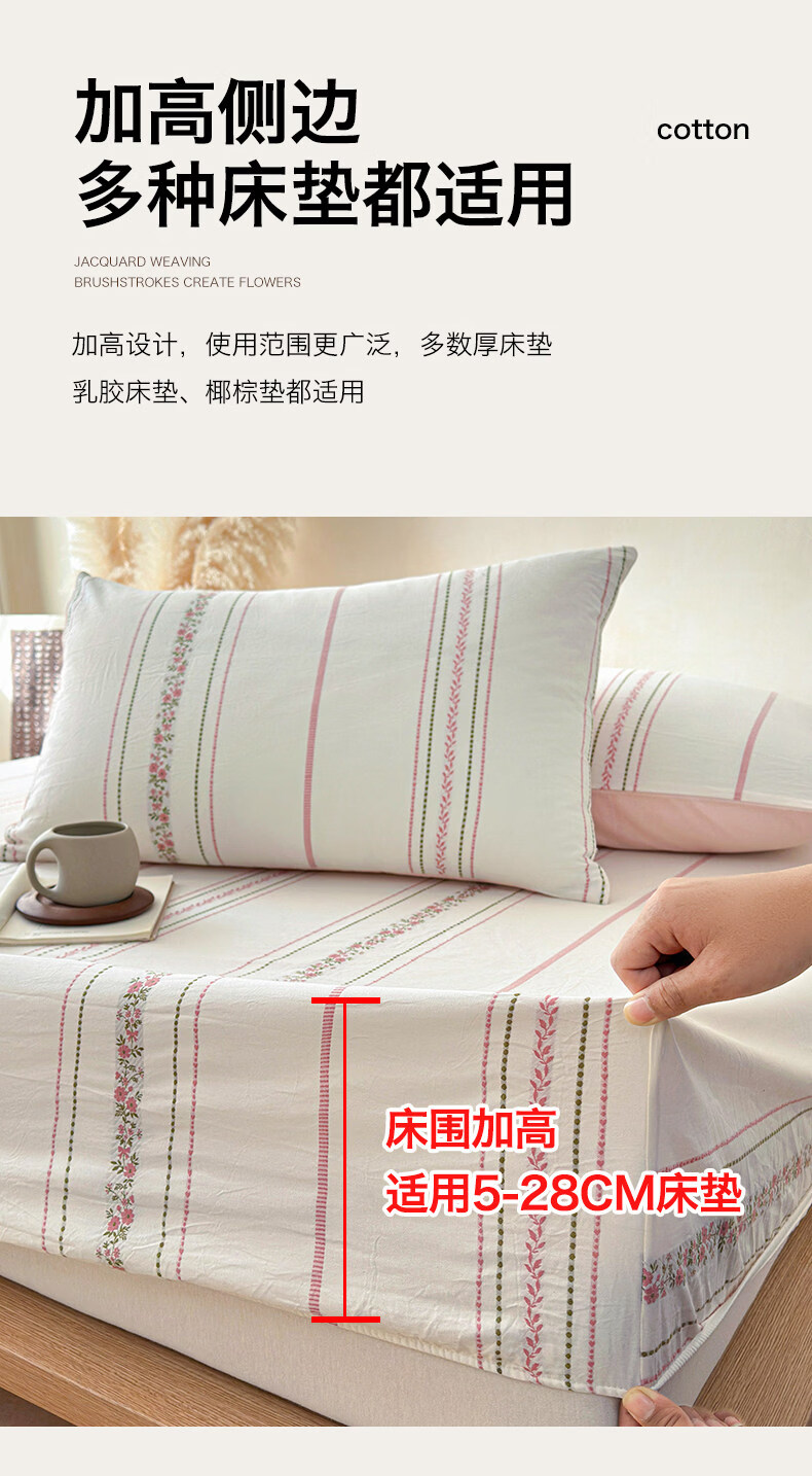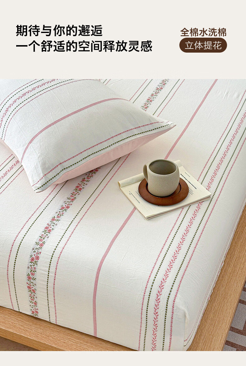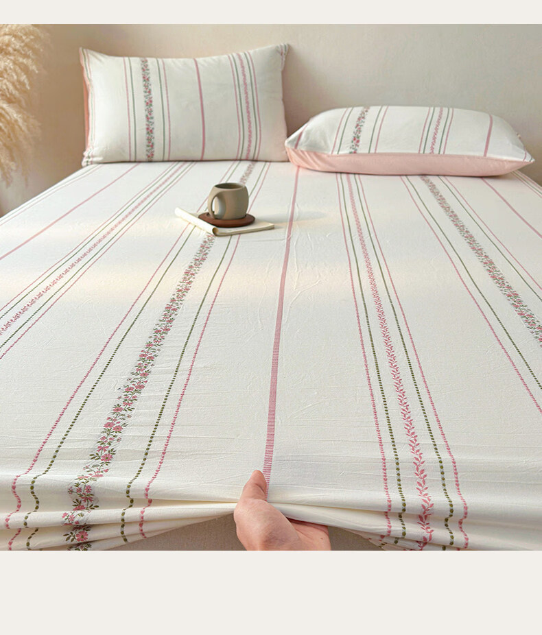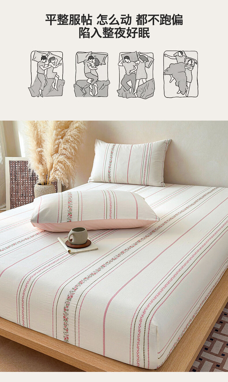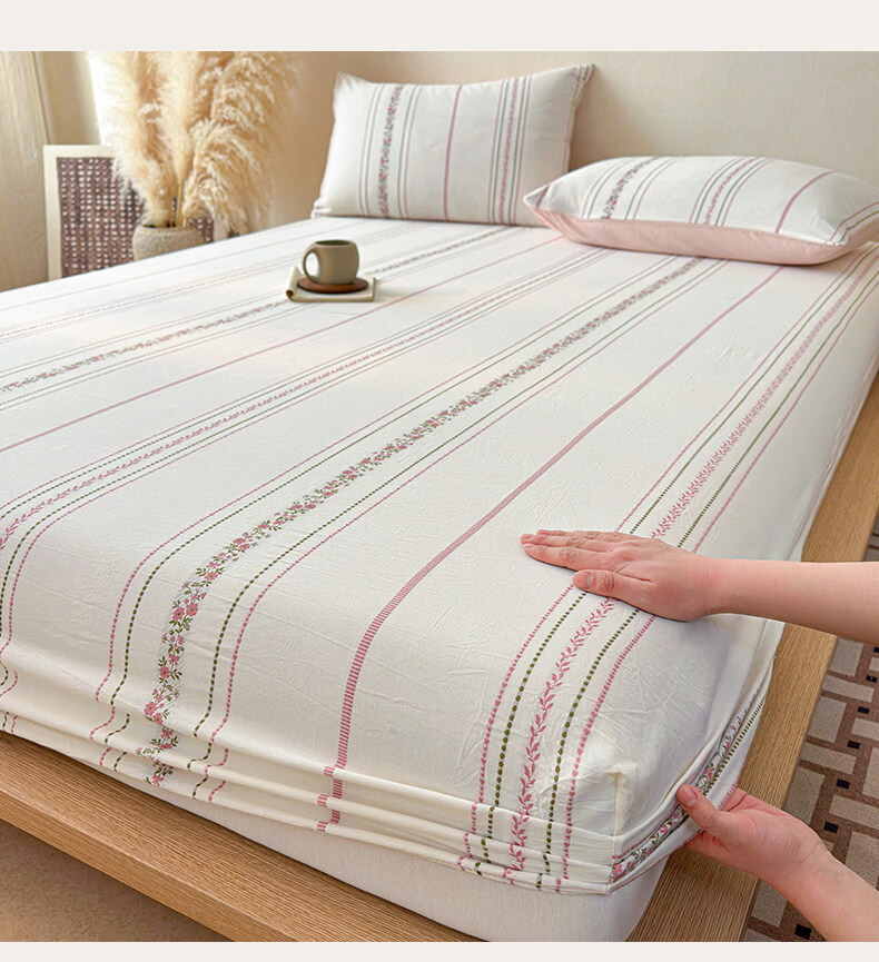 无印良品A类60支水洗棉全棉床笠纯棉床罩1.8x2米床垫保护套床上用品三件套 萦草-兰 120cm*200cm 单床笠