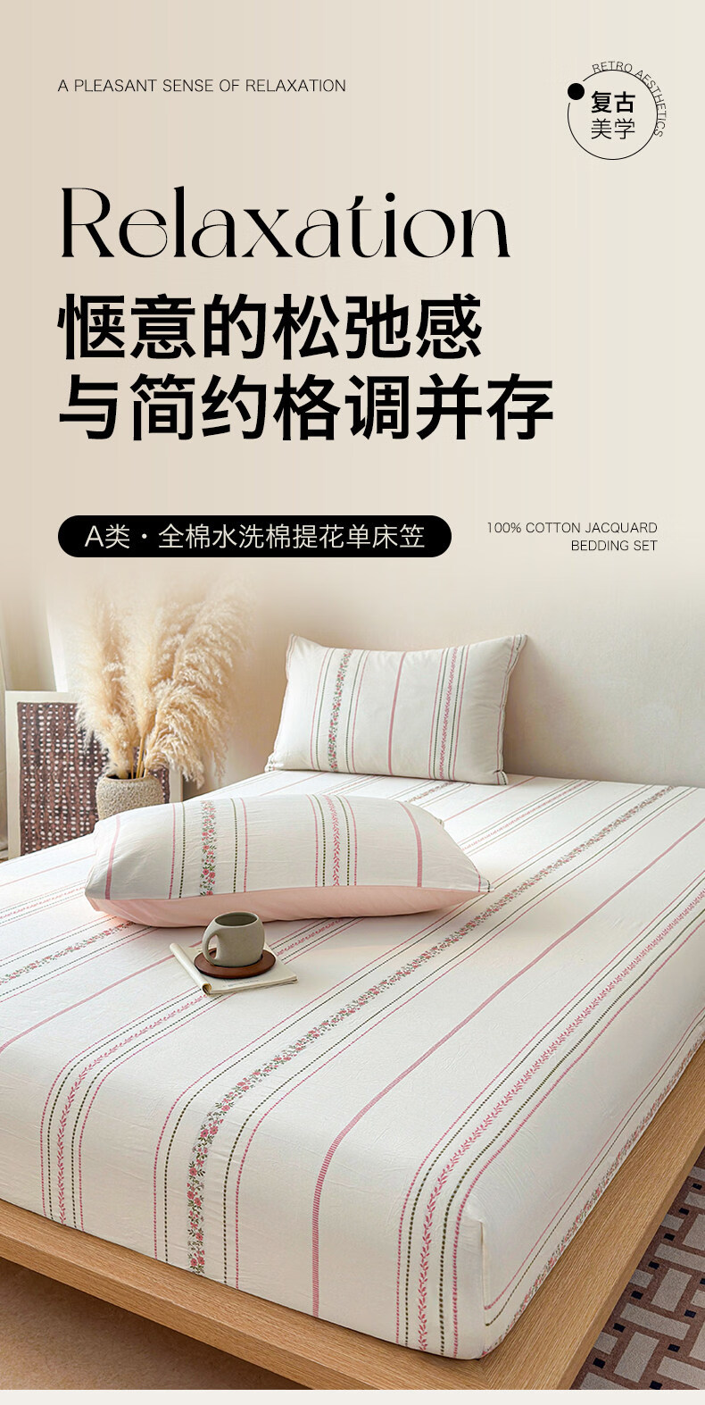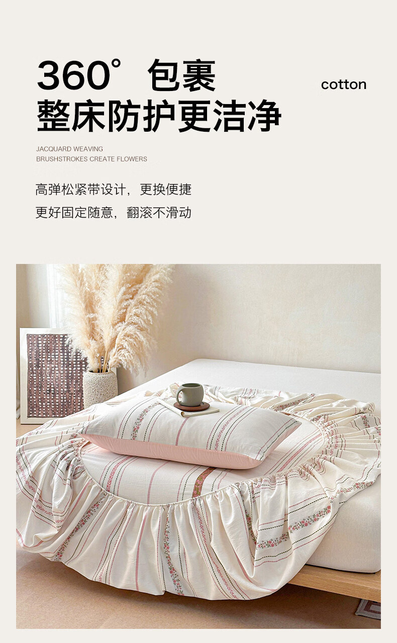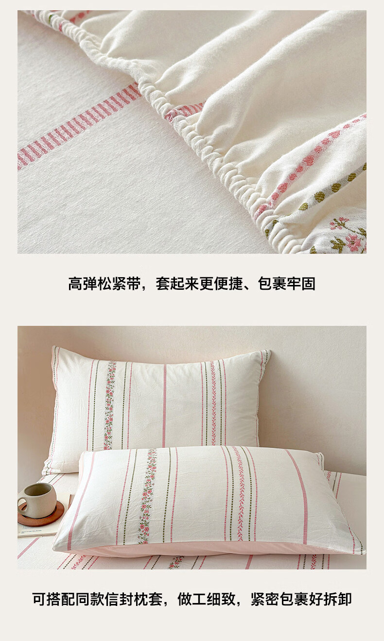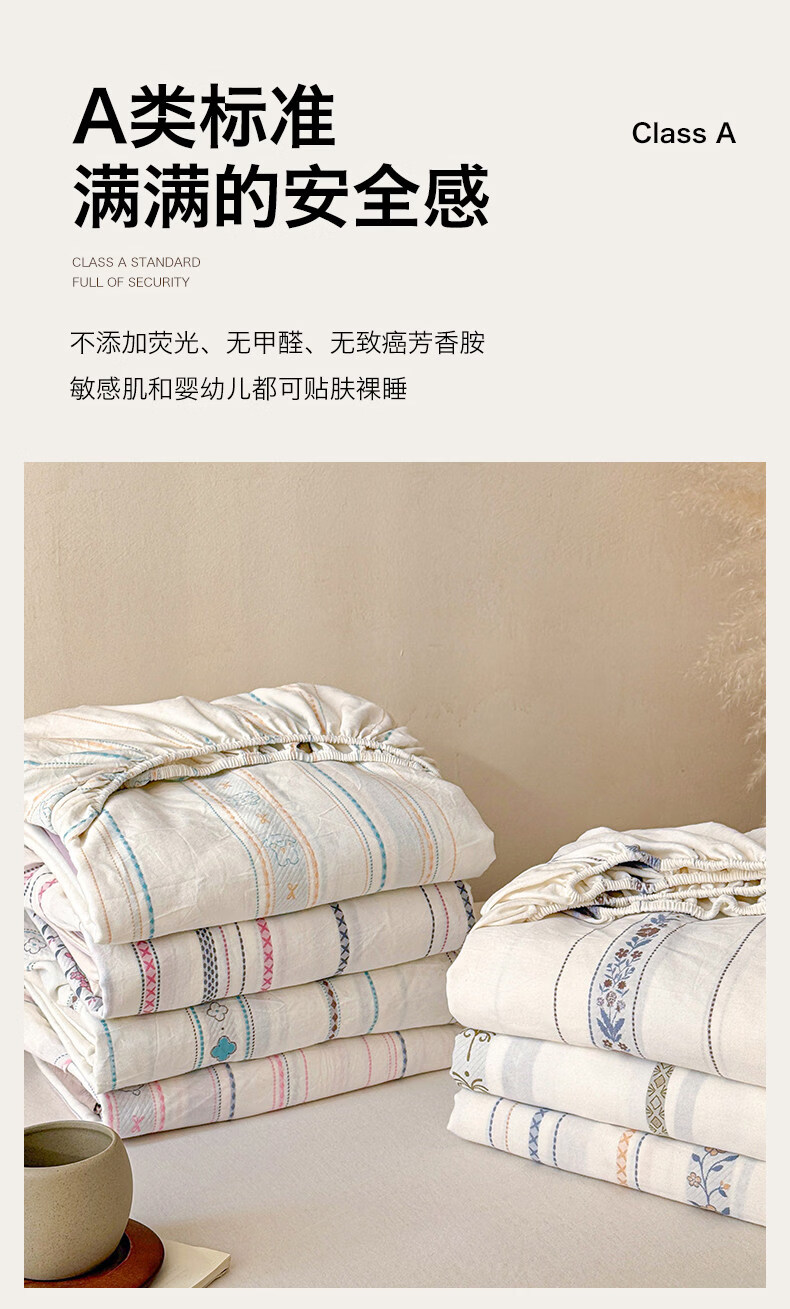 无印良品A类60支水洗棉全棉床笠纯棉床罩1.8x2米床垫保护套床上用品三件套 萦草-兰 120cm*200cm 单床笠