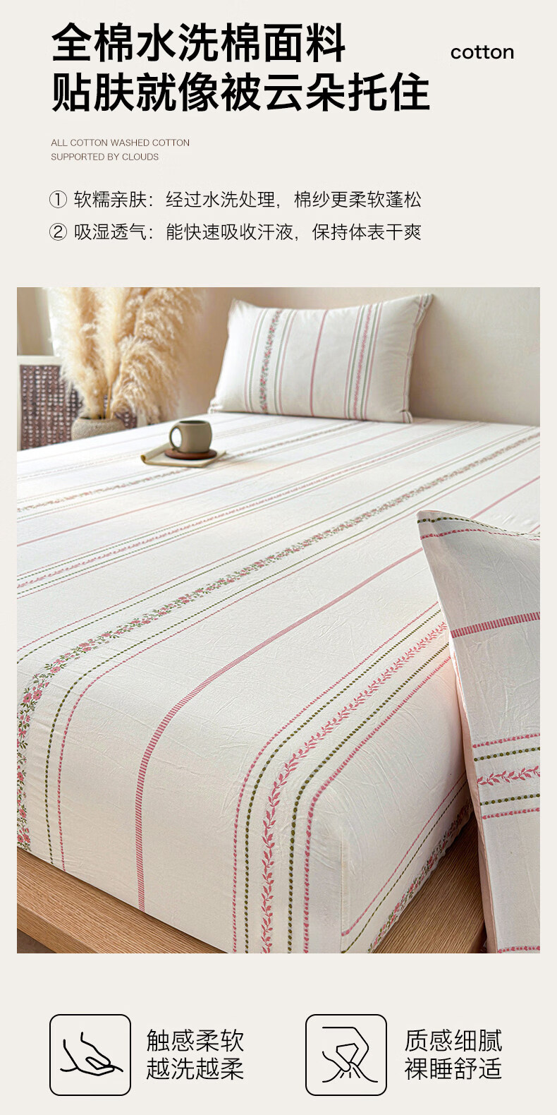 罗兰家纺双面全棉床褥垫薄垫防滑四季软垫单双人床床垫保护垫1.8m床可水洗 SW 双面全棉床褥保护垫-棉朵 90*200cm