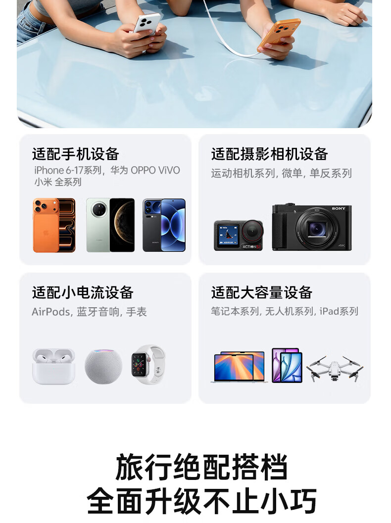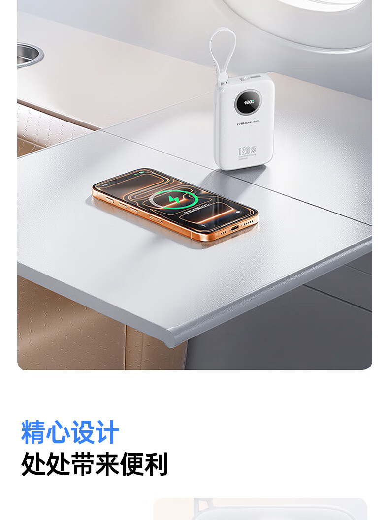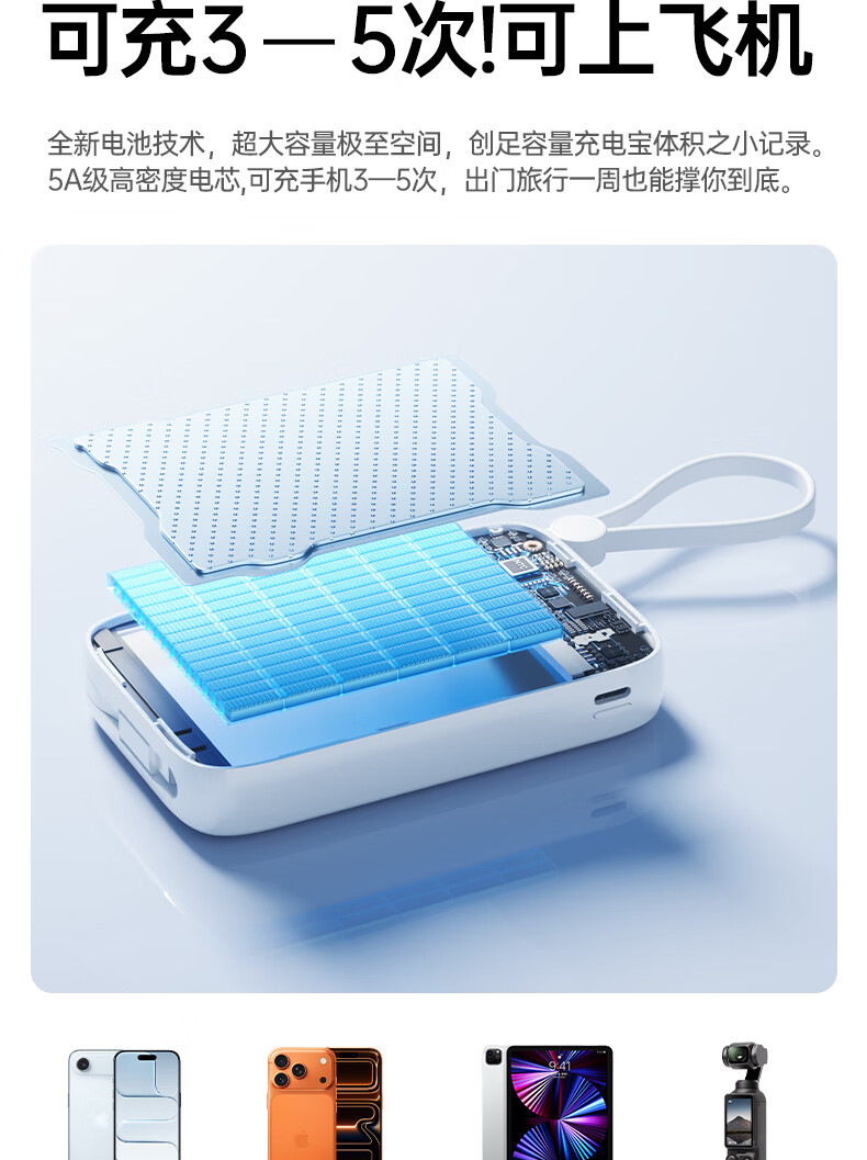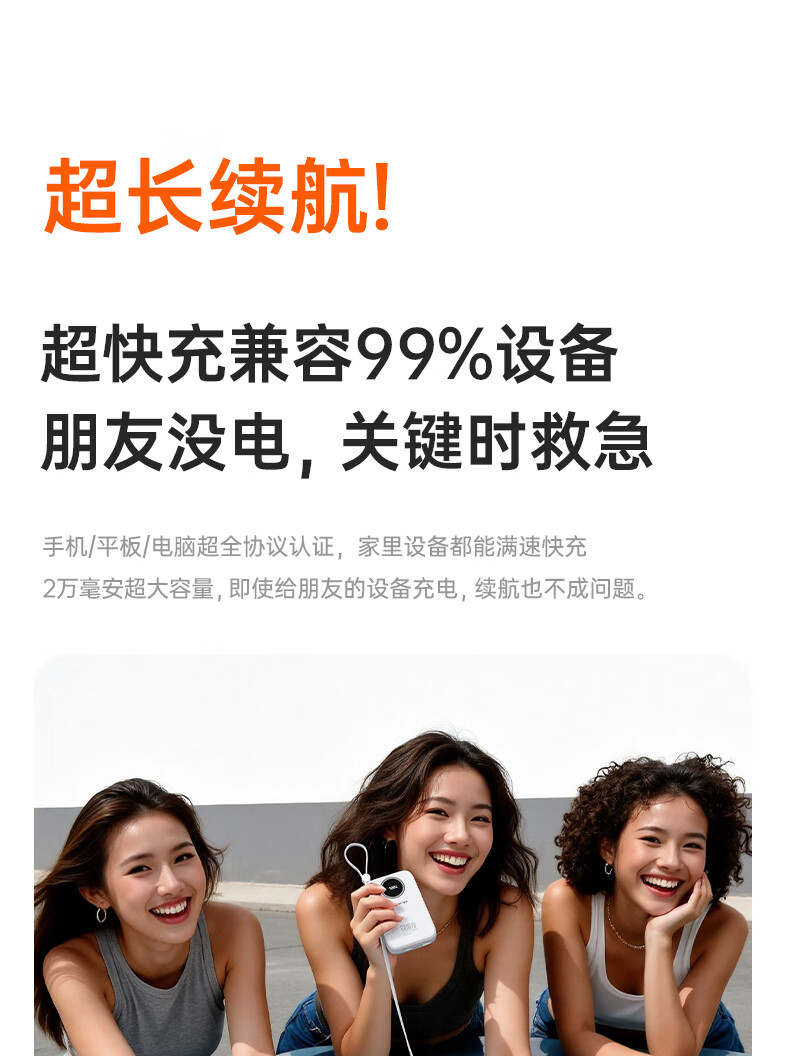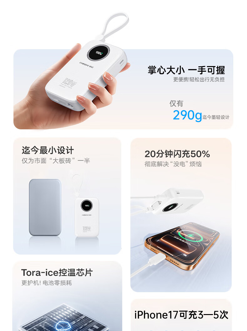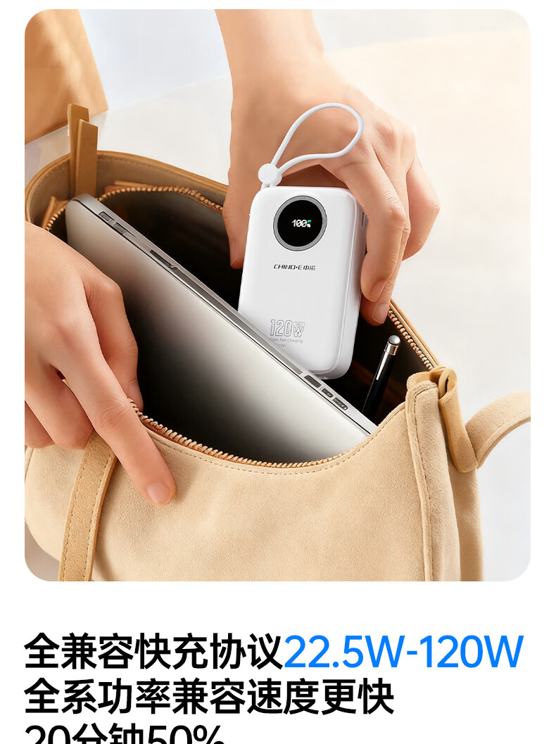 中诺【新国标3C认证 可上飞机高铁 】充电宝20000毫安自带线全兼容120W充电宝十大排位适用苹果小米 超薄【1万毫安 全兼容22.5-120W快充协议】
