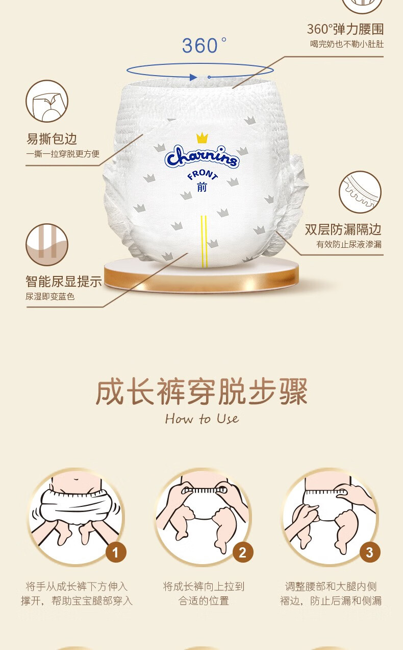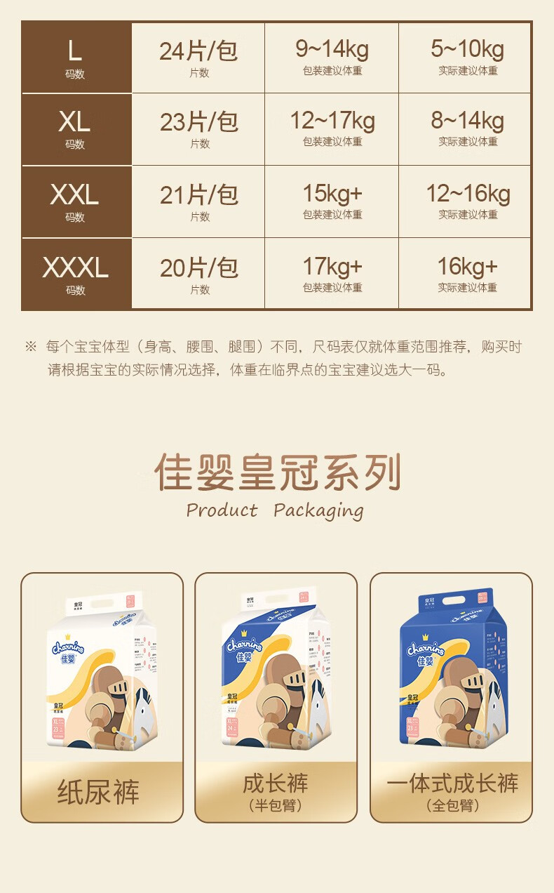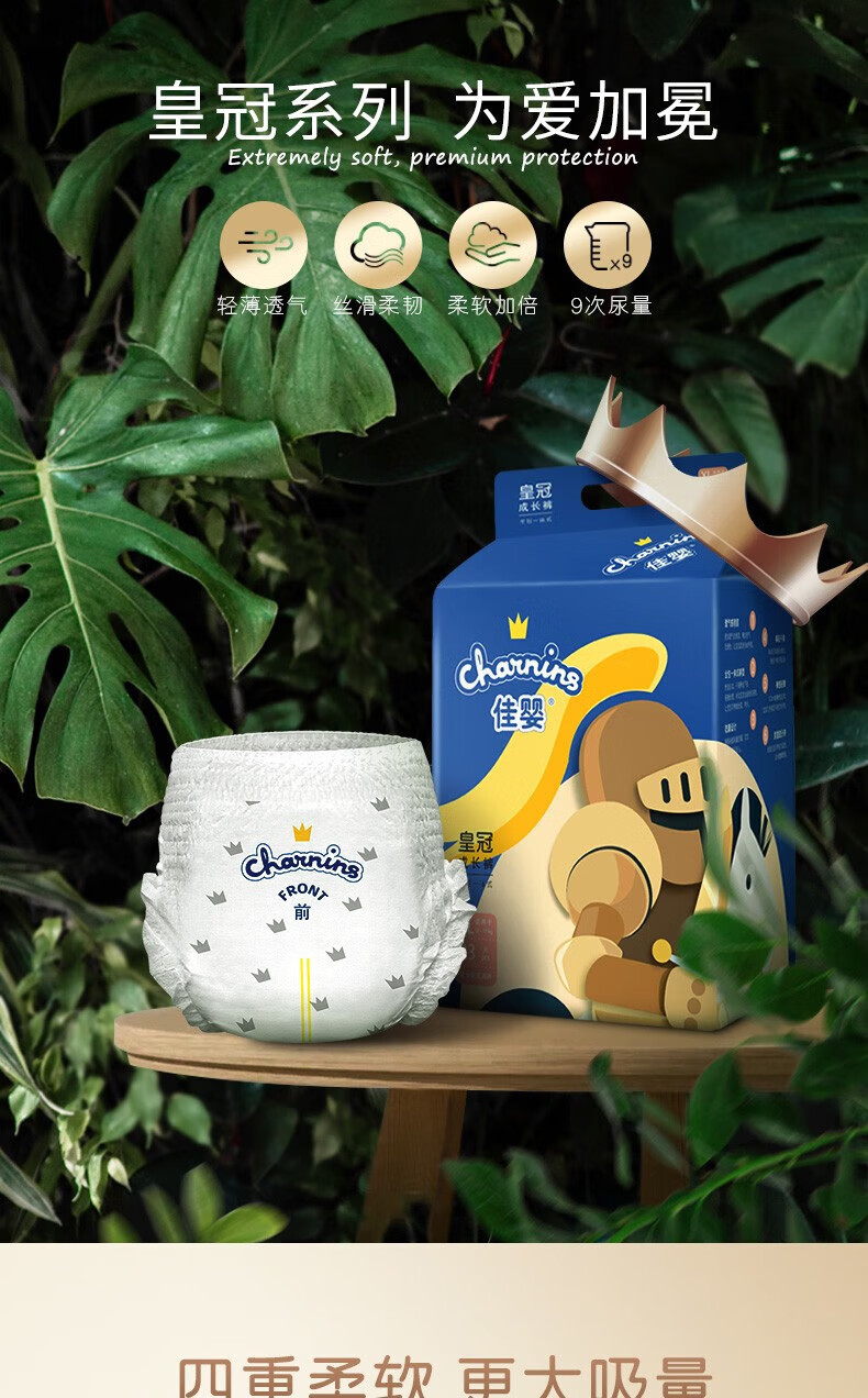 佳婴皇冠系列拉拉裤薄柔软成长裤舒适一体裤全包臀婴儿干爽学步裤 XXXXL码57片全包臀拉拉裤