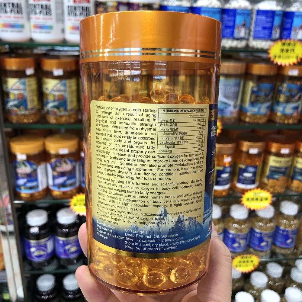 香港大药房进口美国角鲨烯深海鱼油500粒8A高效浓缩增强抵抗力修复细胞 美国一瓶500粒8A