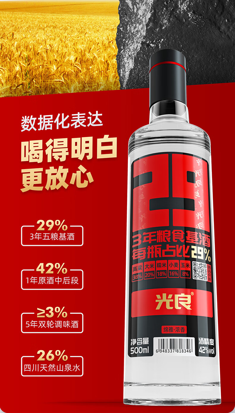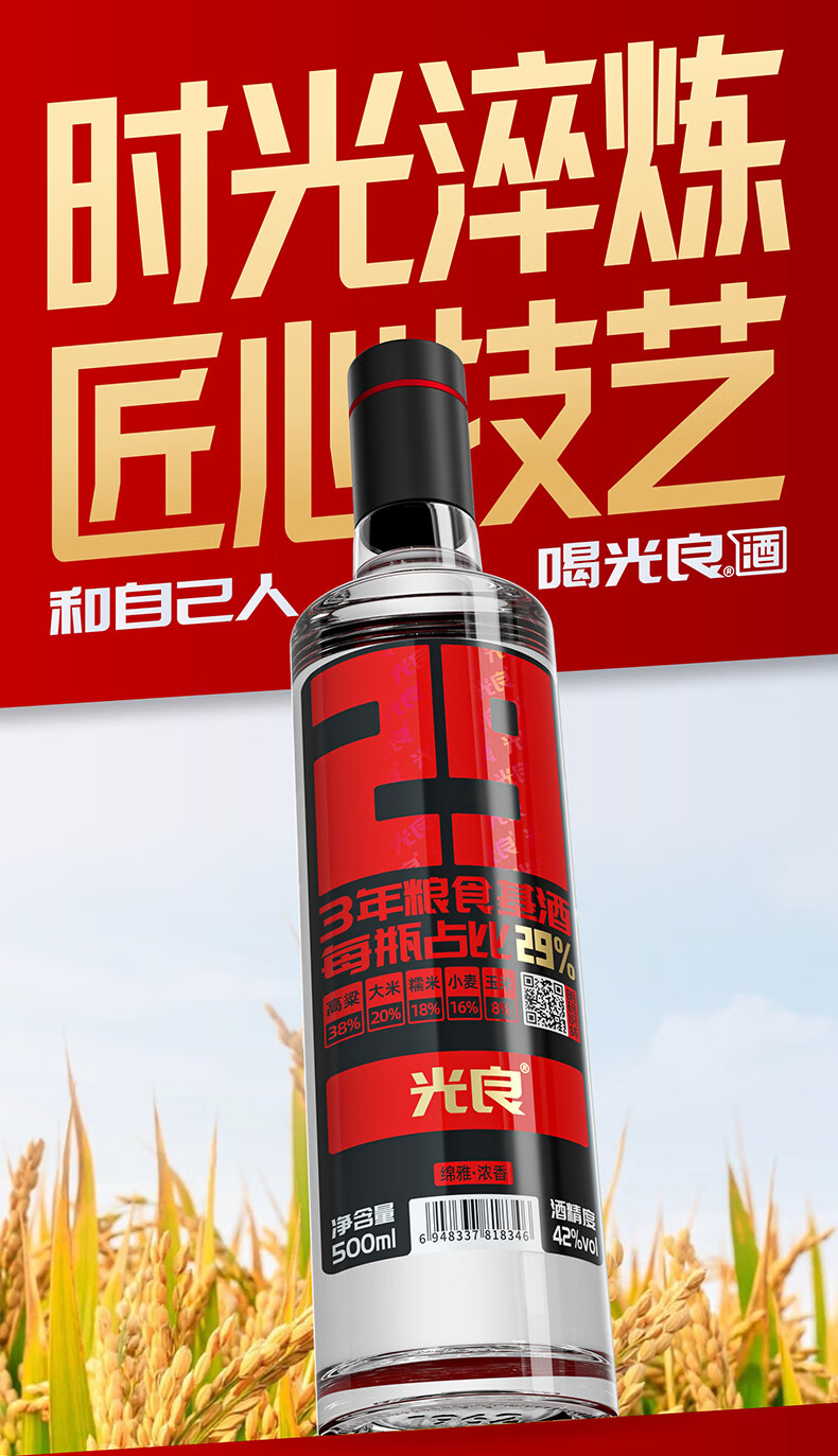 光良【年货节高性价比】29系列42度纯粮食浓香瓶酒聚会自饮小聚口粮酒 42%vol 500mL 6瓶
