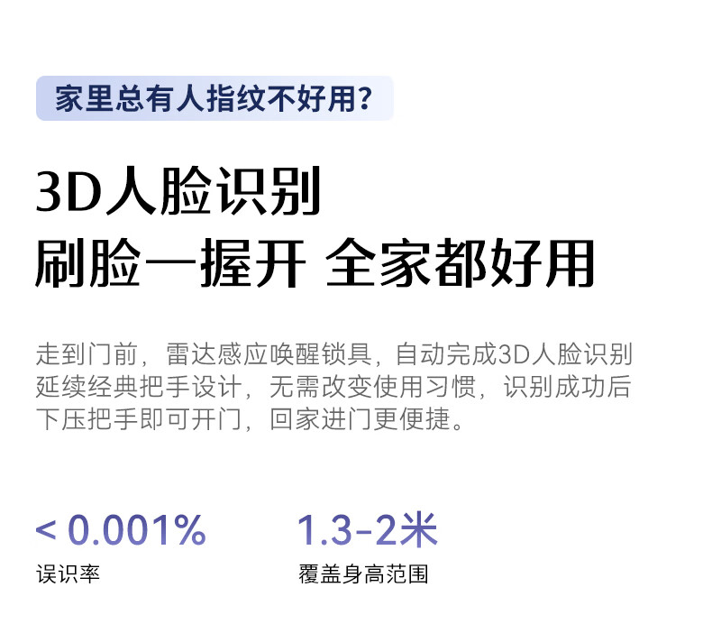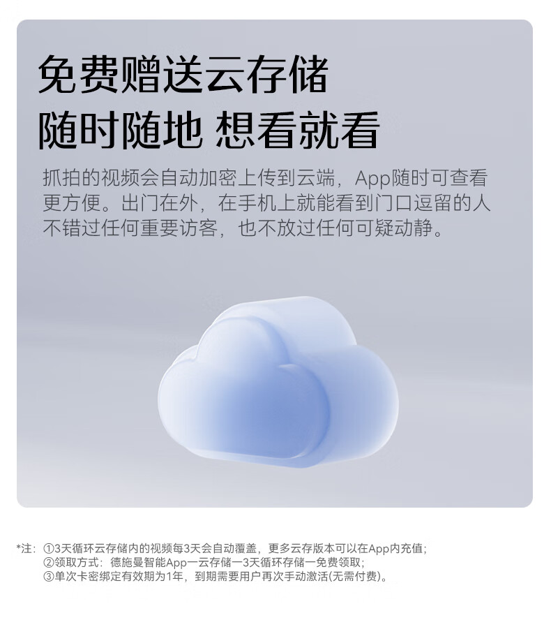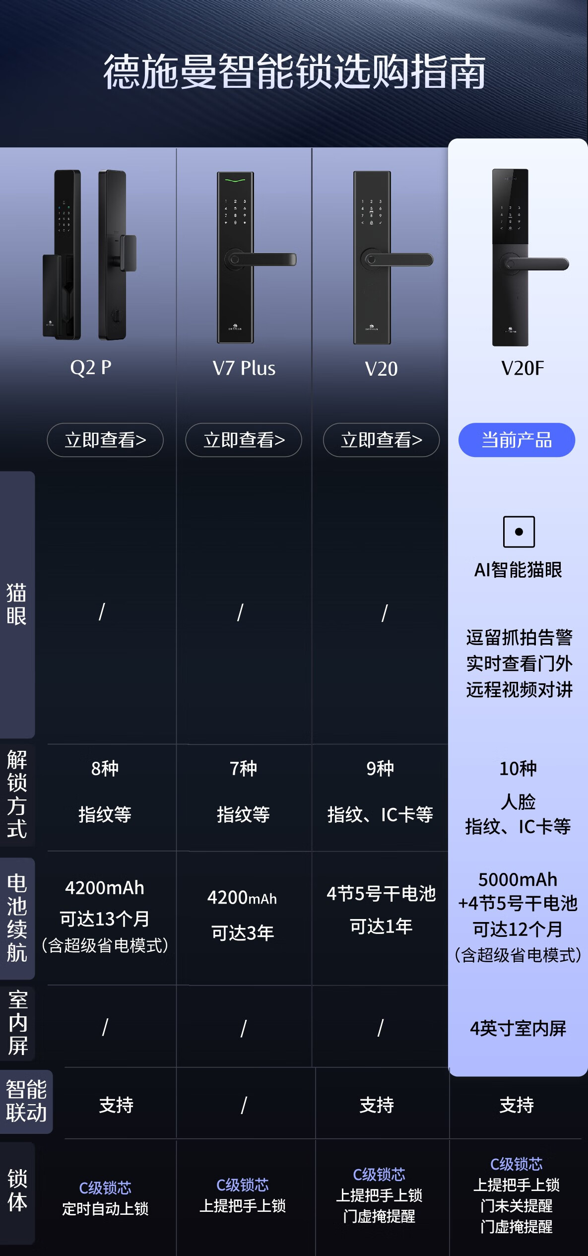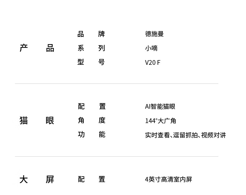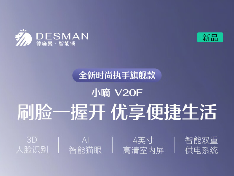德施曼(DESMAN)智能门锁3D人脸识别大屏猫眼家用防盗指纹密码识别小嘀V20F