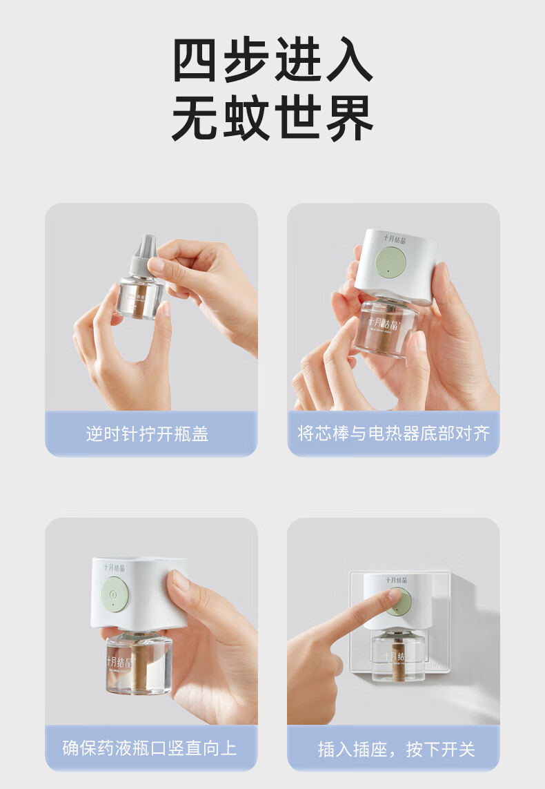 十月结晶宝宝儿童准孕妇精油贴防蚊驱蚊液家庭专用电热蚊香液组合 【4件套】驱蚊液*3+驱蚊器