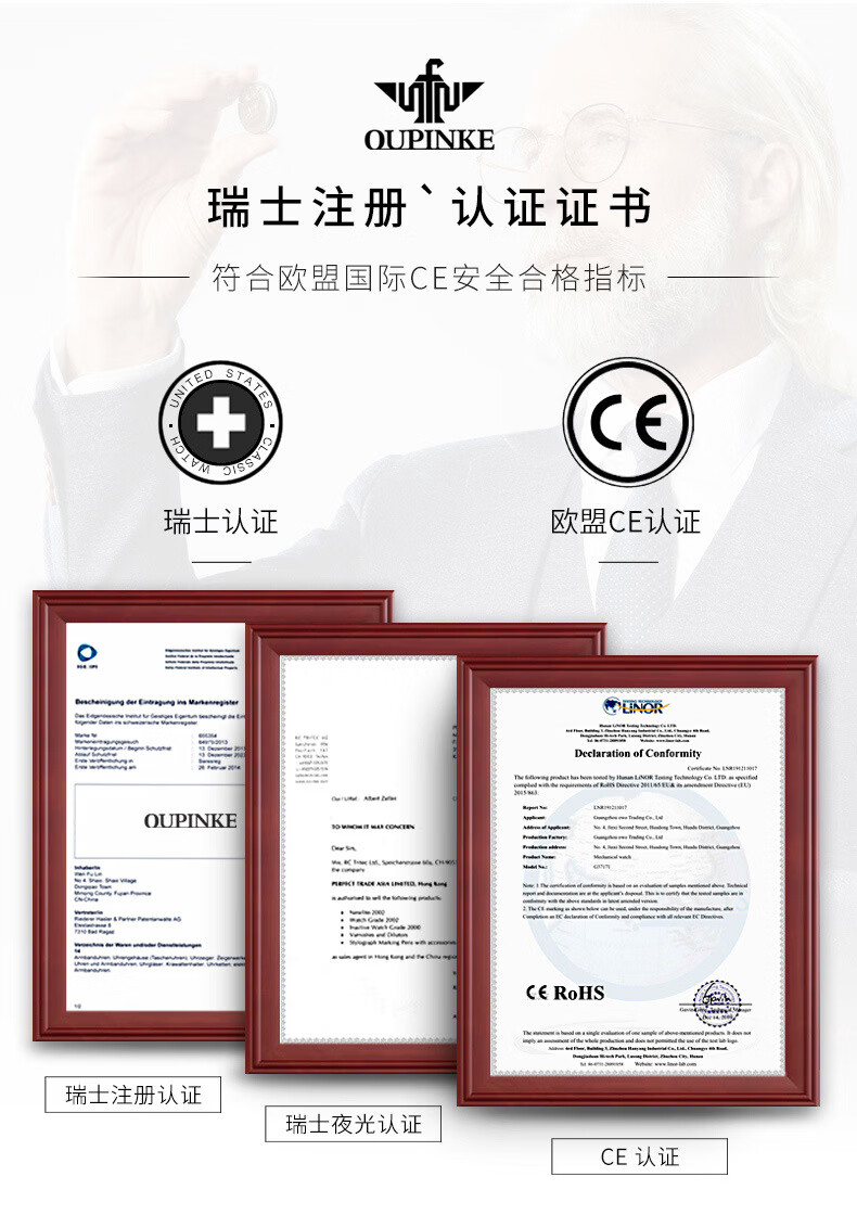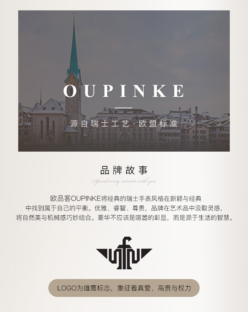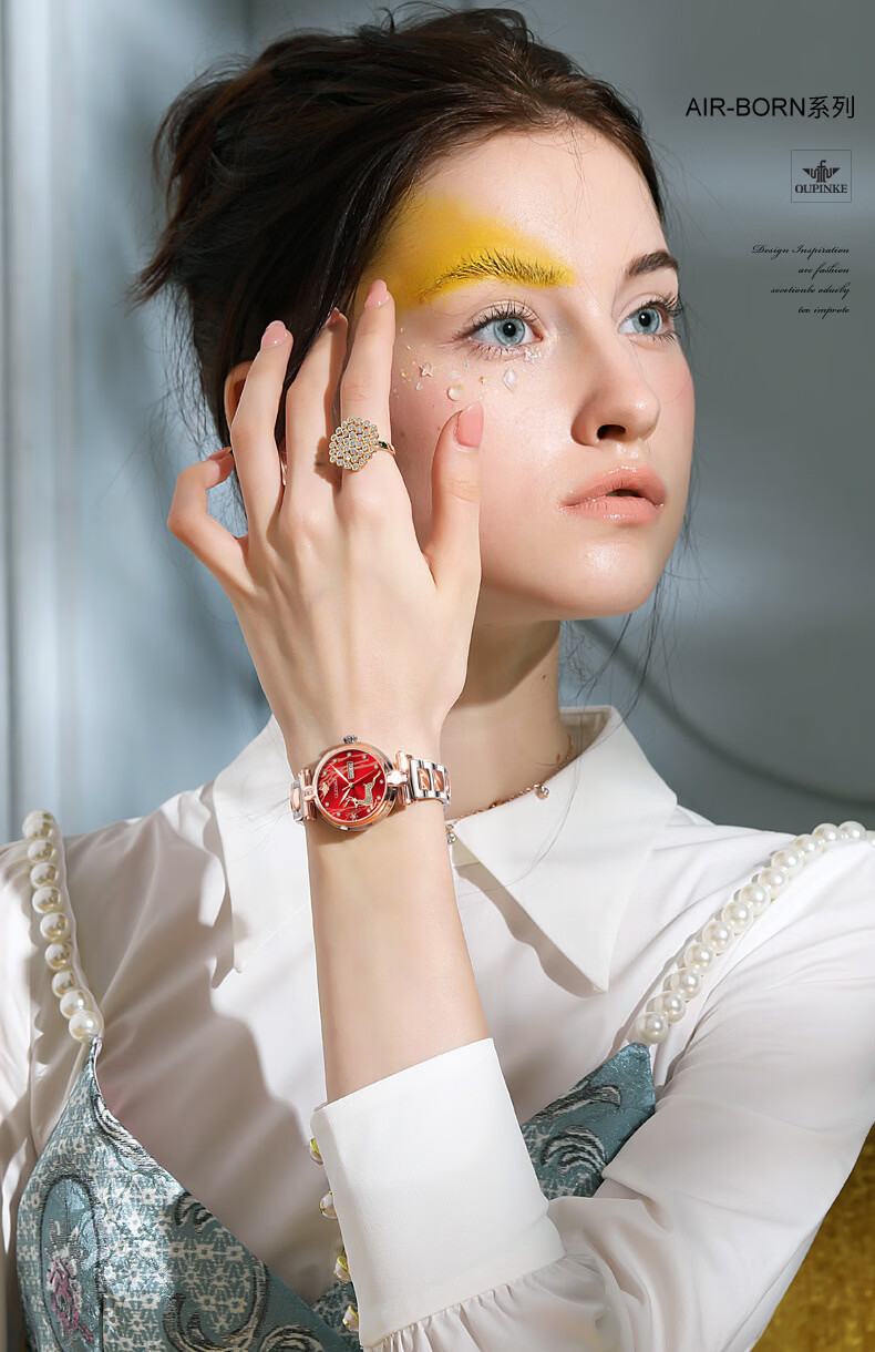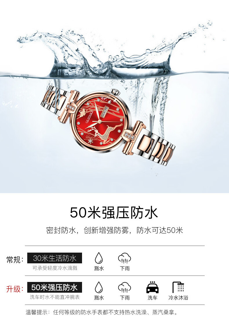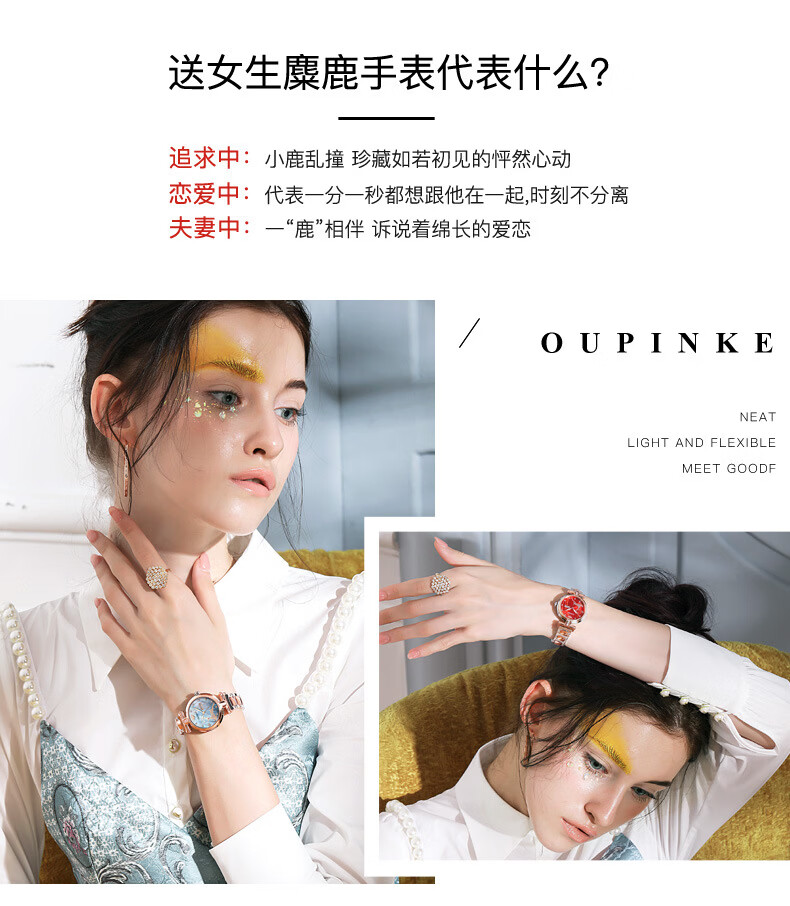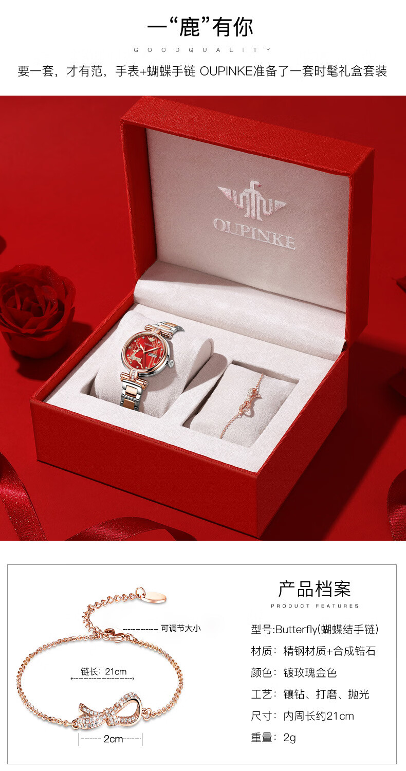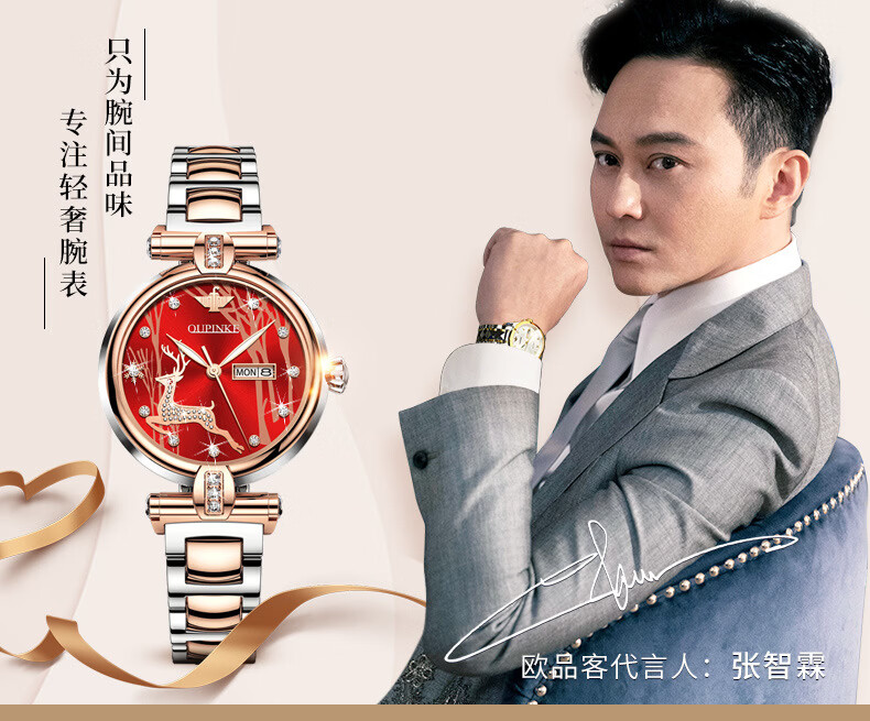 欧品客瑞士认证品牌全自动机械表女时尚潮流防水鹿图女士女表腕表 钢带间玫白面女
