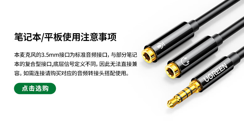 绿联3.5mm电脑麦克风台式机游戏桌面麦主播收音麦电脑外置话筒适用K歌语音会议设备1.5米款75574