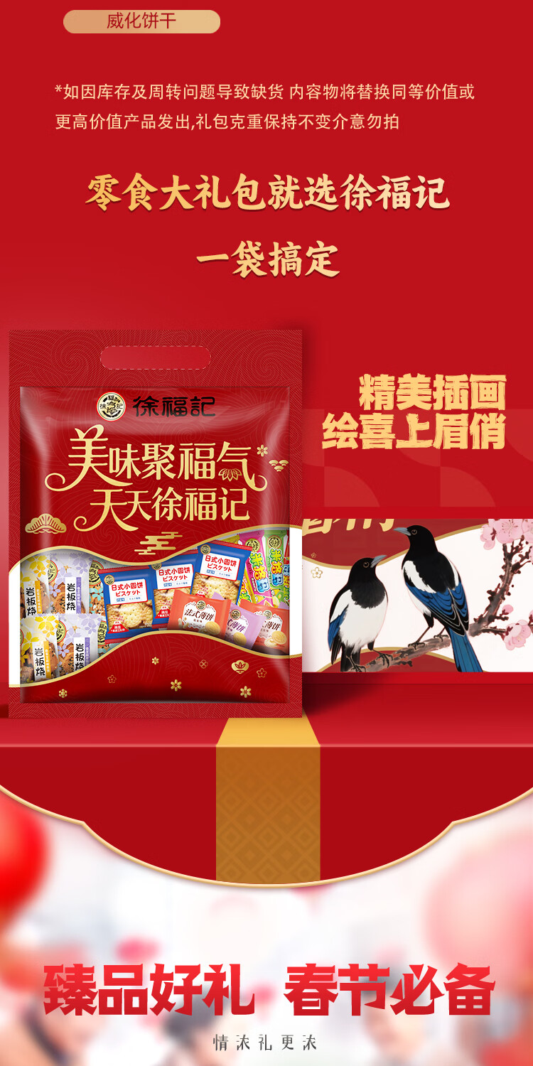 徐福记年货零食大礼包 饼干蛋糕休闲零食糕点礼包儿童零食春节礼品 福气礼包718g*4