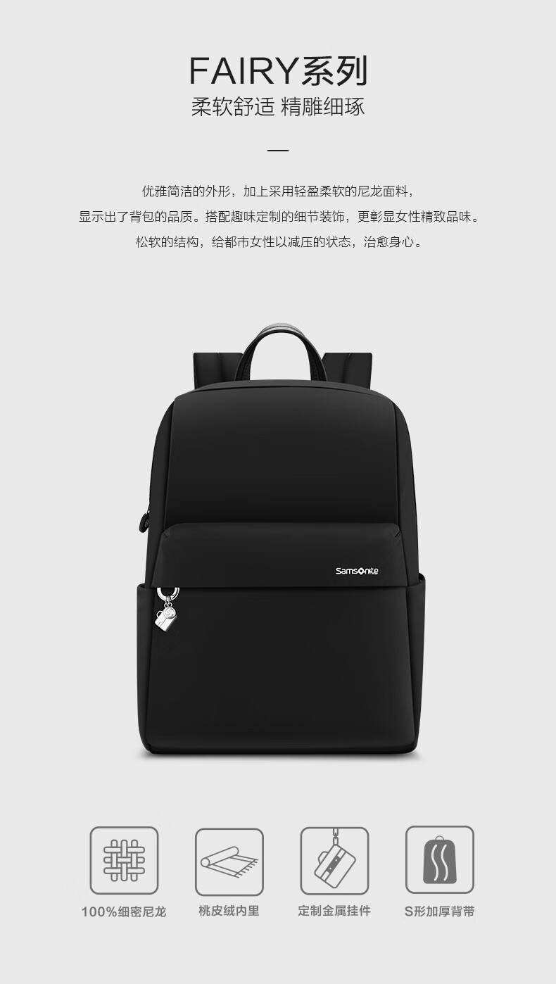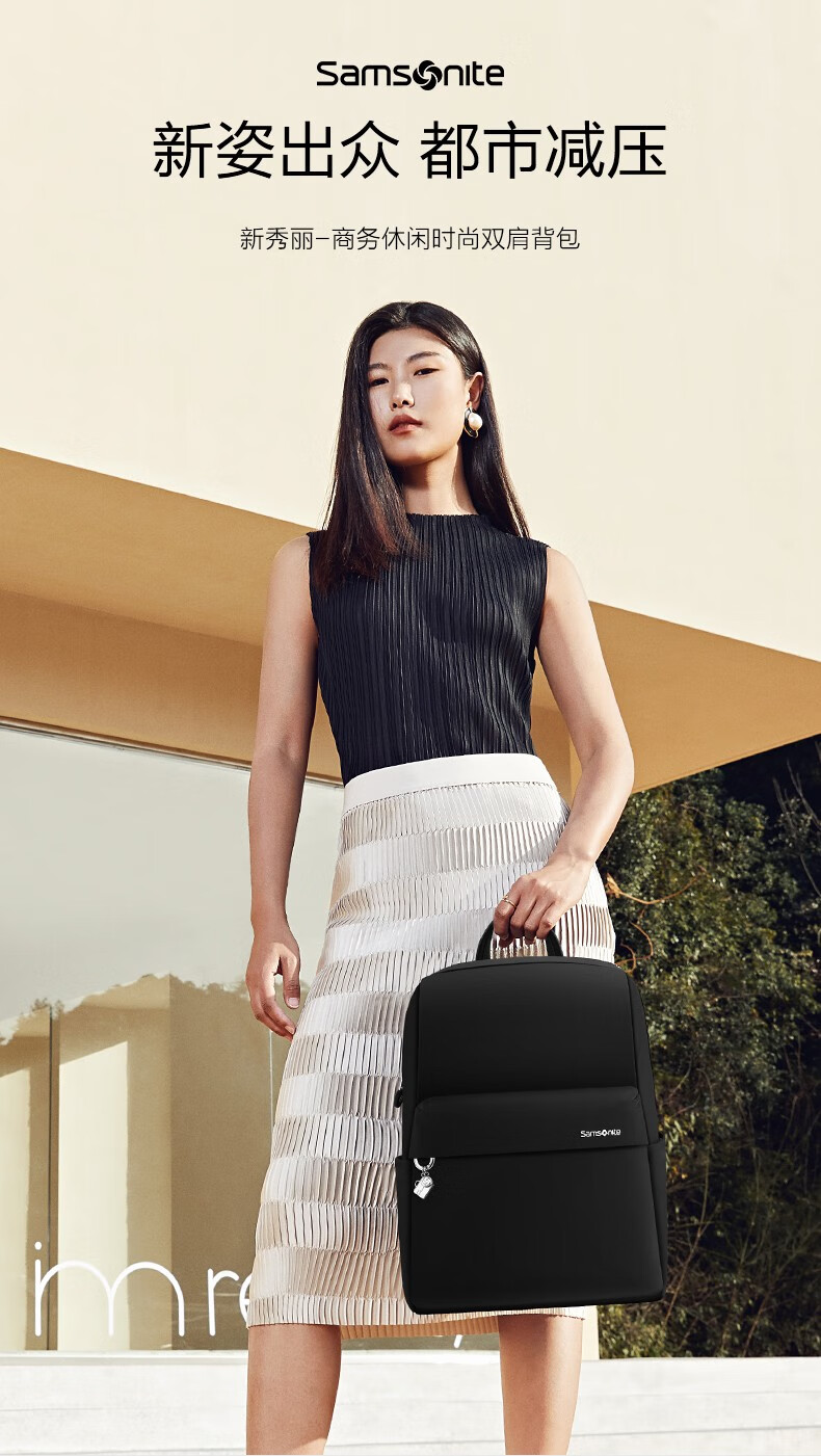 新秀丽(Samsonite)双肩背包男女电脑包16英寸韩版学生书包男潮流旅行包 TQ5 黑色