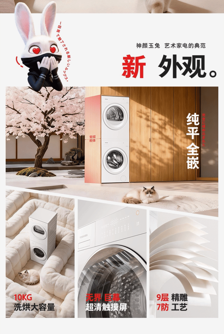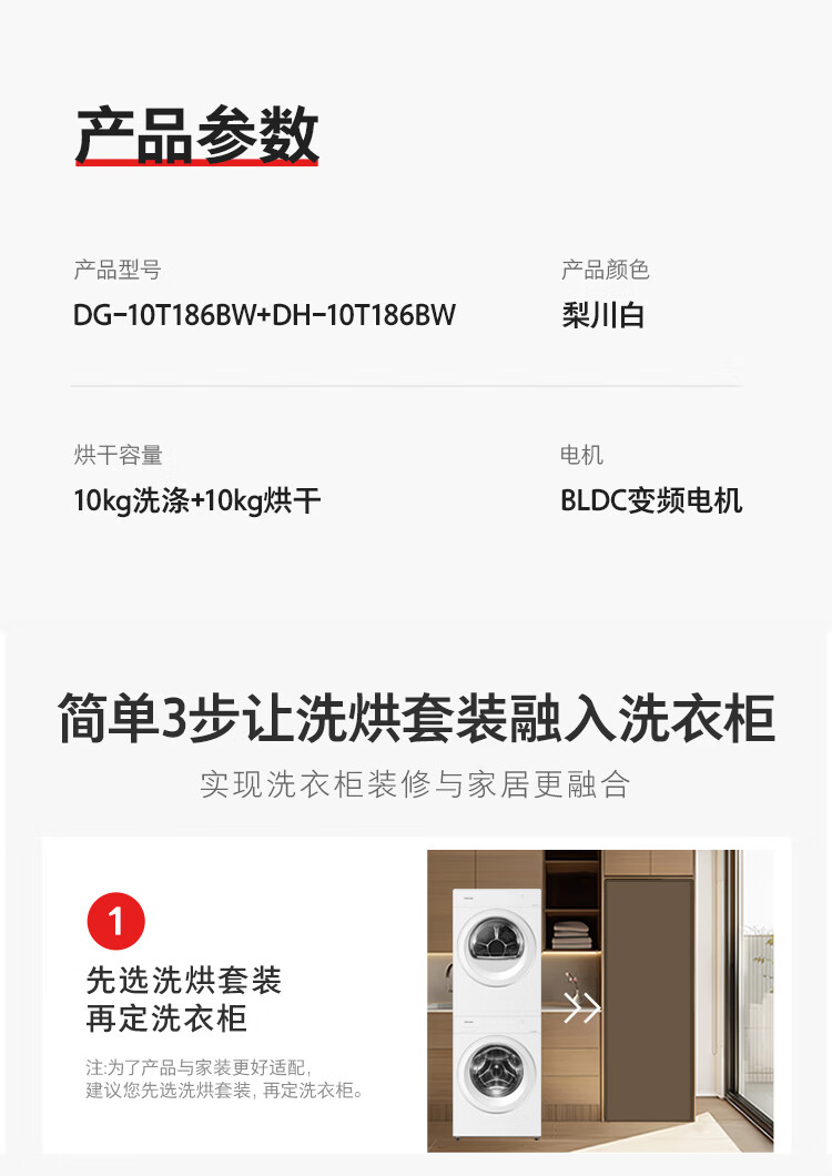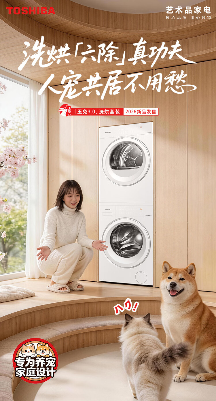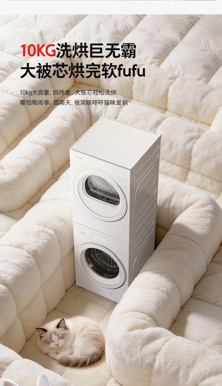 东芝(TOSHIBA)玉兔3.0洗烘套装10+10kg 蒸汽精护 粒子除毛烘 DG-10T186BW+DH-10T186BW