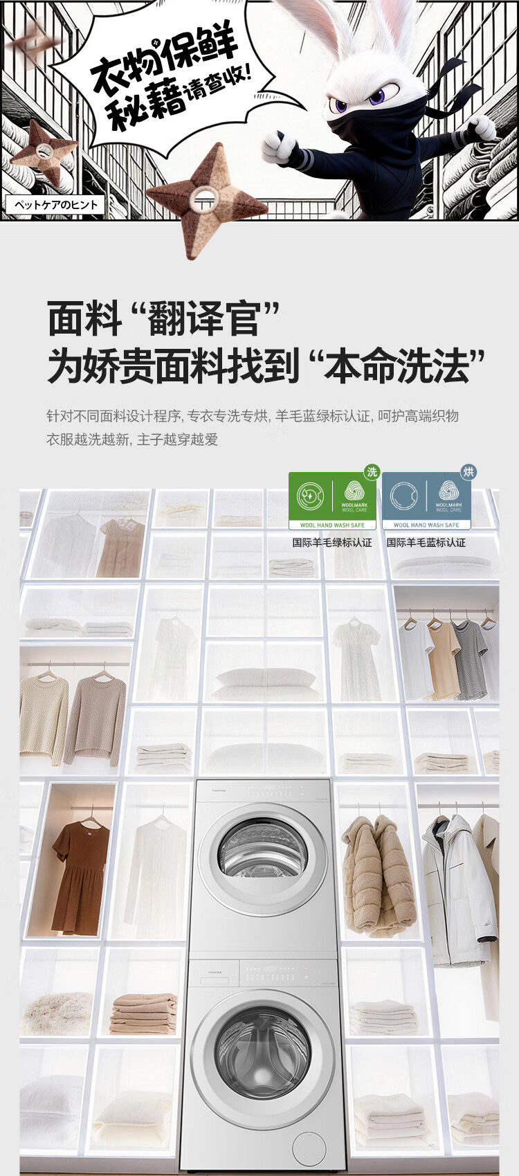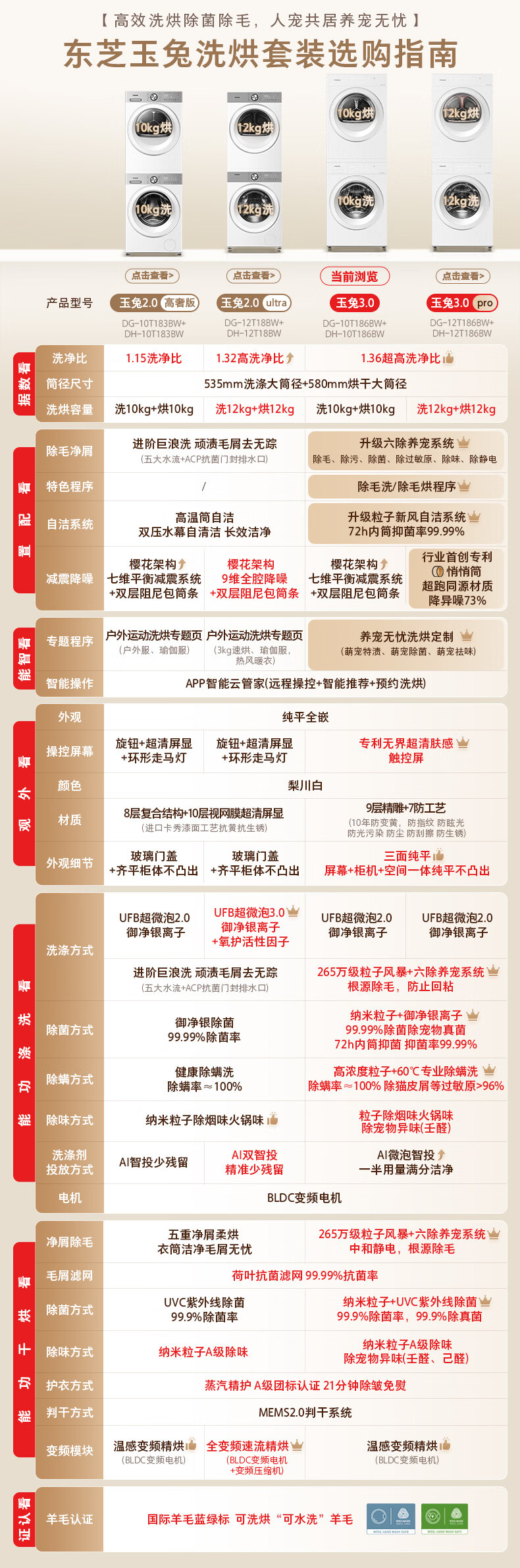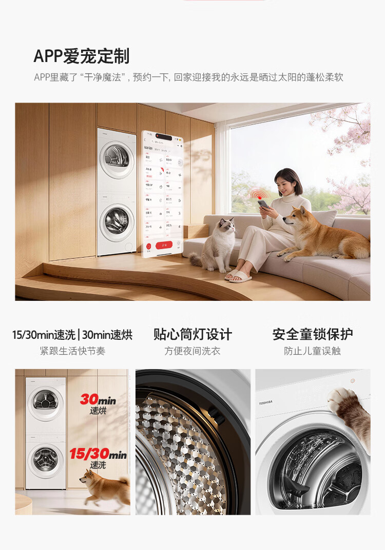 东芝(TOSHIBA)玉兔3.0洗烘套装10+10kg 蒸汽精护 粒子除毛烘 DG-10T186BW+DH-10T186BW