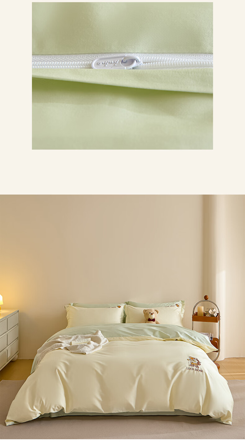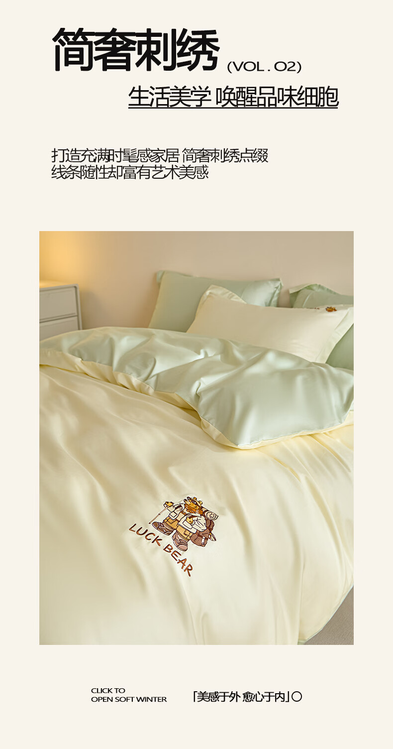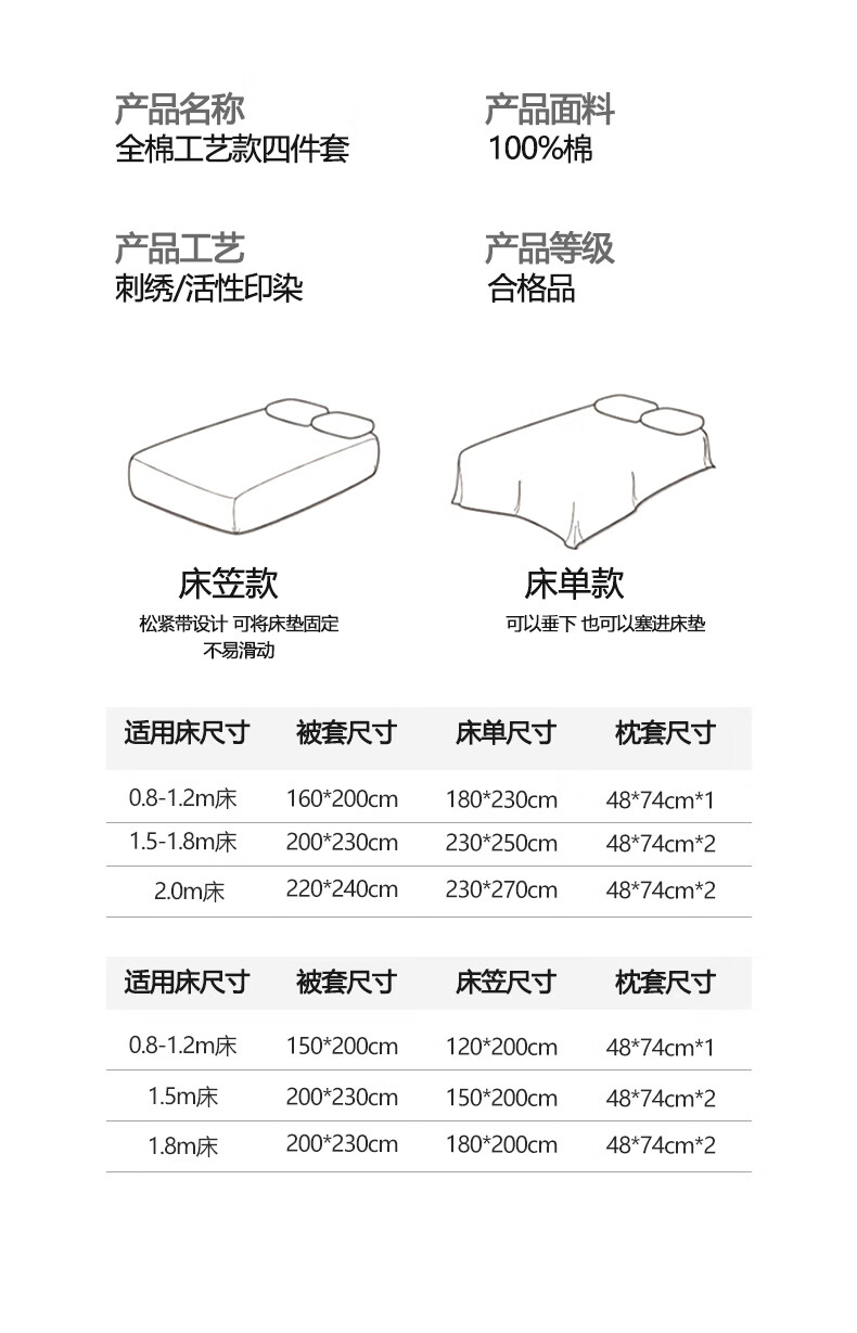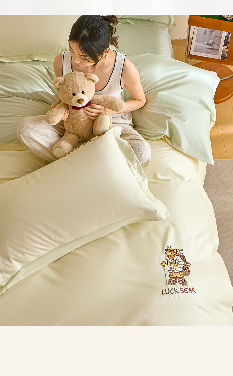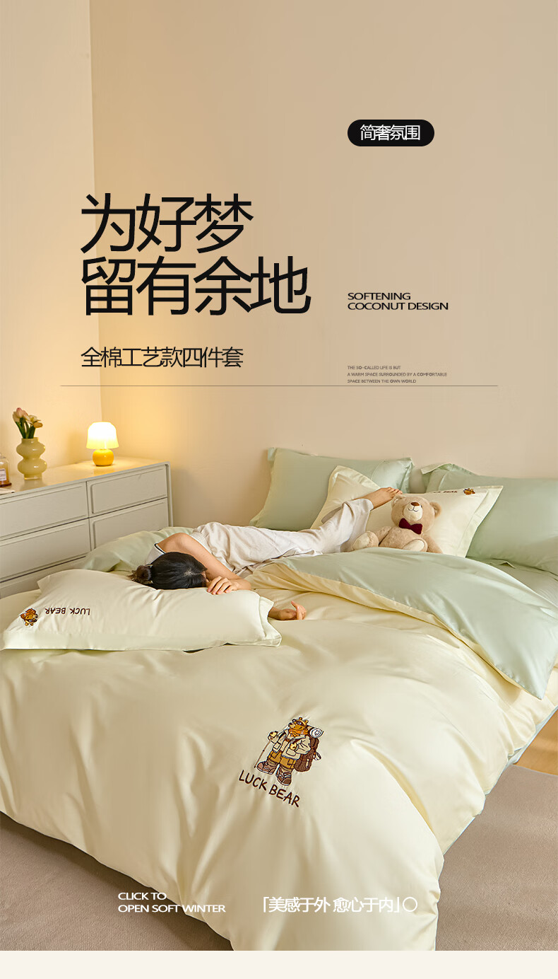 无印良品全棉四件套纯棉刺绣被套家用裸睡床单被罩单人三件套床笠床上用品 北海道-绿 【精梳新疆棉 刺绣工艺】 1.8m 床单款 四件套-被套200*230