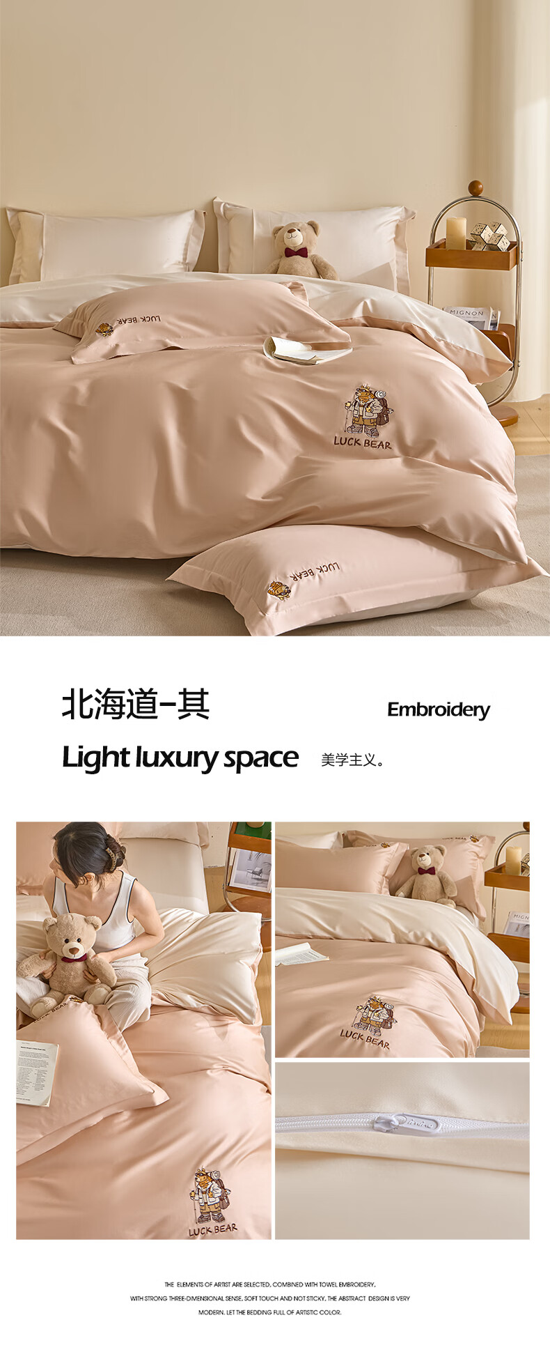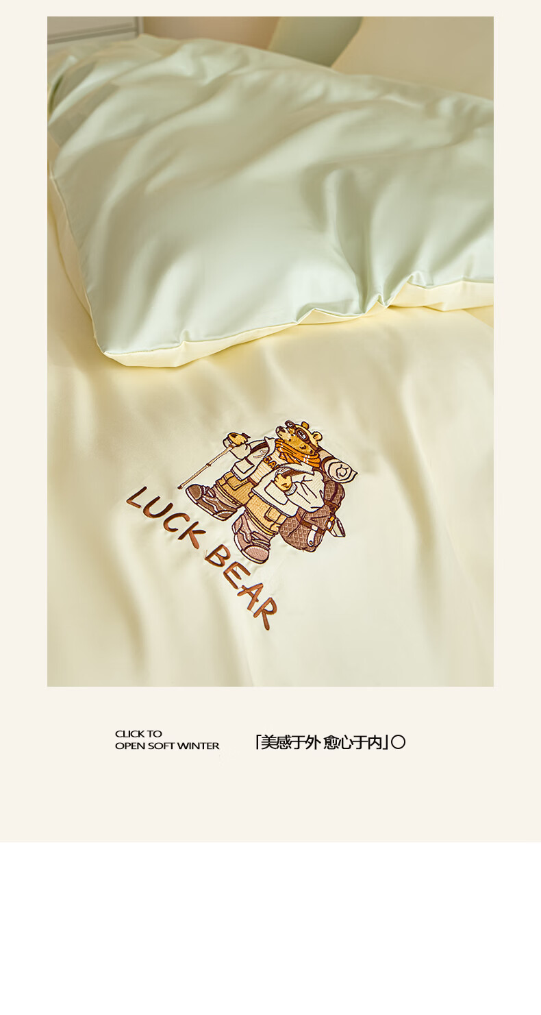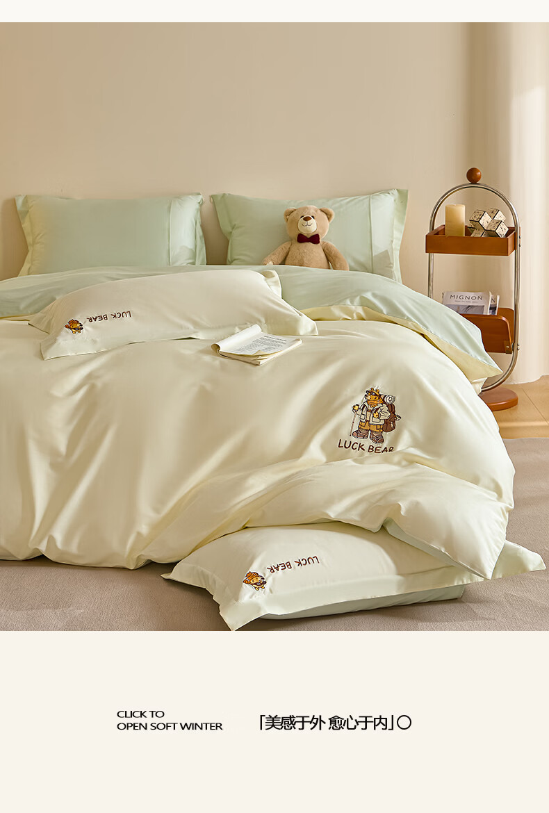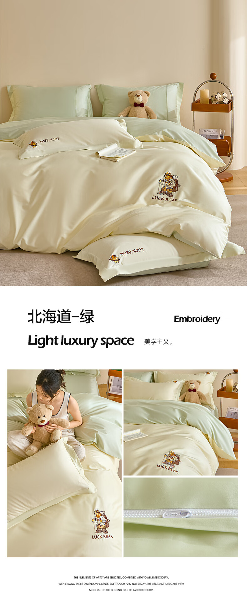 无印良品全棉四件套纯棉刺绣被套家用裸睡床单被罩单人三件套床笠床上用品 北海道-绿 【精梳新疆棉 刺绣工艺】 1.8m 床单款 四件套-被套200*230