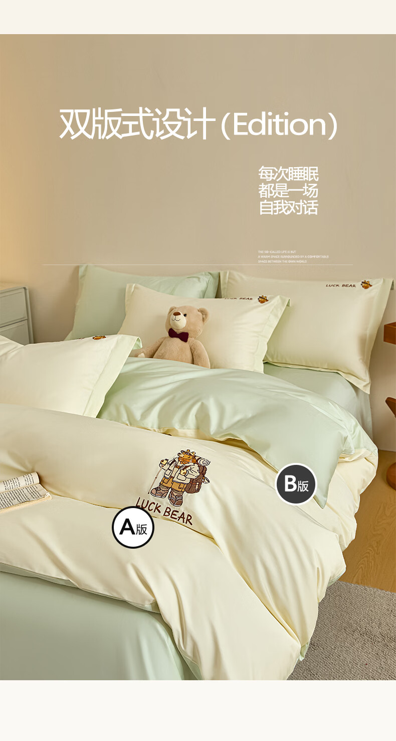 博洋(BEYOND)博洋家纺纯棉四件套全棉套件单双人被罩床单枕套简约风套件床品 【100%纯棉】苍木 床单款 (被套150*210cm) 三件套