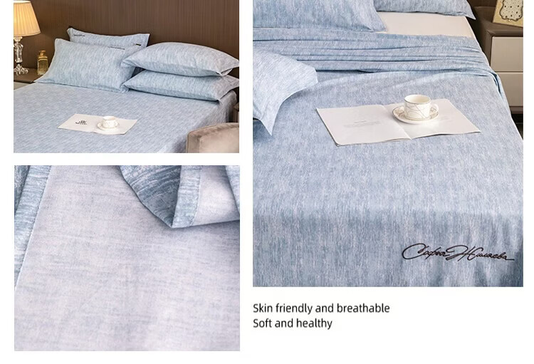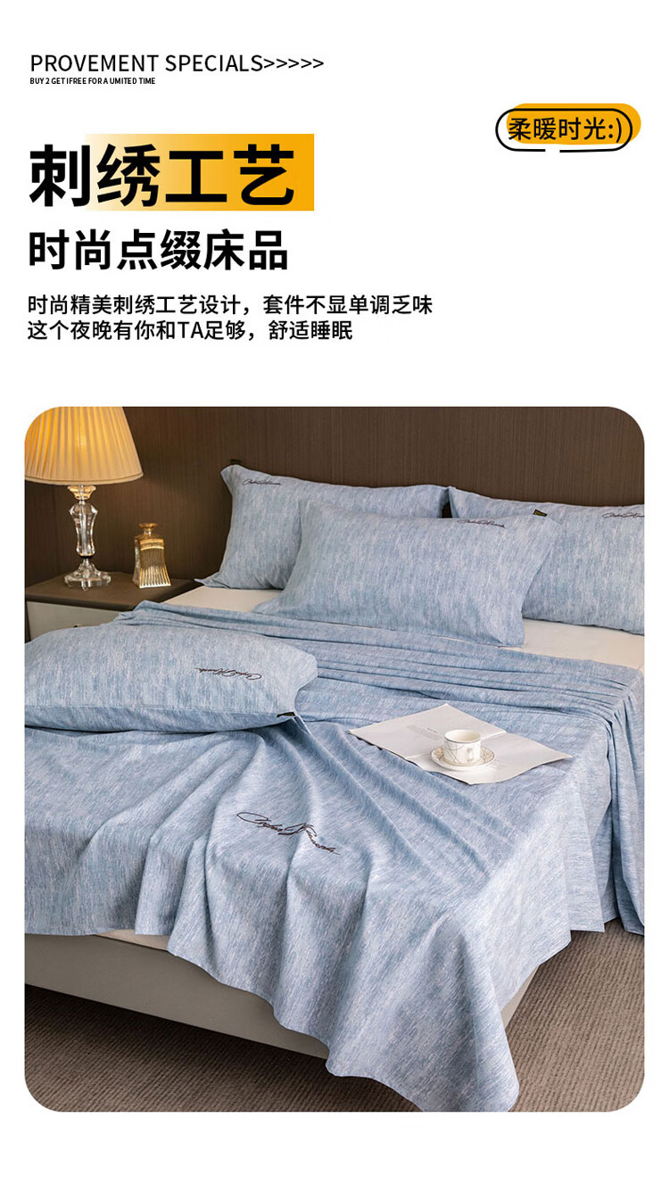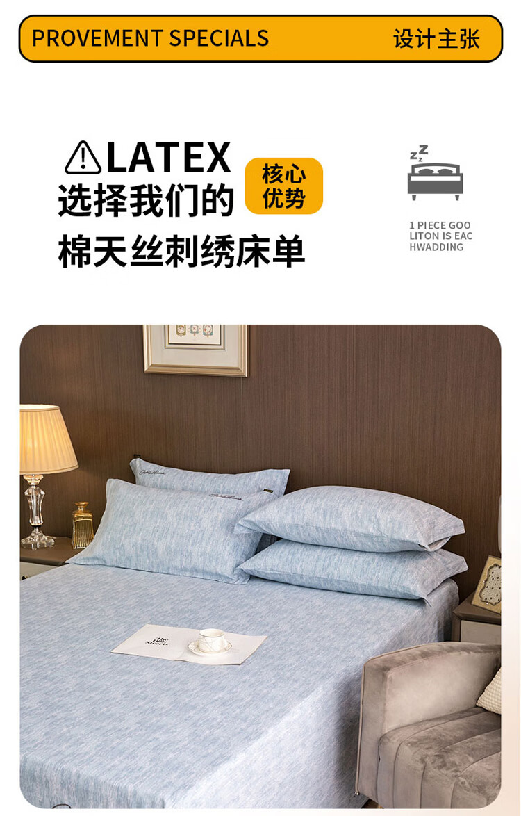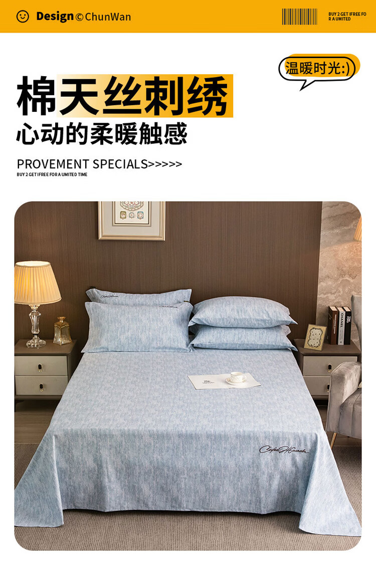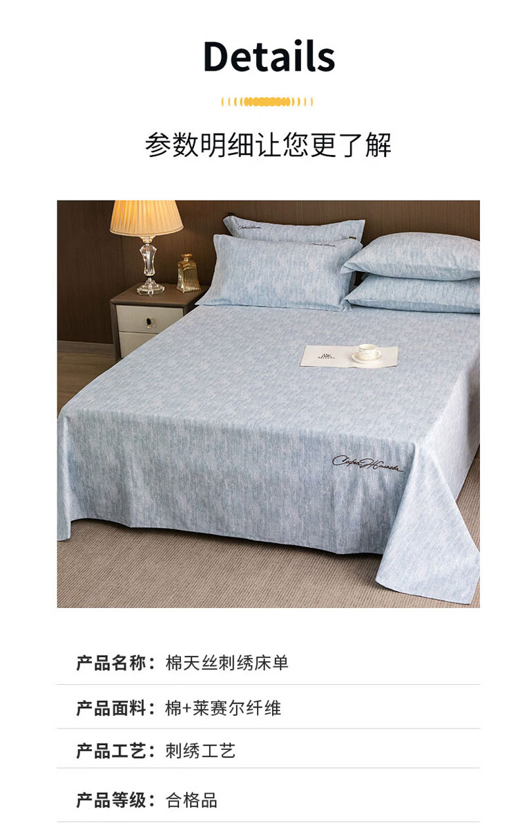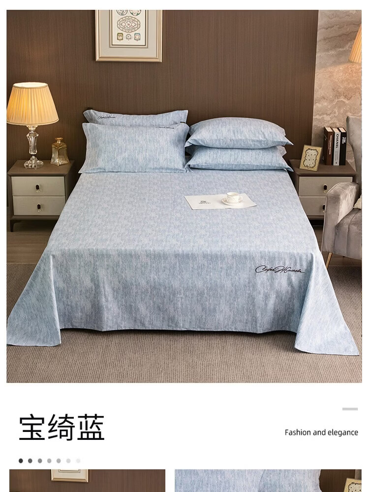 ROLAND LIVE棉天丝纯色刺绣床单单件单双人床裸睡床单床罩四季床品 CW 棉天丝床单单件-宝绮蓝 单床单160*230cm