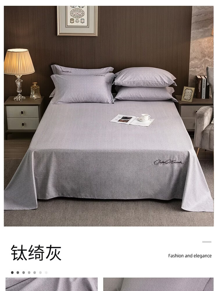 海澜之家(HLA)纯棉床单1.8x2米床被单7A抗菌全棉水洗棉单人宿舍床单单件床罩子 星辰灰 单床单120*230cm 【适用0.9-1.2m床】