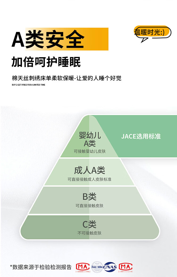 恒源祥冰丝凉席 A类夏季凉感可机洗刺绣学生宿舍单双人丝滑裸感凉席 香槟色【床笠款】 三件套180cm*200cm【一席二枕套】