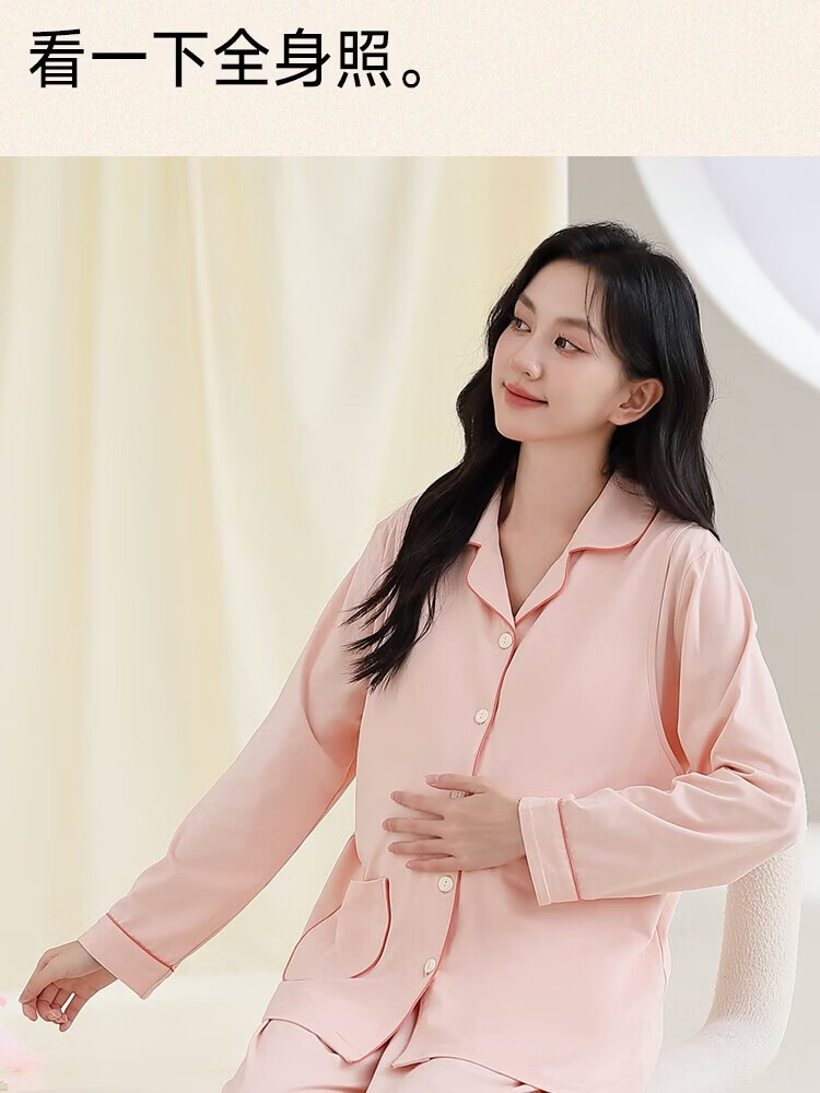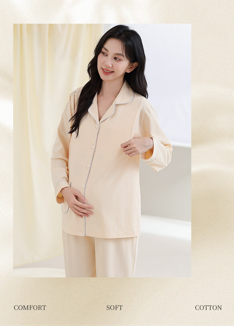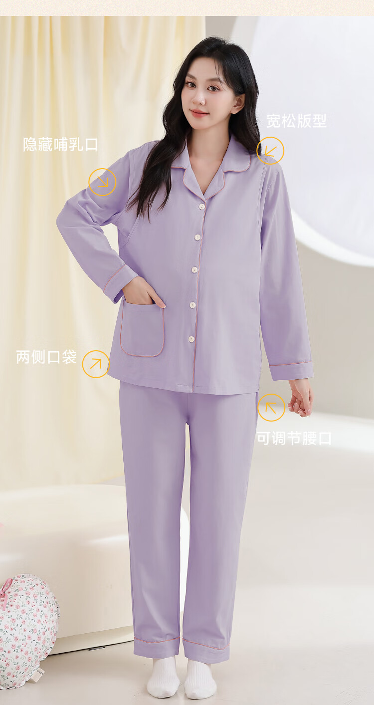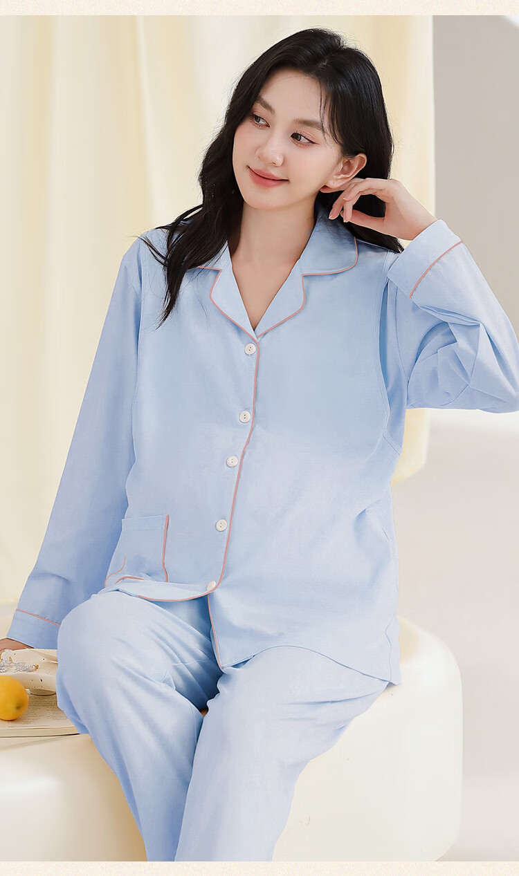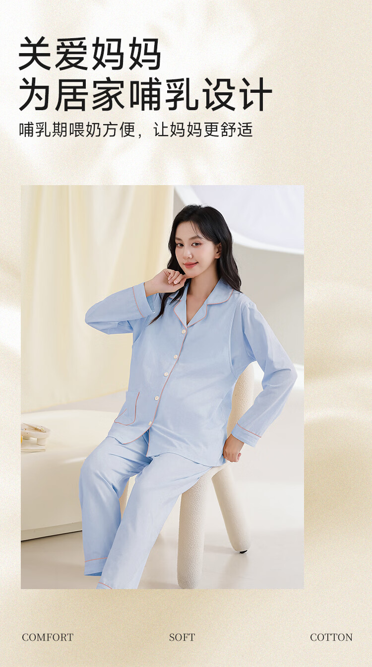 古今(GUJIN)月子服春秋纯棉哺乳期睡衣套装产后方便喂奶侧边产妇哺乳家居服 蓝色-隐形哺乳口纯棉 2XL(推荐体重:130-155斤)
