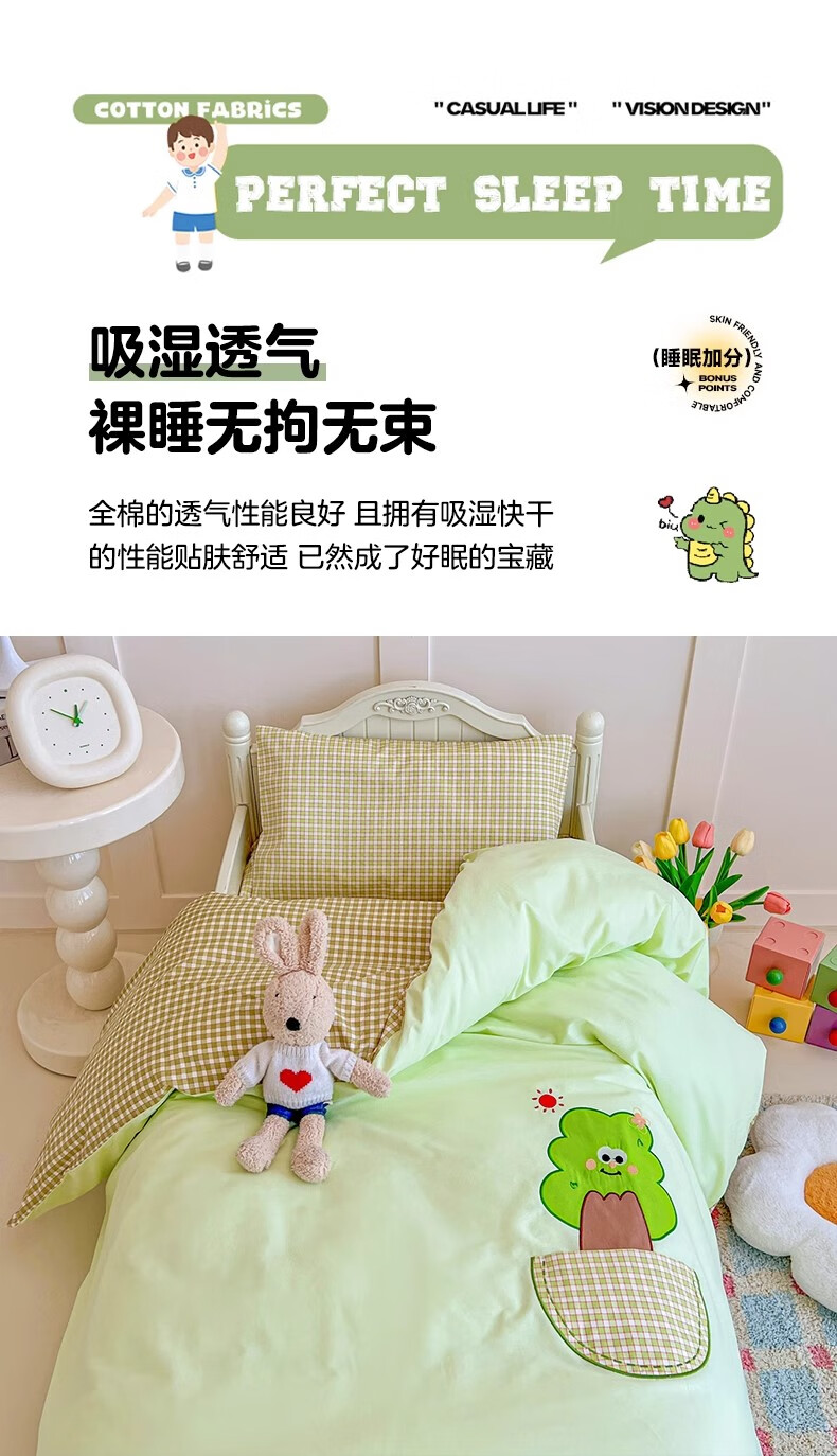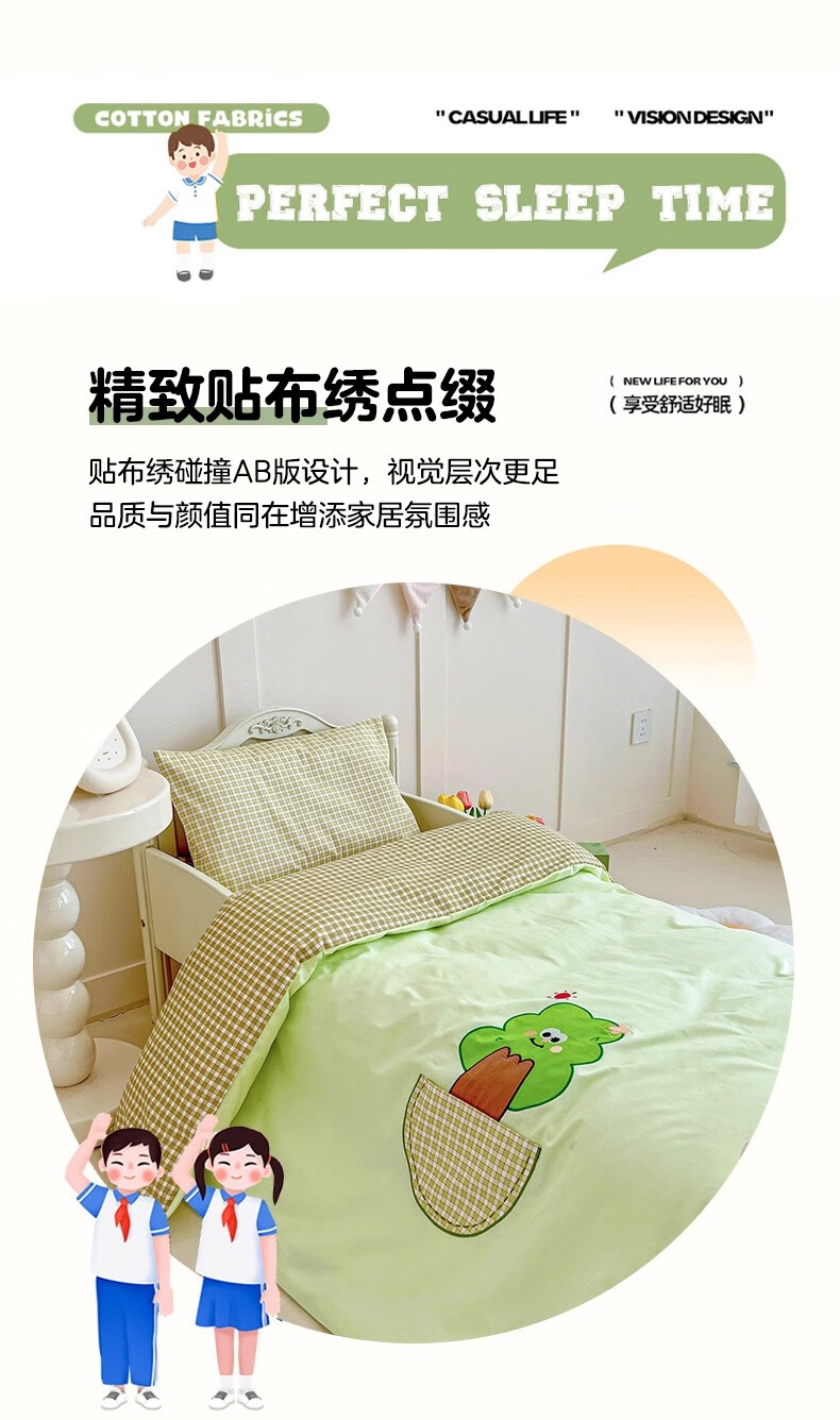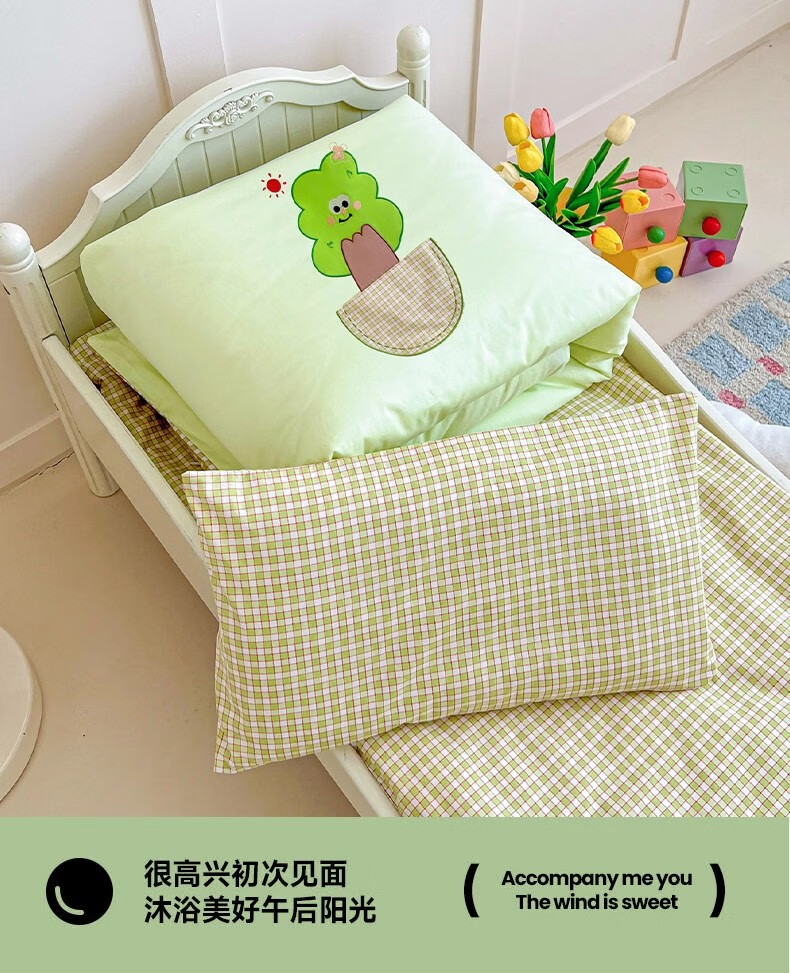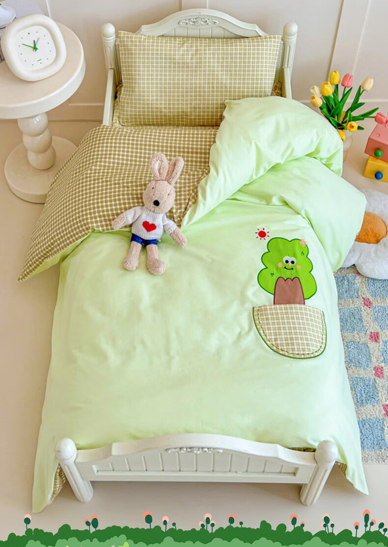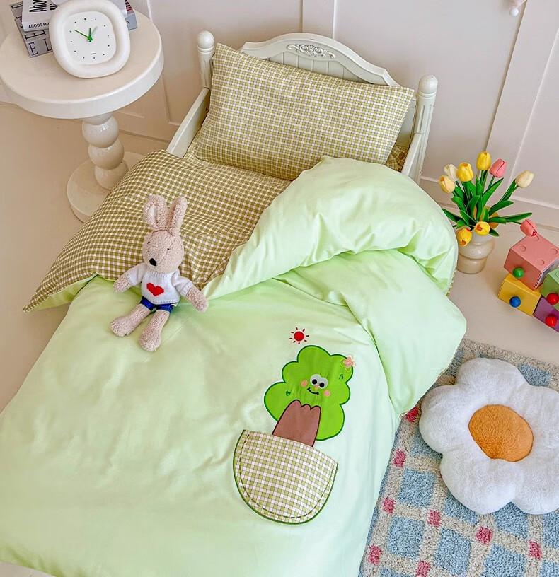 无印良品全棉幼儿园入园六件套被子褥子全套一整套儿童被子床单三件套床品 口袋小树【全棉亲肤 宝宝入园专用】 幼儿园 床笠款 三件套-被套120*150cm