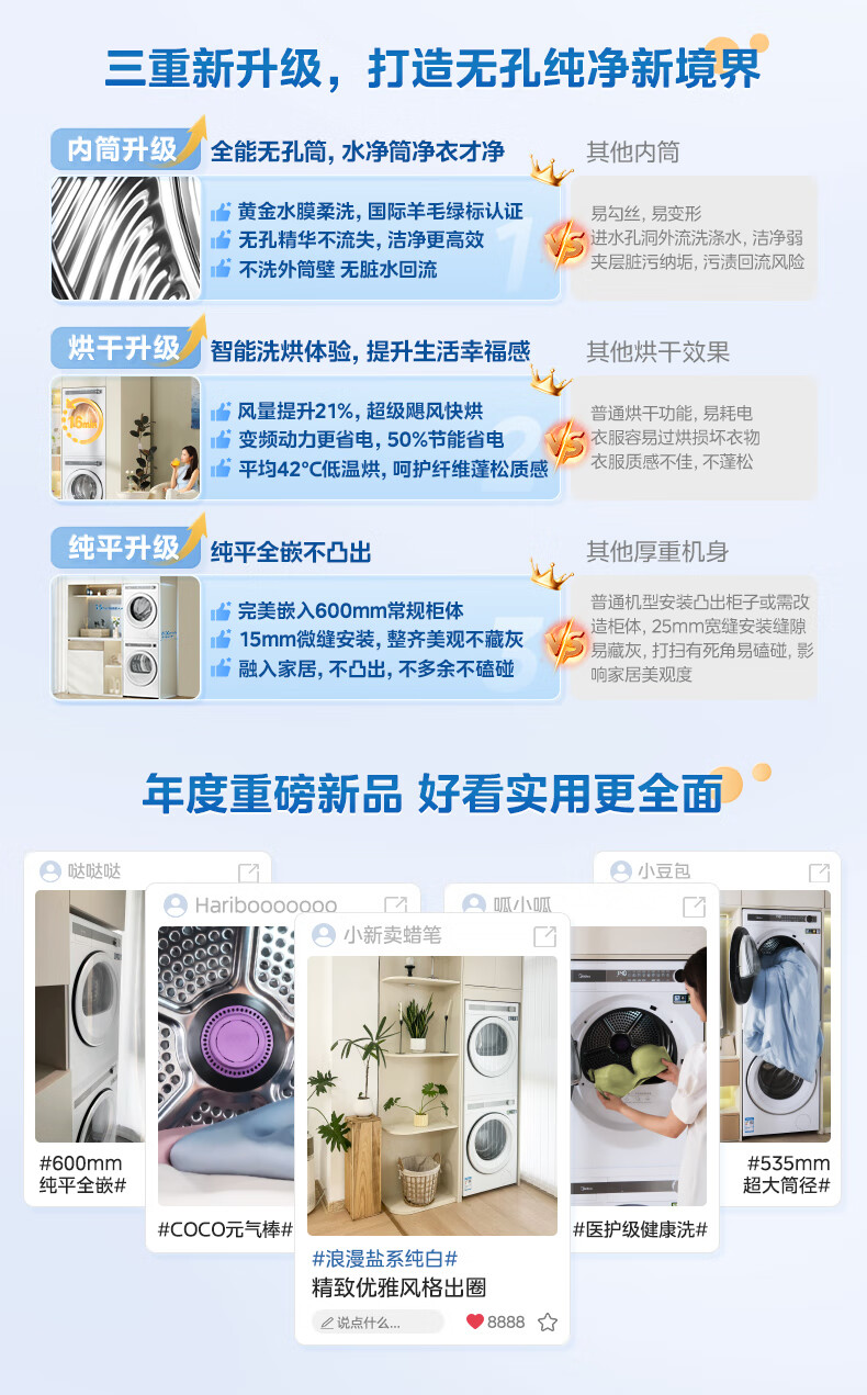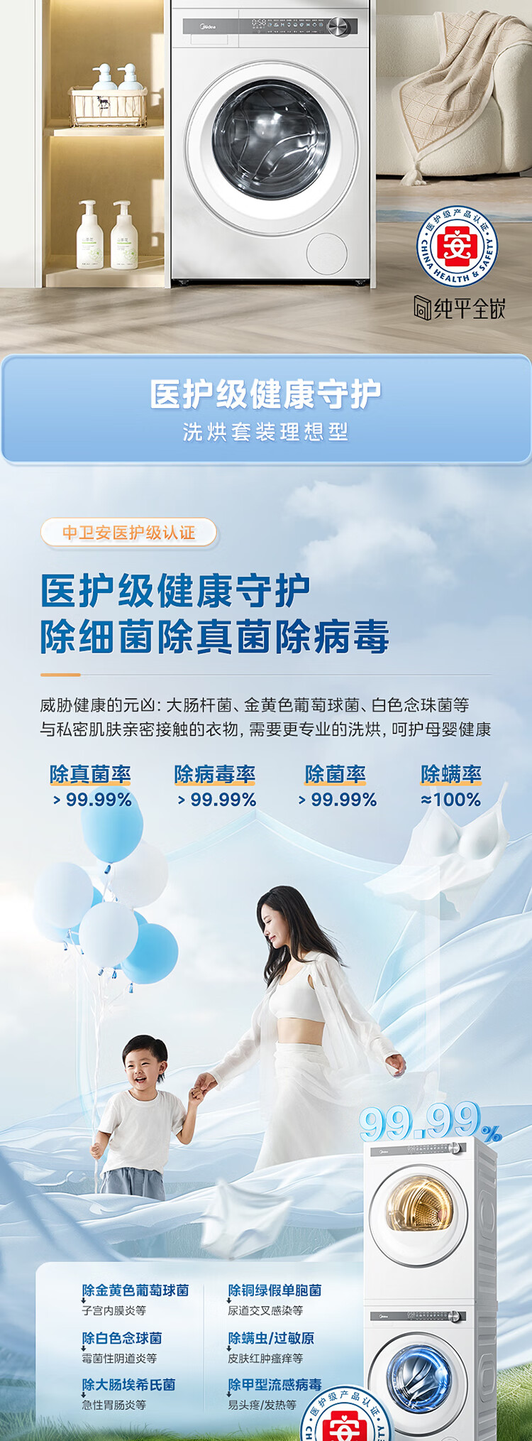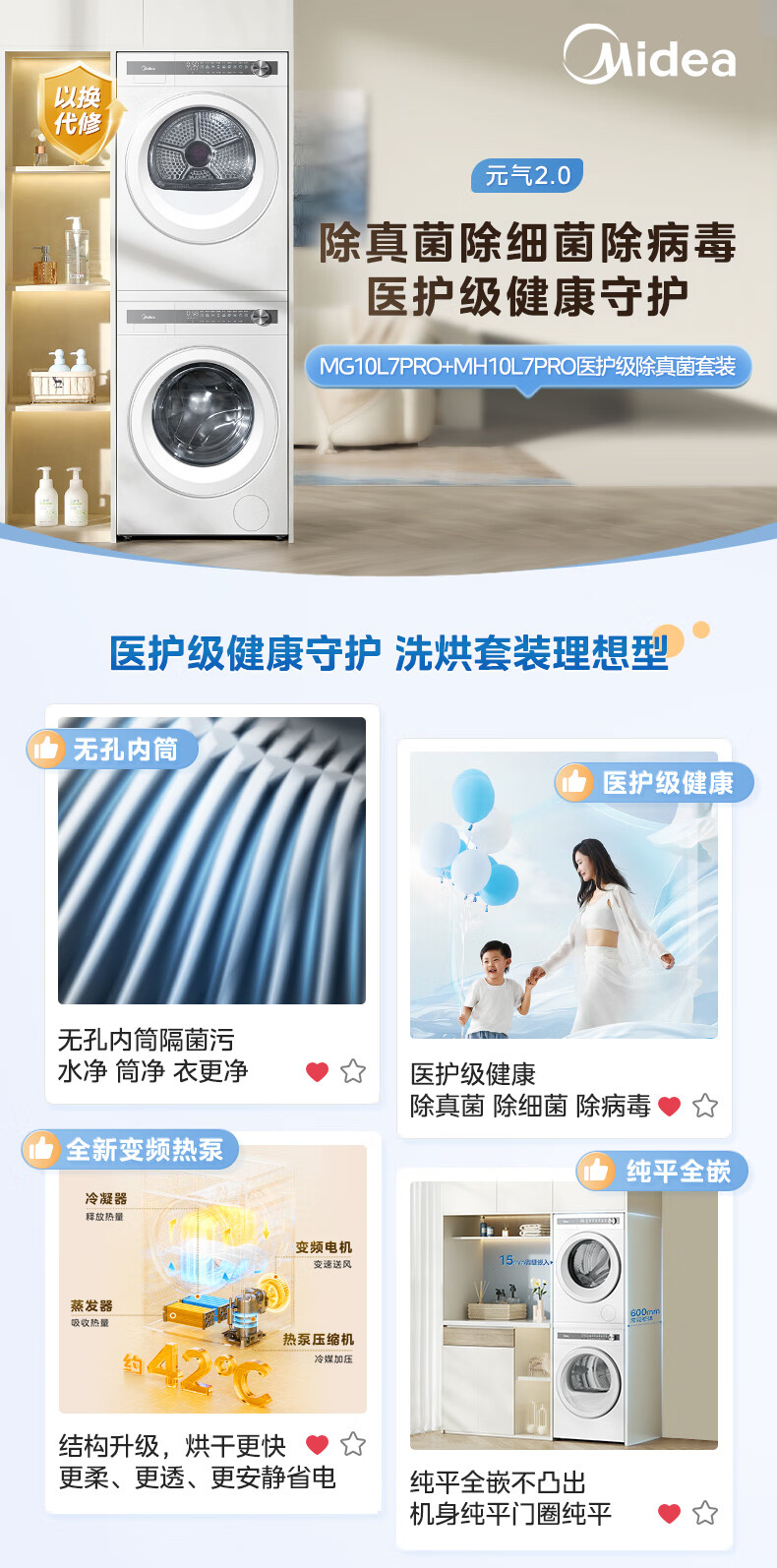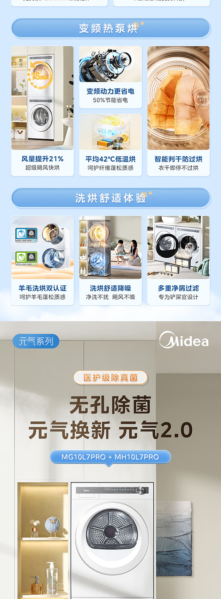 美的(Midea)元气2.0 滚筒洗衣机全自动 10公斤 纯平全嵌 除菌除螨 MG10L7PRO 以旧换新 国家补贴 京东自营