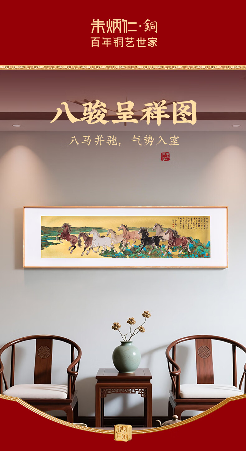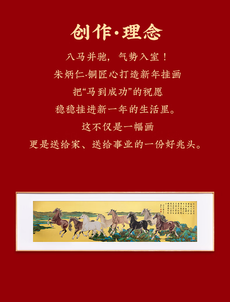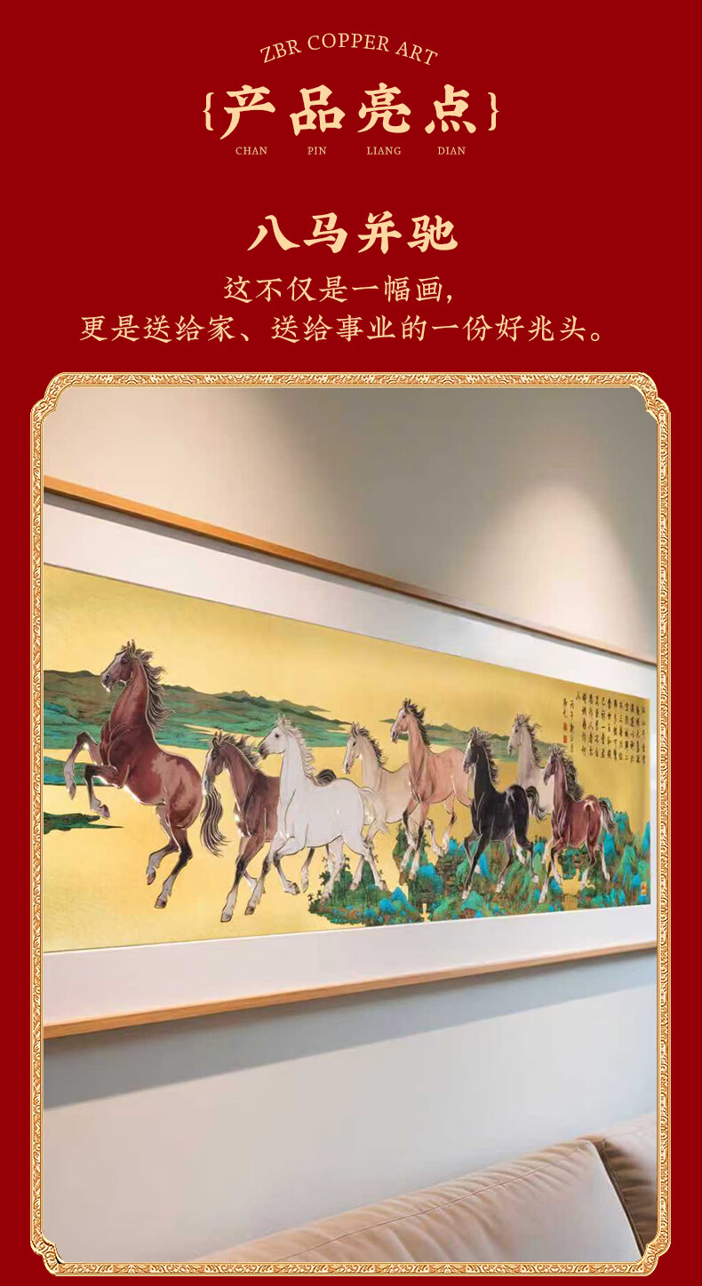 朱炳仁铜 八骏呈祥图 玄关走廊画客厅装饰画办公室挂画生肖八骏马壁画 八骏呈祥图