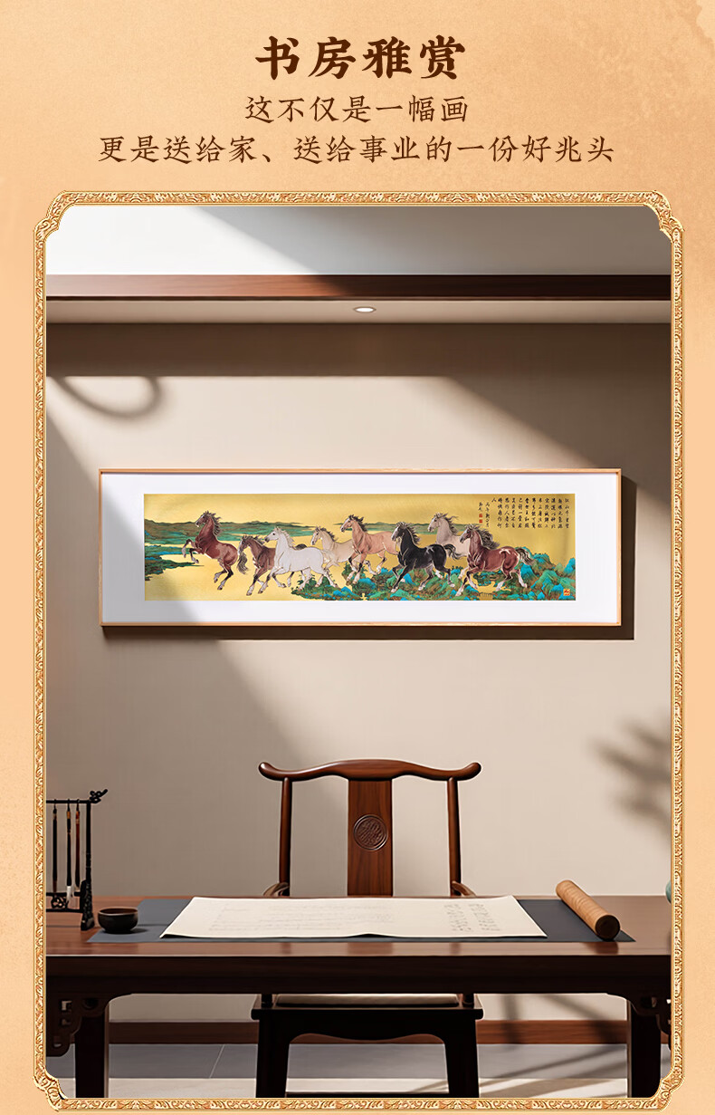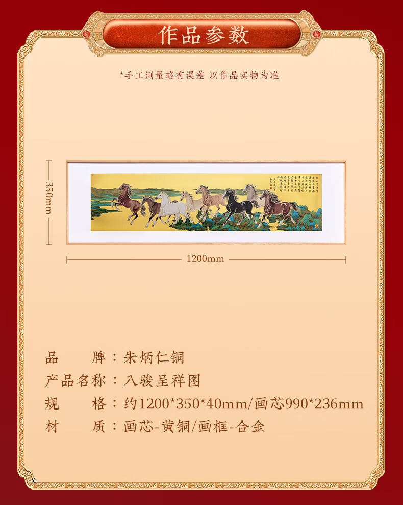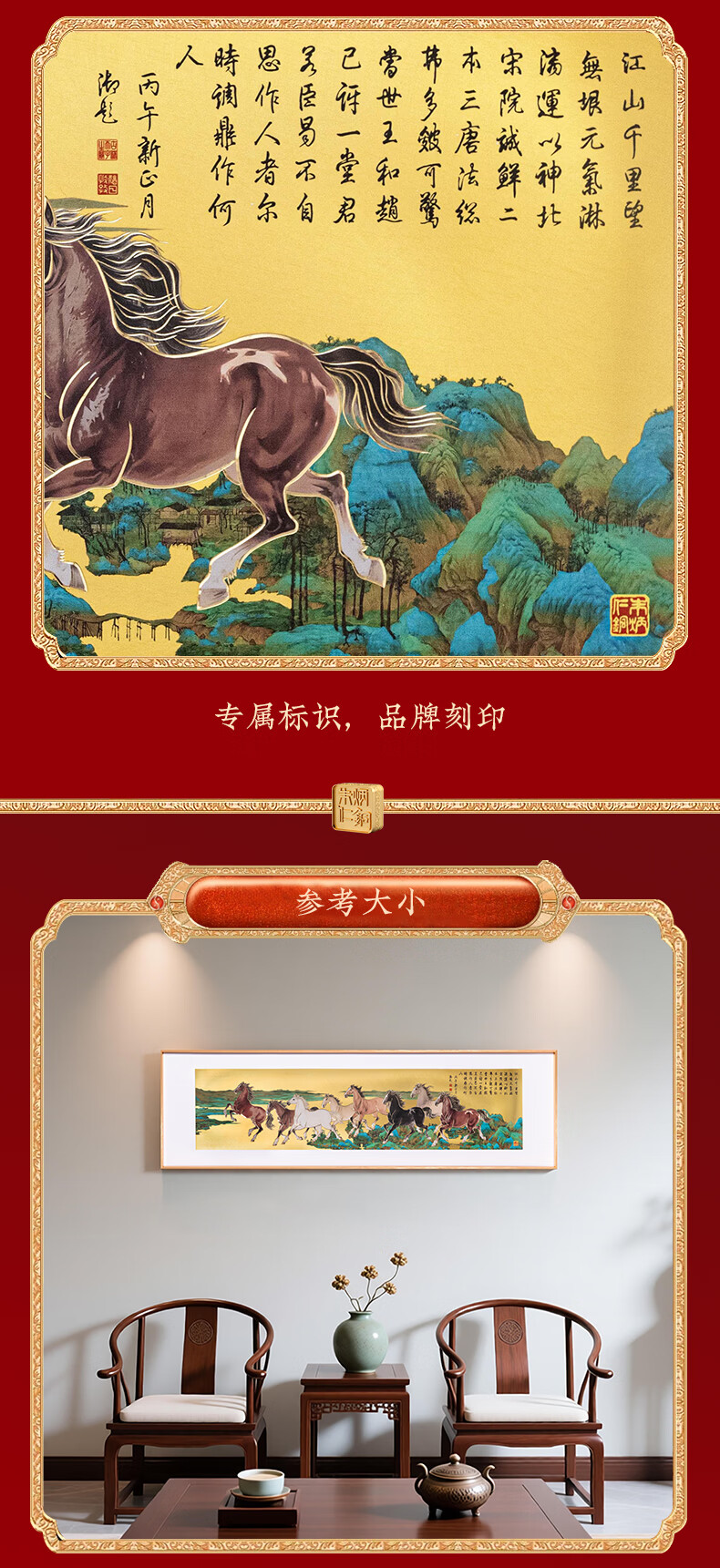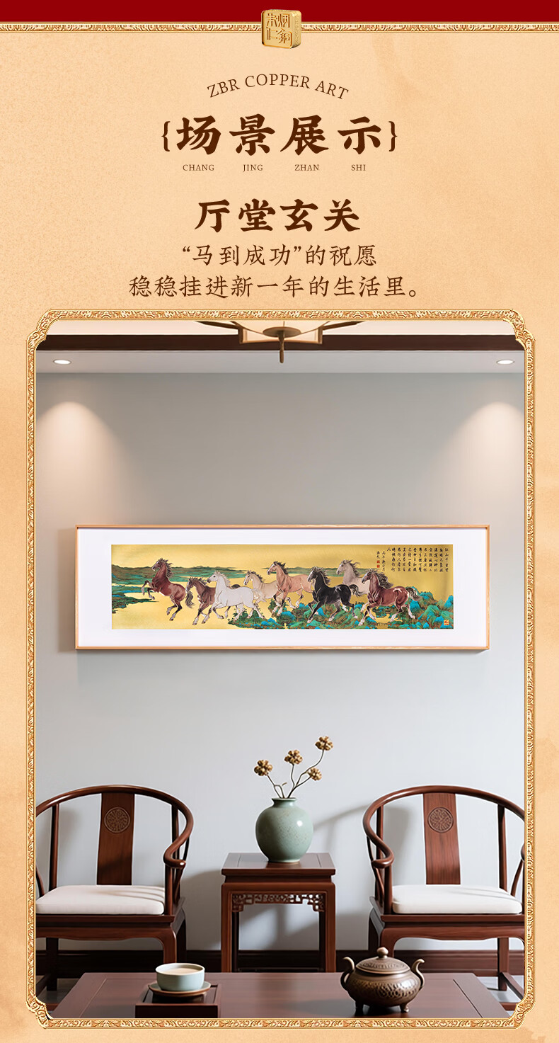 朱炳仁铜 八骏呈祥图 玄关走廊画客厅装饰画办公室挂画生肖八骏马壁画 八骏呈祥图