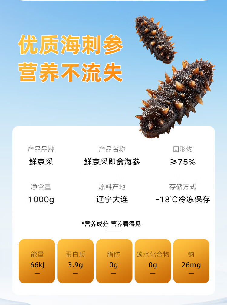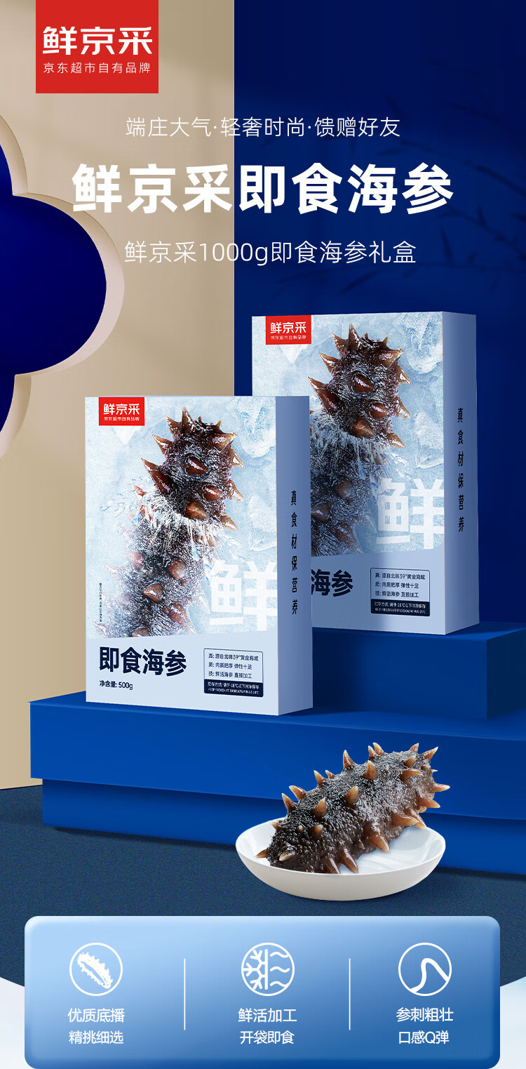 鲜京采【京东自有品牌】大连即食海参2斤16-20只 固形物超75%