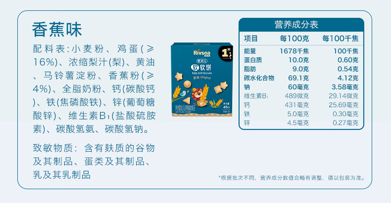 禾泱泱婴幼儿软软饼香蕉味45g宝宝零食软饼干磨牙饼干强化钙铁锌6月+