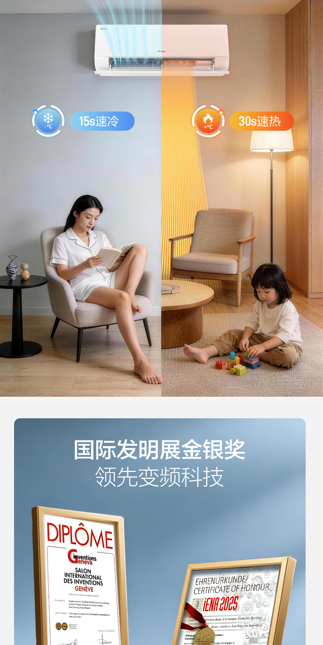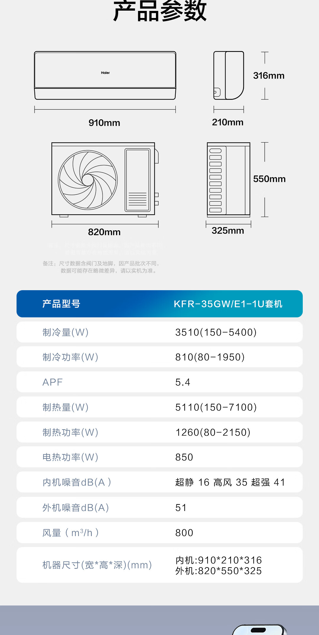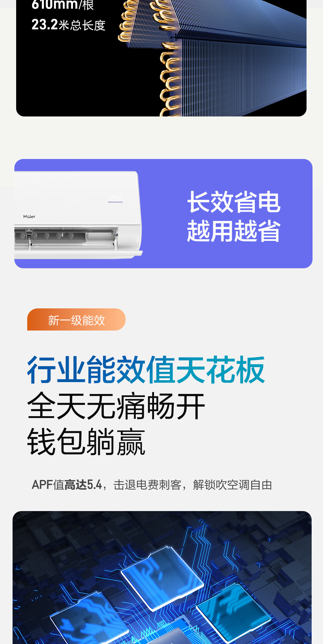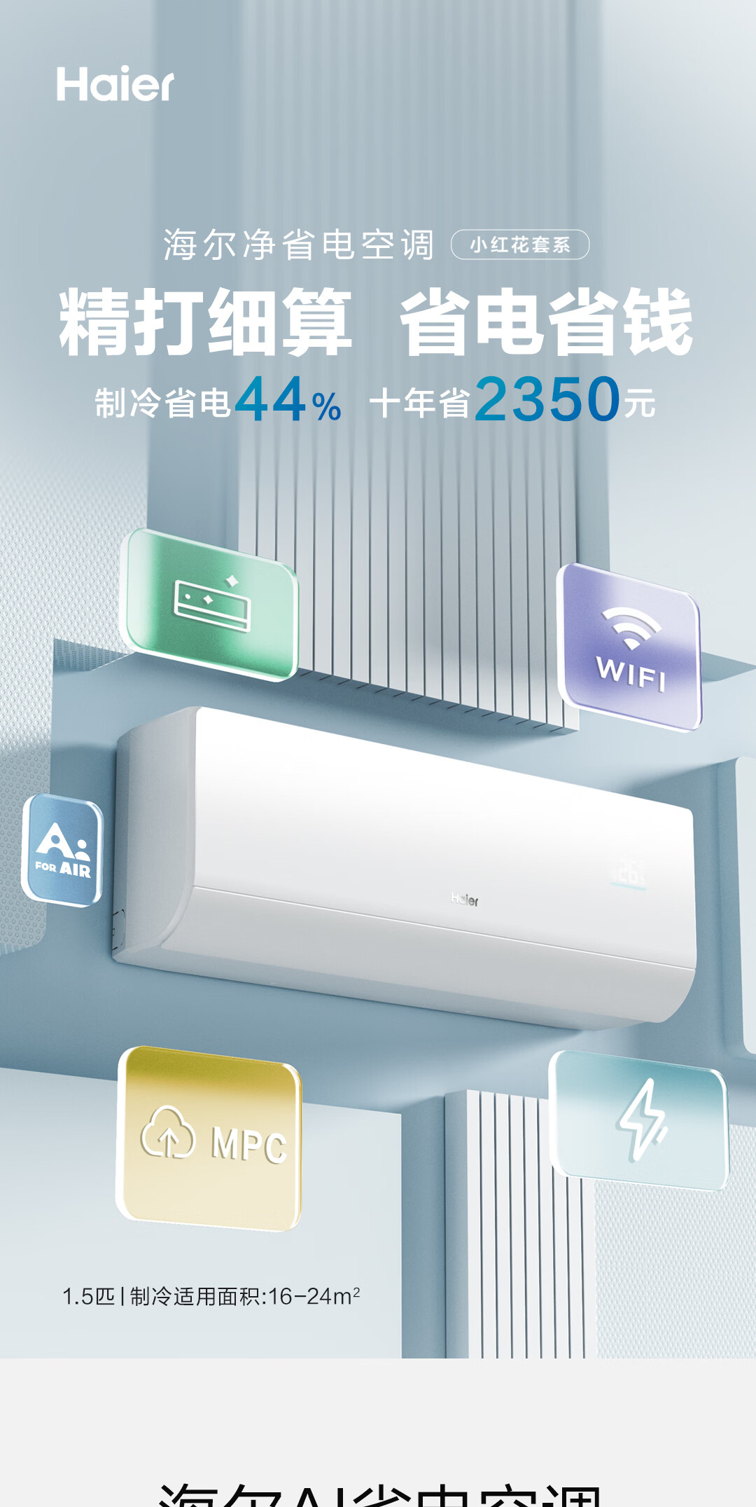 海尔空调 净省电二代Pro大1.5匹挂机 新一级能效变频 升级大双排纯铜管蒸发器 国家补贴KFR-35GW/E1-1U