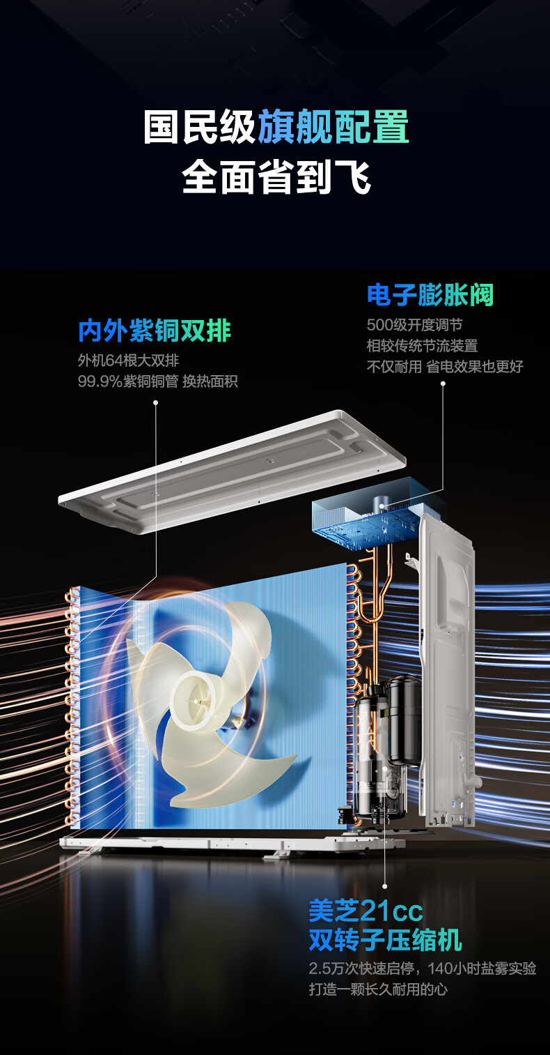 小米空调 米家 巨省电双排款 2匹一级能效 双排铜管内外机 空调挂机50GW-PG20/N1A1 整机十年质保