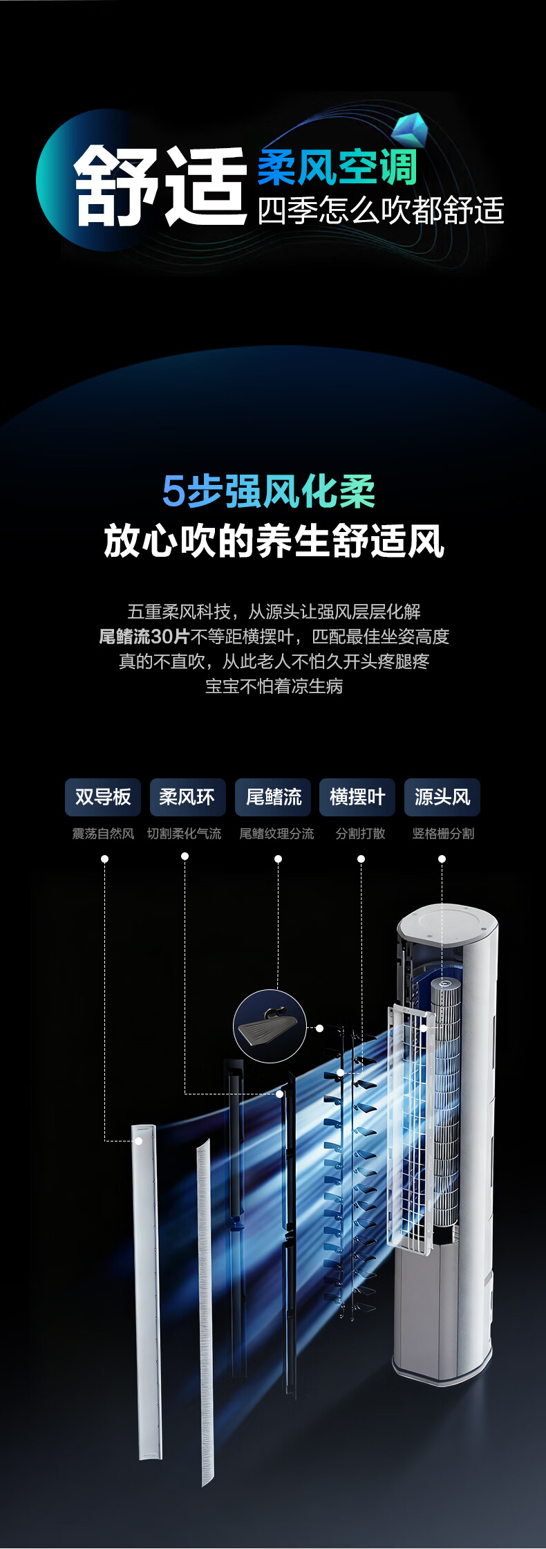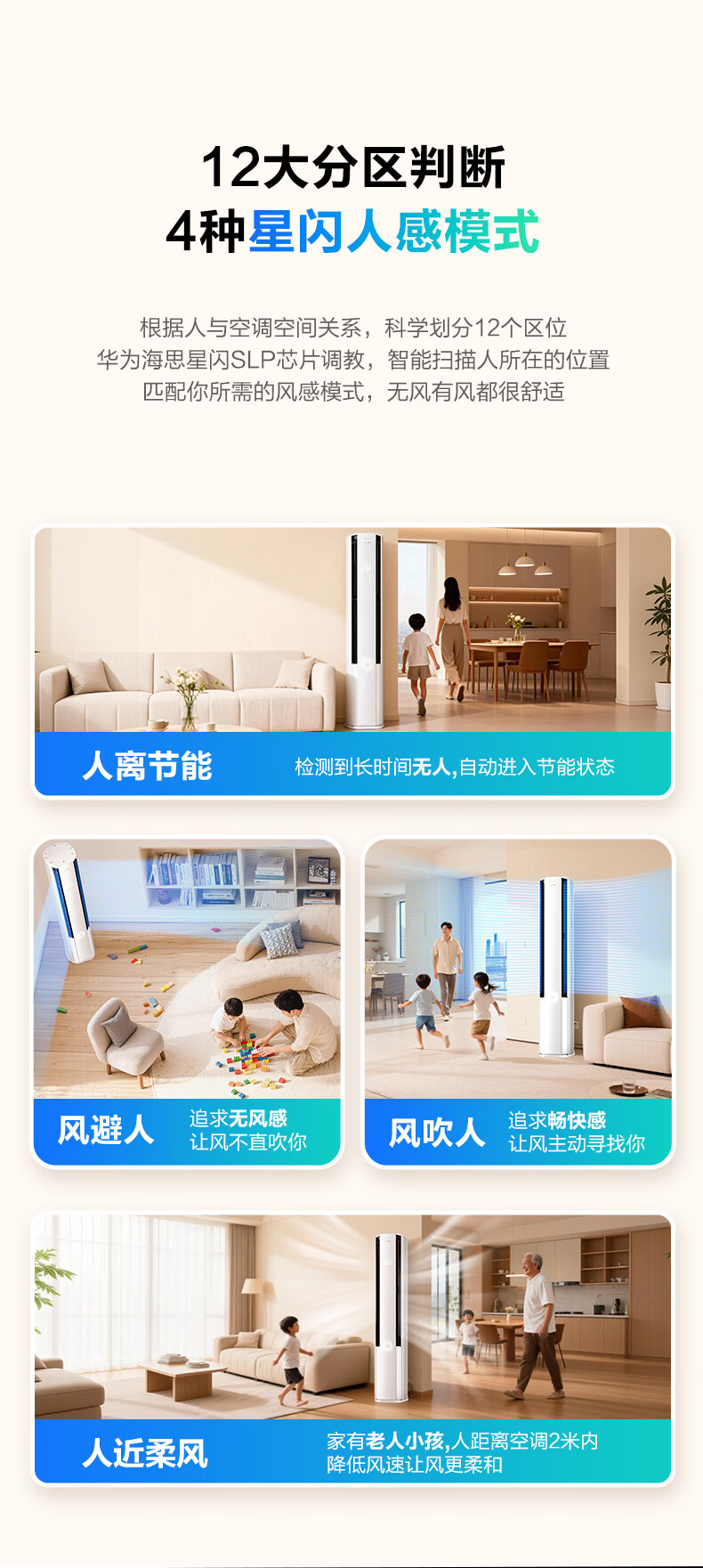 海尔空调舒适风麦浪 2匹/3匹 新一级能效变频 冷暖两用 双排铜管 客厅立式柜机 以旧换新 雷达智慧人感科技 3匹 72E2-1Pro