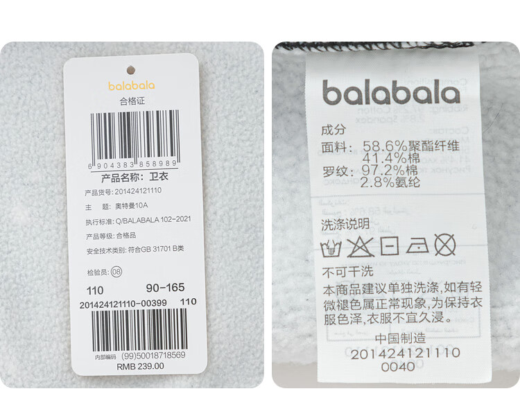 巴拉巴拉男童卫衣加绒半高领秋冬装【奥特曼IP】201424121110