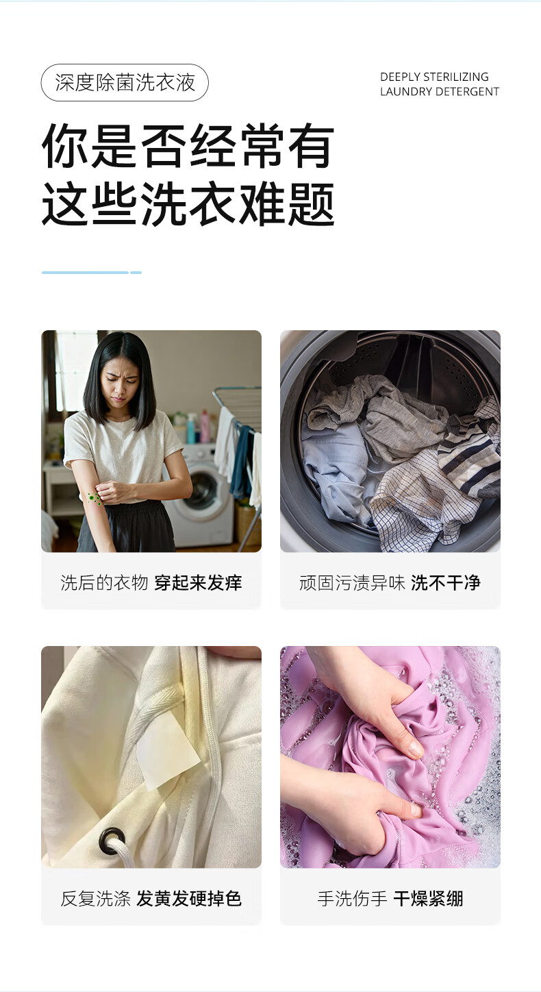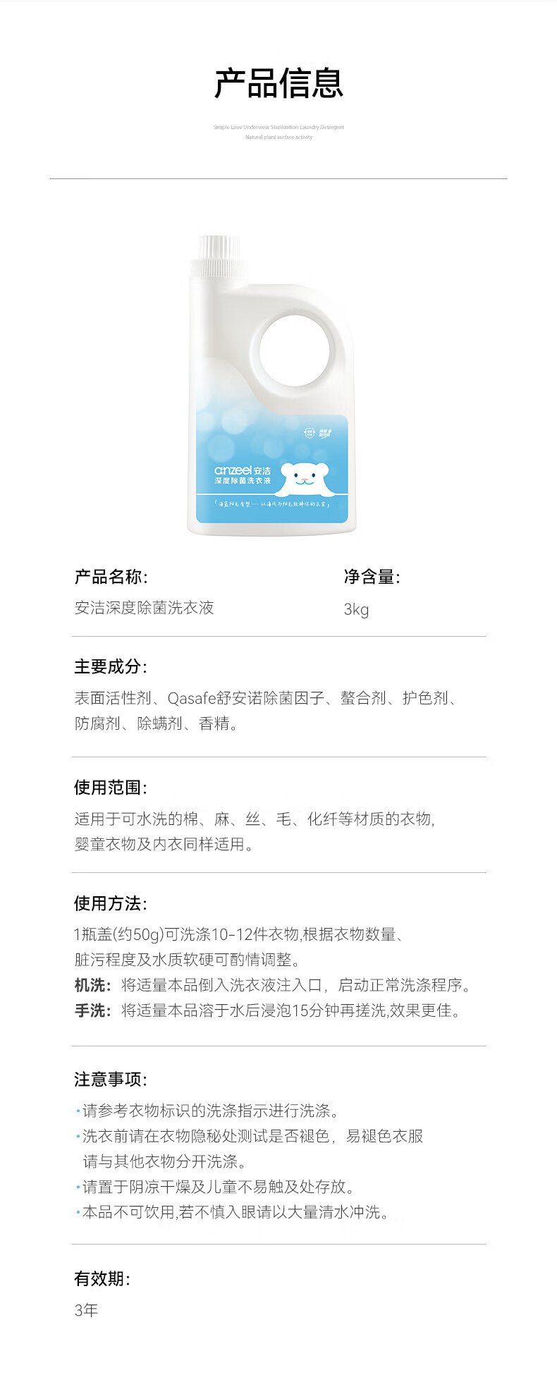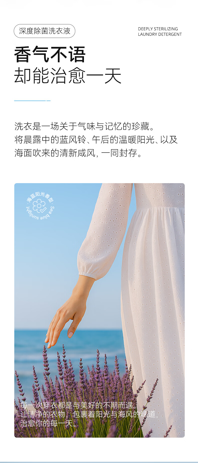 安洁(Anzeel)深度除菌洗衣液海蓝阳光香型持久留香除螨柔顺护色家用温和不伤手 洗护柔顺套装