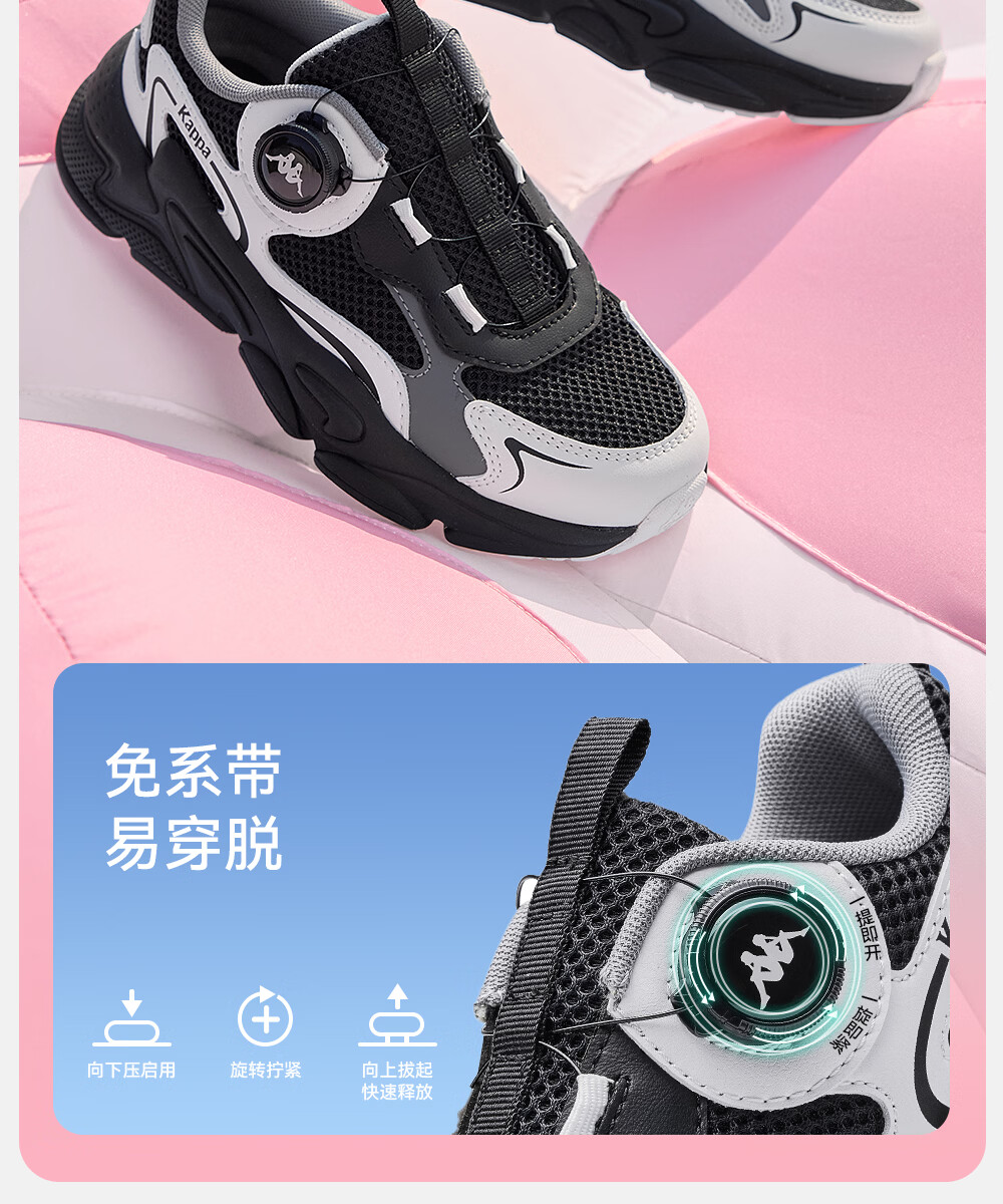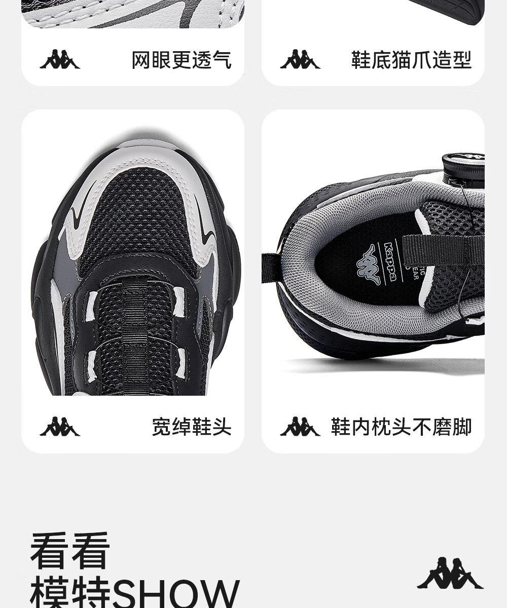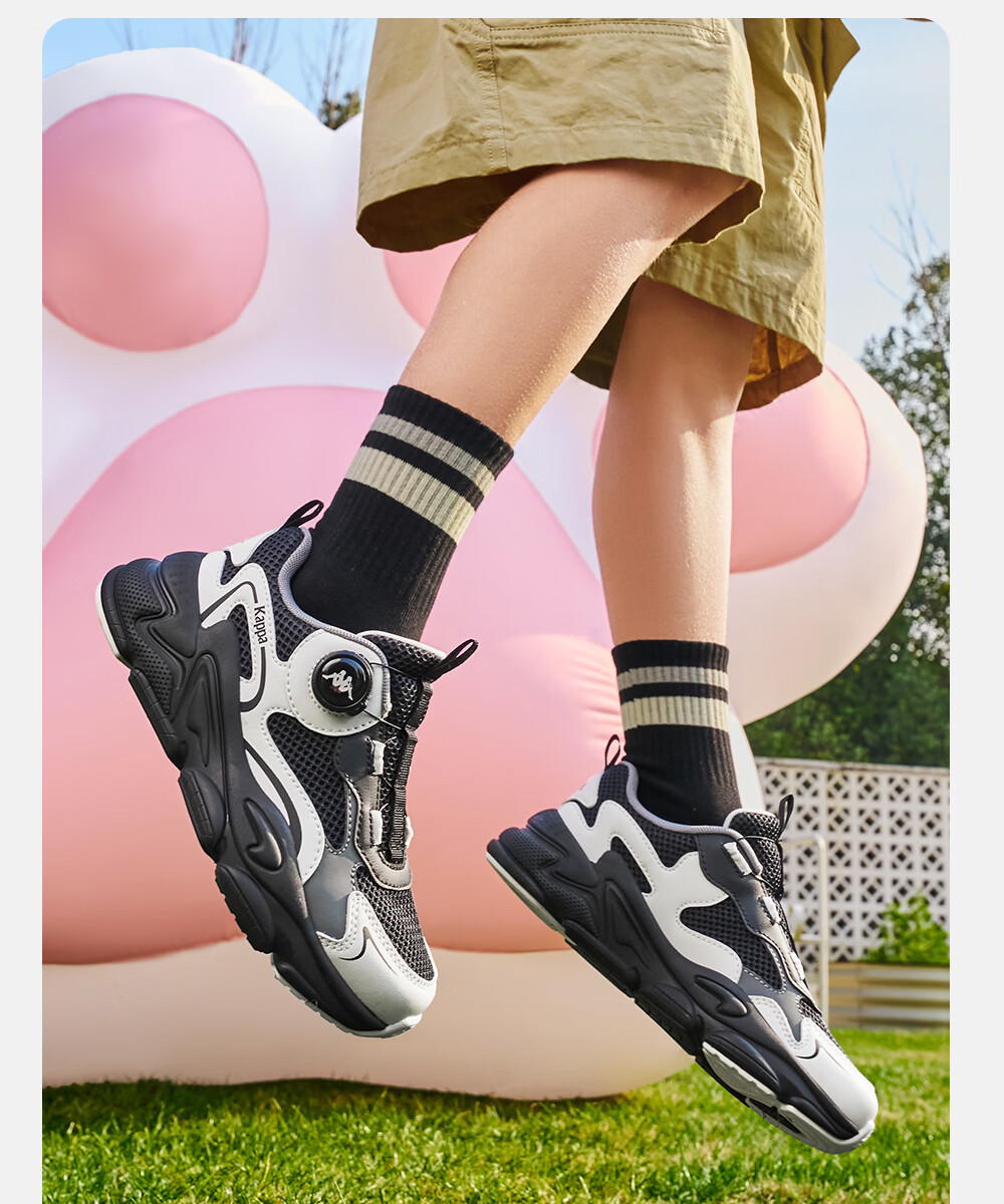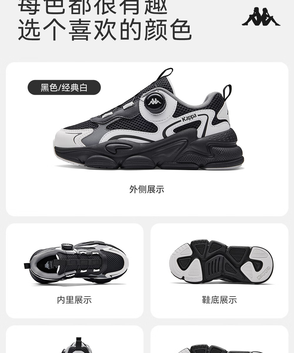 卡帕(Kappa)儿童运动鞋男童鞋子2026春季新款减震跑步鞋青少年训练耐磨篮球鞋 黑色/经典白 34