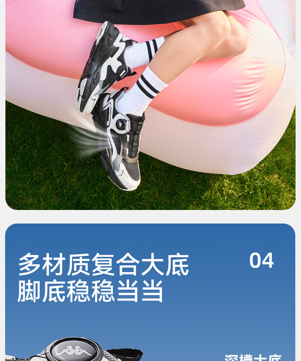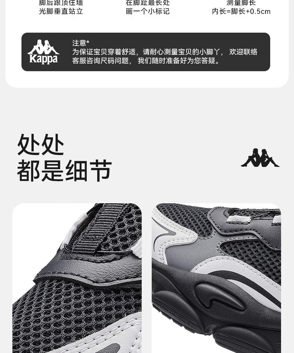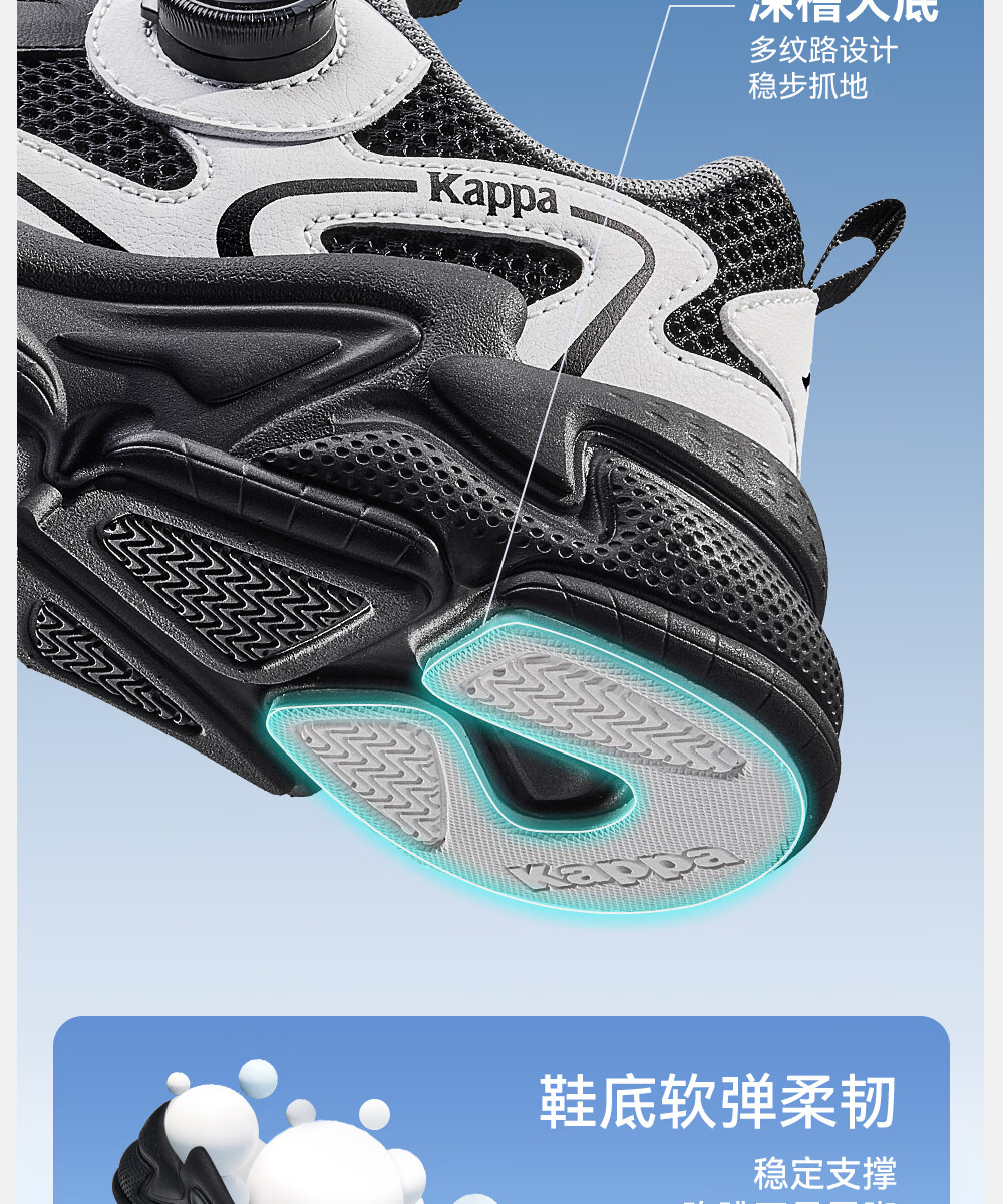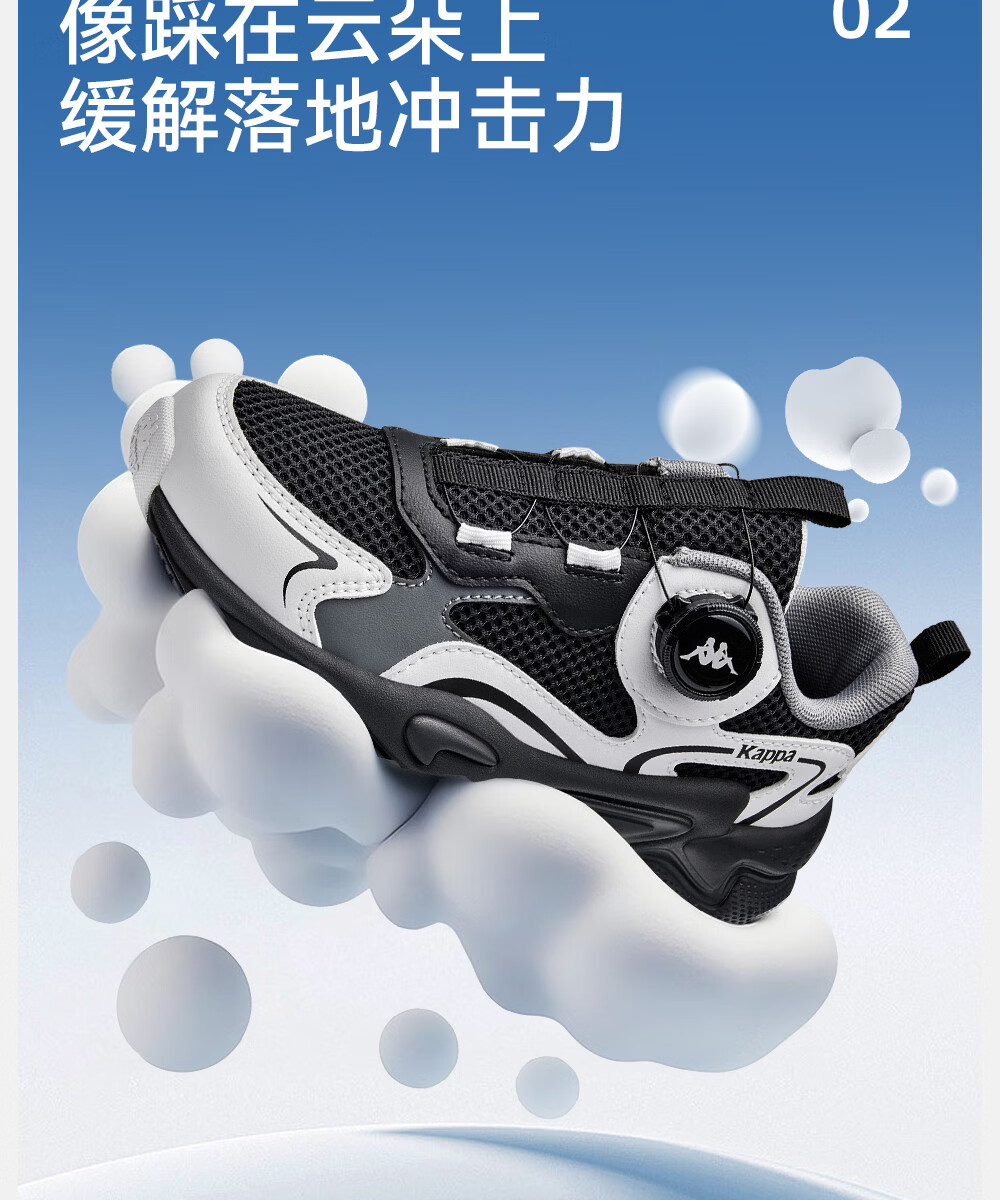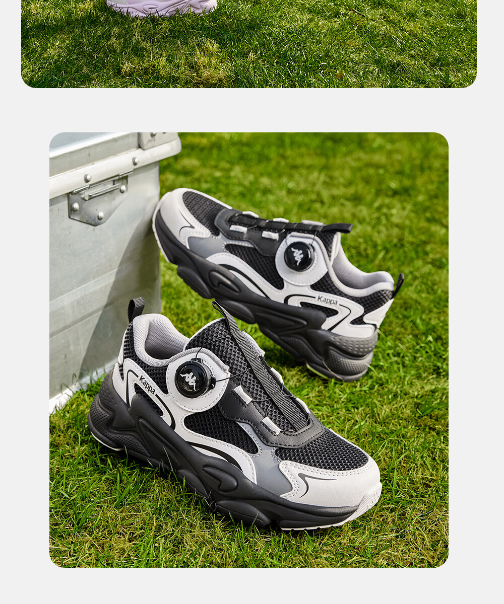 卡帕(Kappa)儿童运动鞋男童鞋子2026春季新款减震跑步鞋青少年训练耐磨篮球鞋 黑色/经典白 34