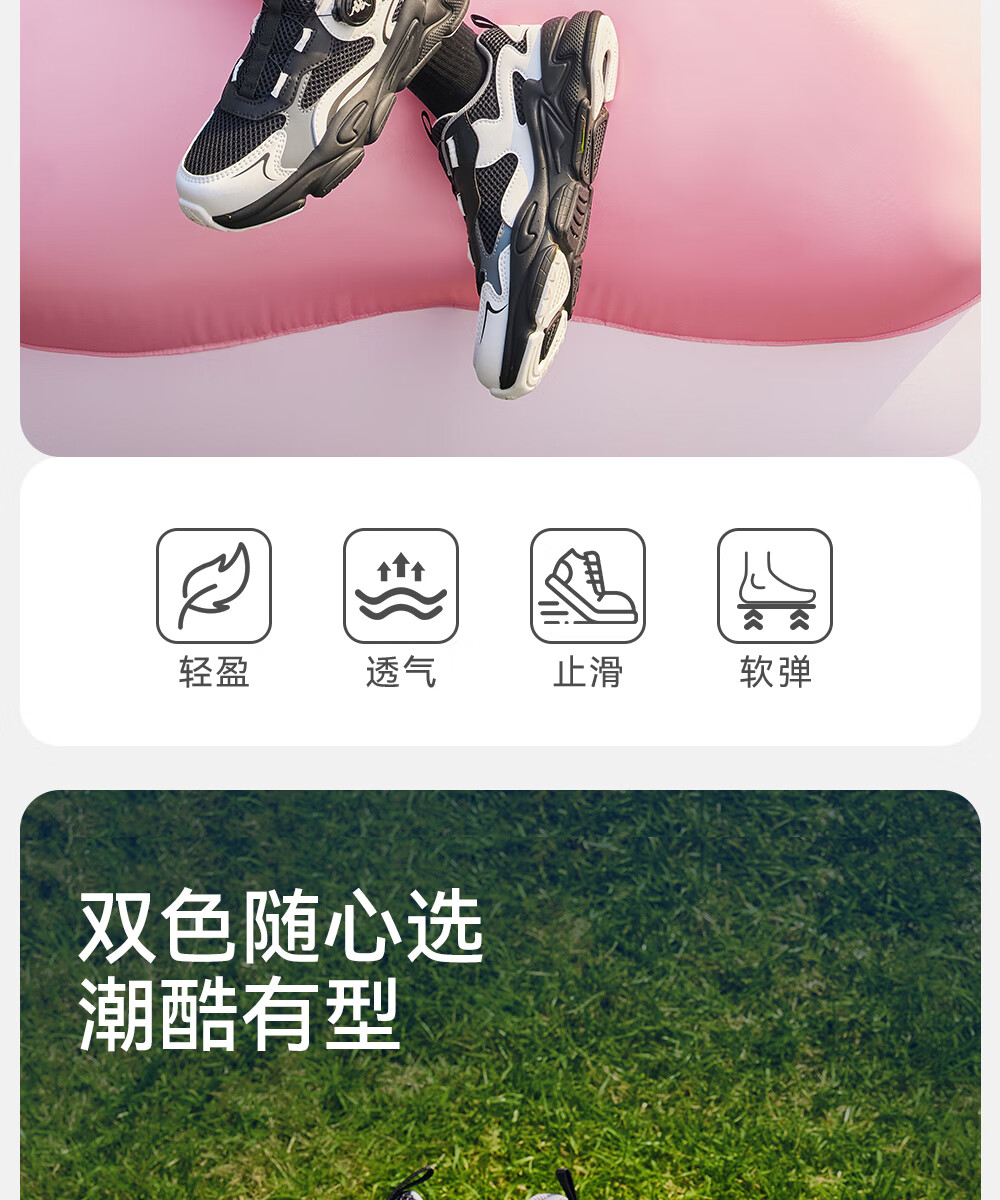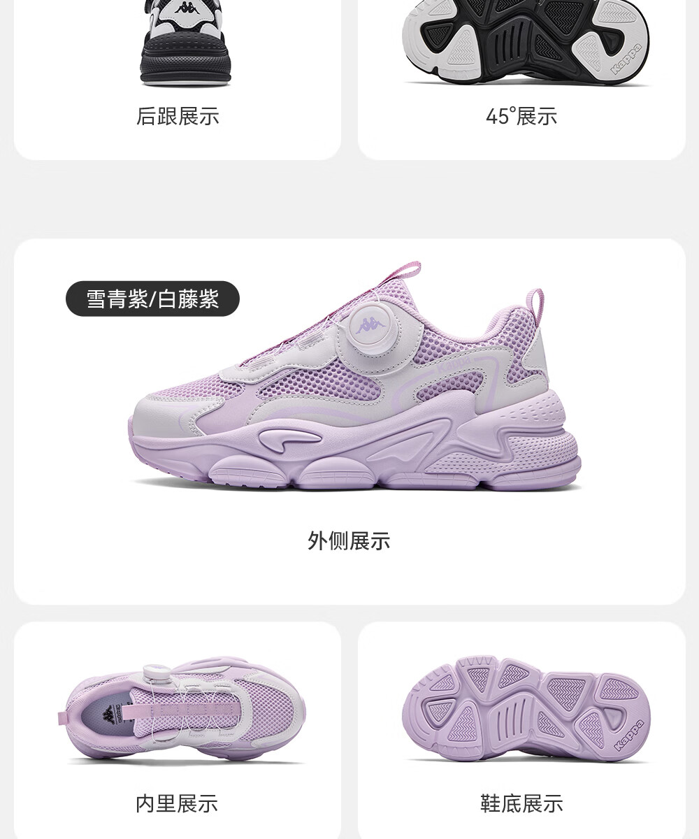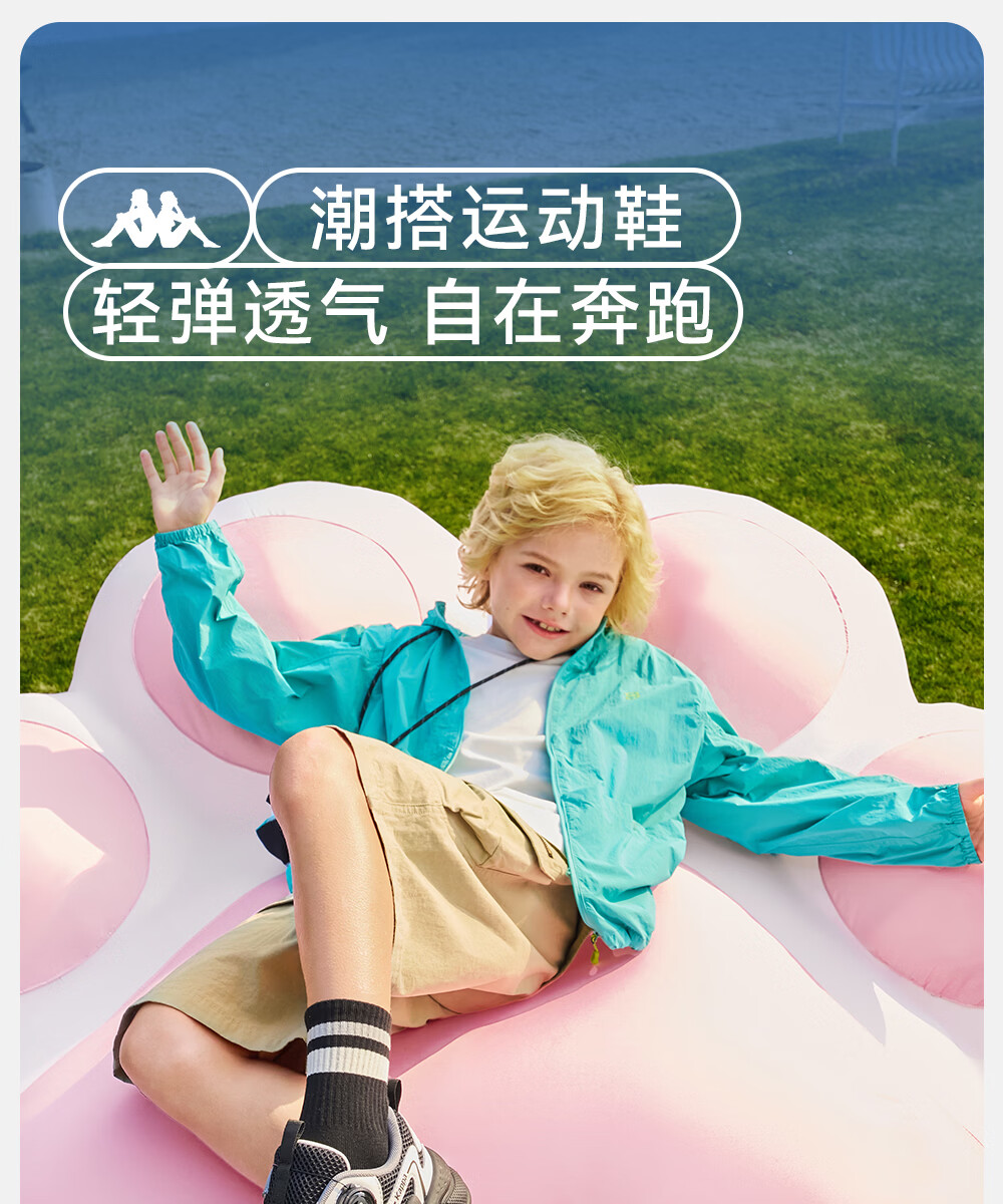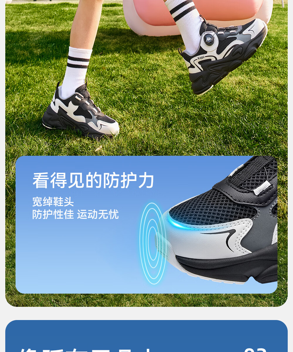 卡帕(Kappa)儿童运动鞋男童鞋子2026春季新款减震跑步鞋青少年训练耐磨篮球鞋 黑色/经典白 34