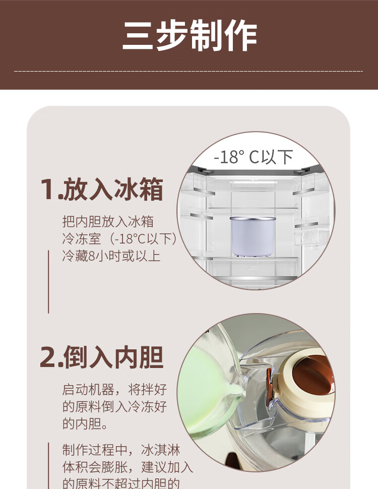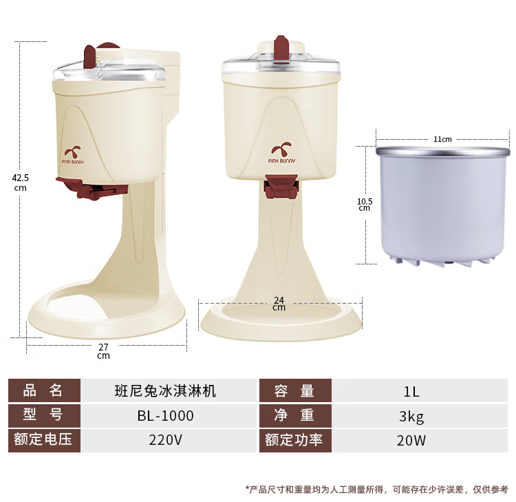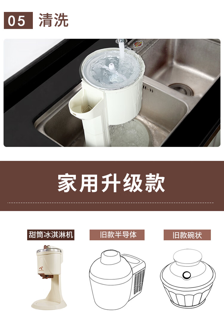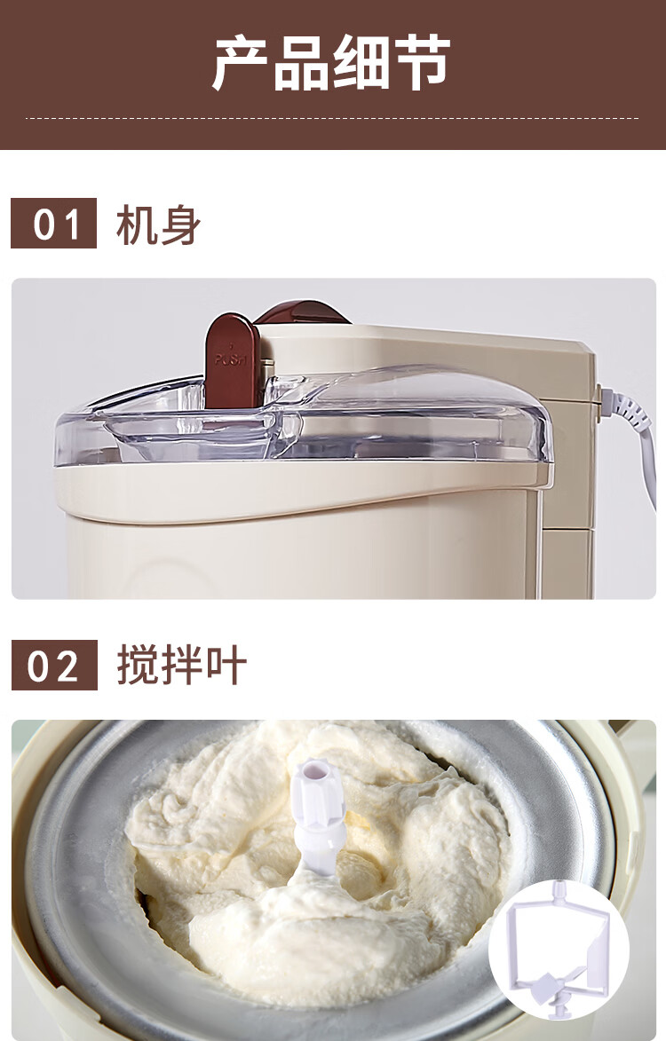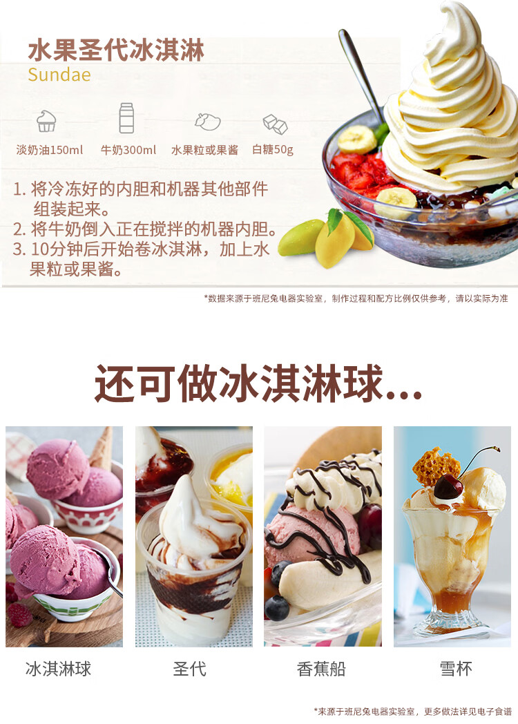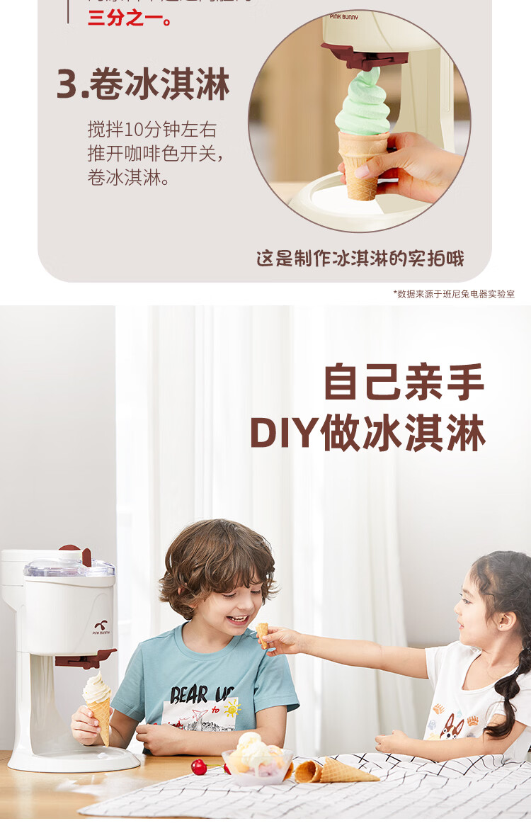 班尼兔(Pink Bunny)冰激凌机家用小型全自动雪糕机儿童自制冰淇淋机器六一送礼 巧克力色-冰淇淋机
