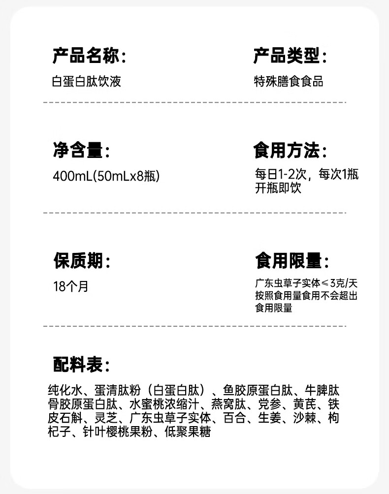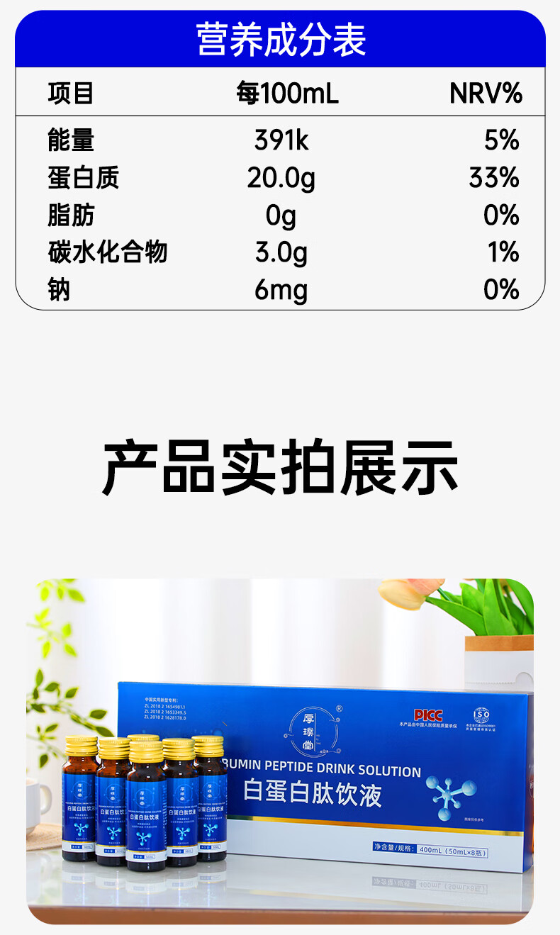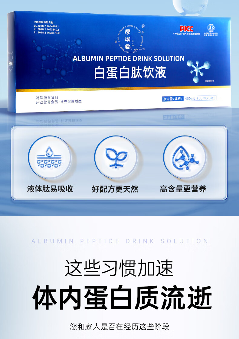 厚璞堂白蛋白肽饮液小分子肽更好吸收营养素饮品补充正品保障 4盒装【一个月装】 400ml*4盒