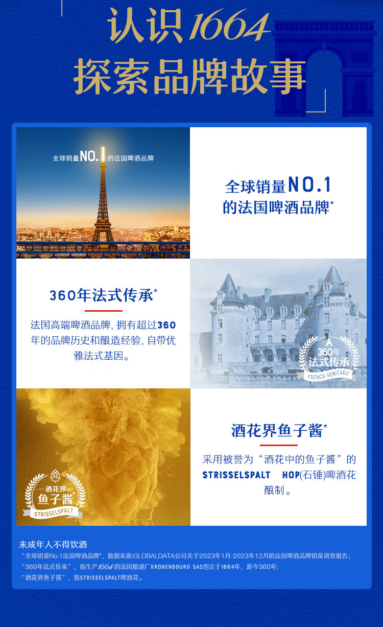 kronenbourg 1664白啤酒330ml*24瓶精酿啤酒整箱装京东自营送礼柑橘风味啤酒