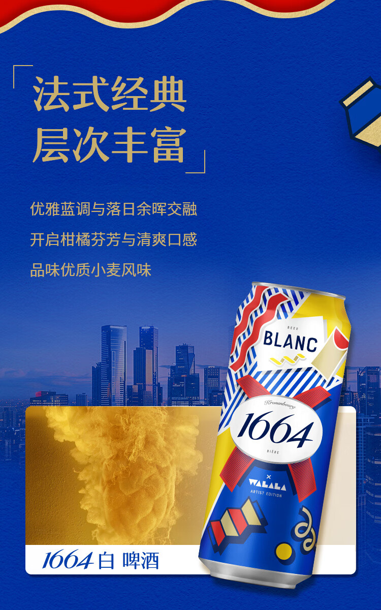 kronenbourg 1664白啤酒500ml*12小麦风味啤酒精酿送礼京东自营整箱装