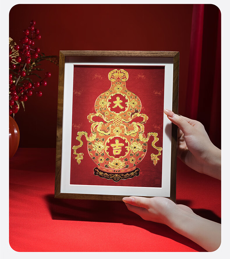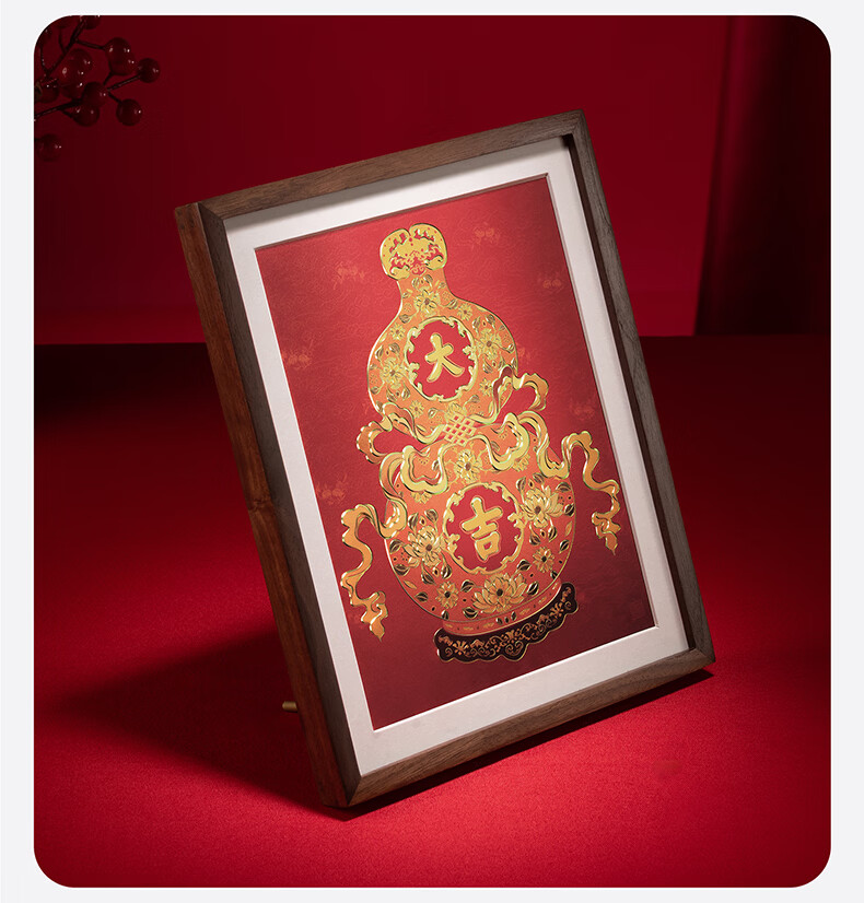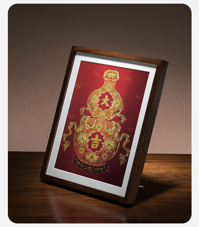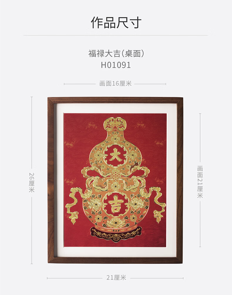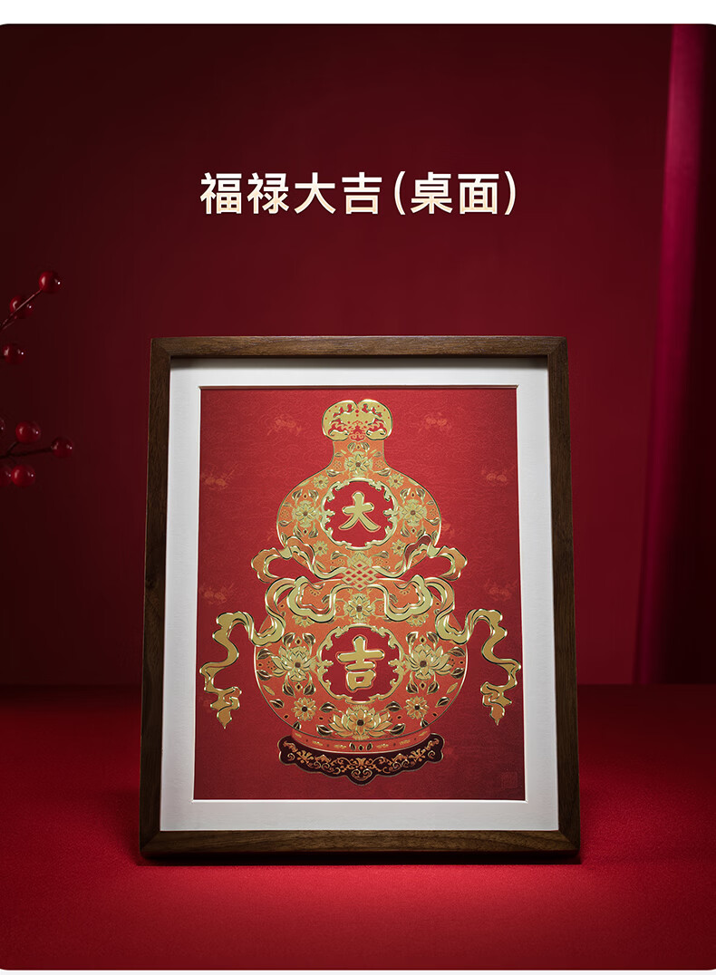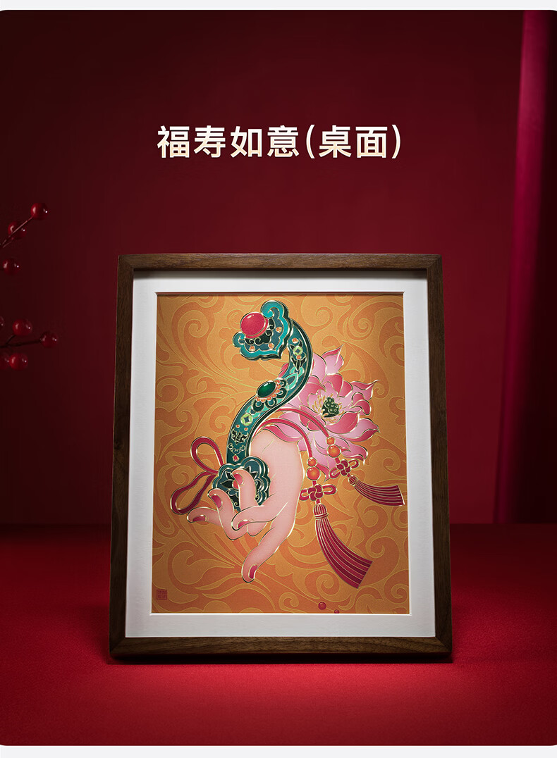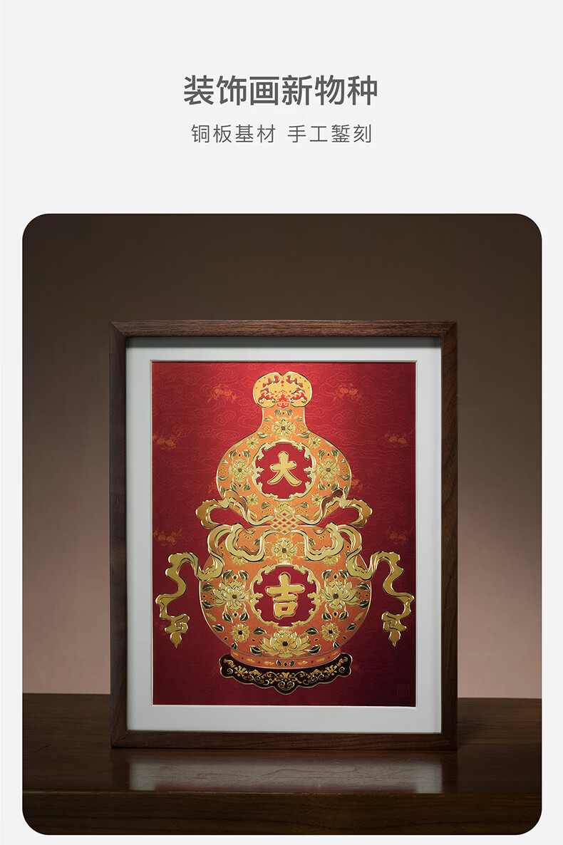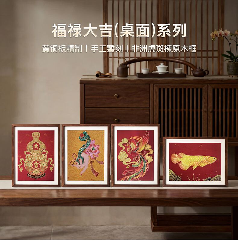 铜师傅手工錾刻 铜雕画 《福禄大吉(桌面)系列》书房办公室装饰画 福寿如意(桌面)