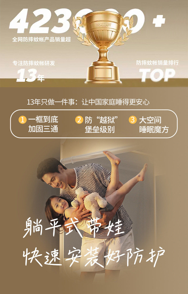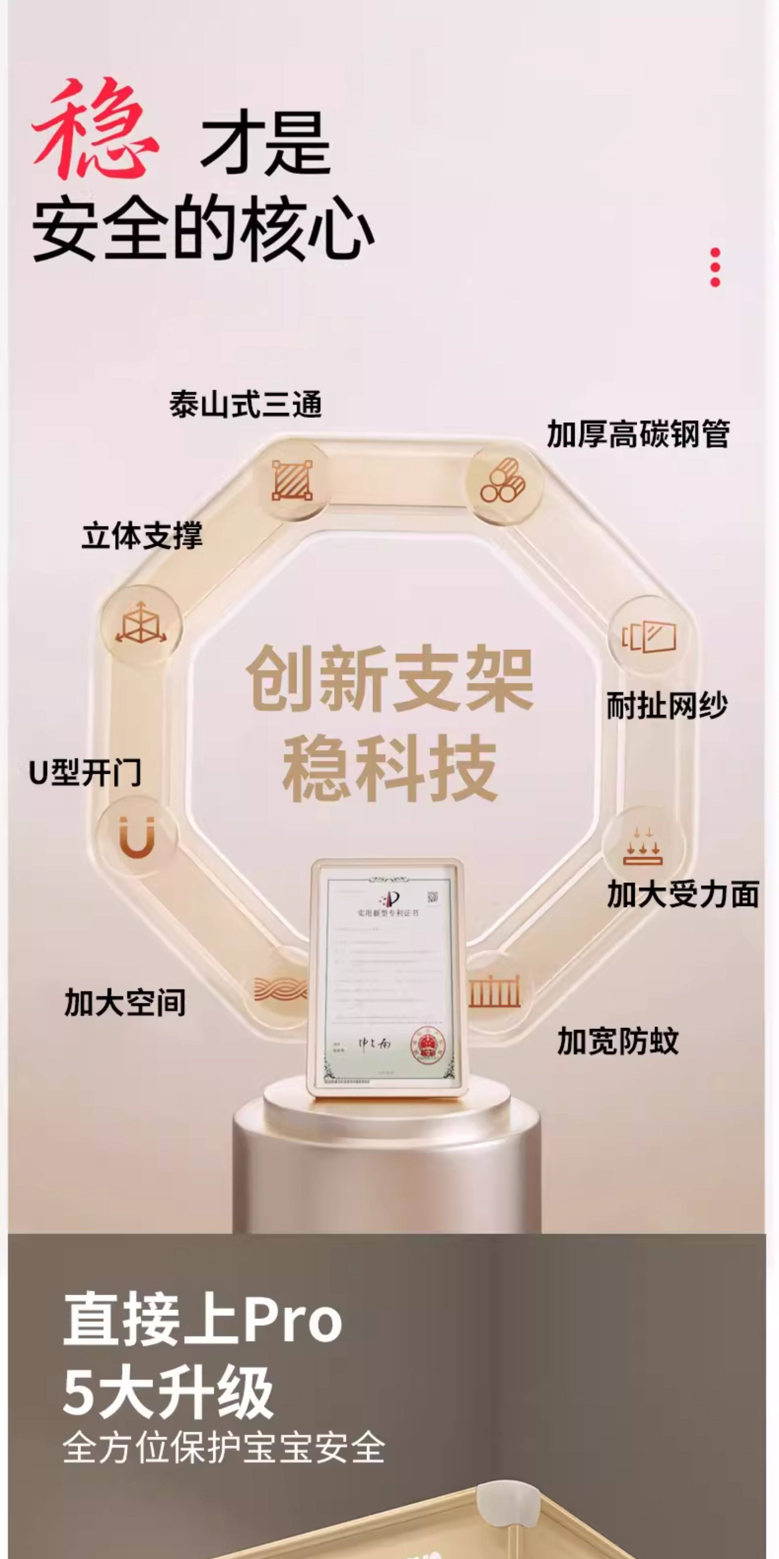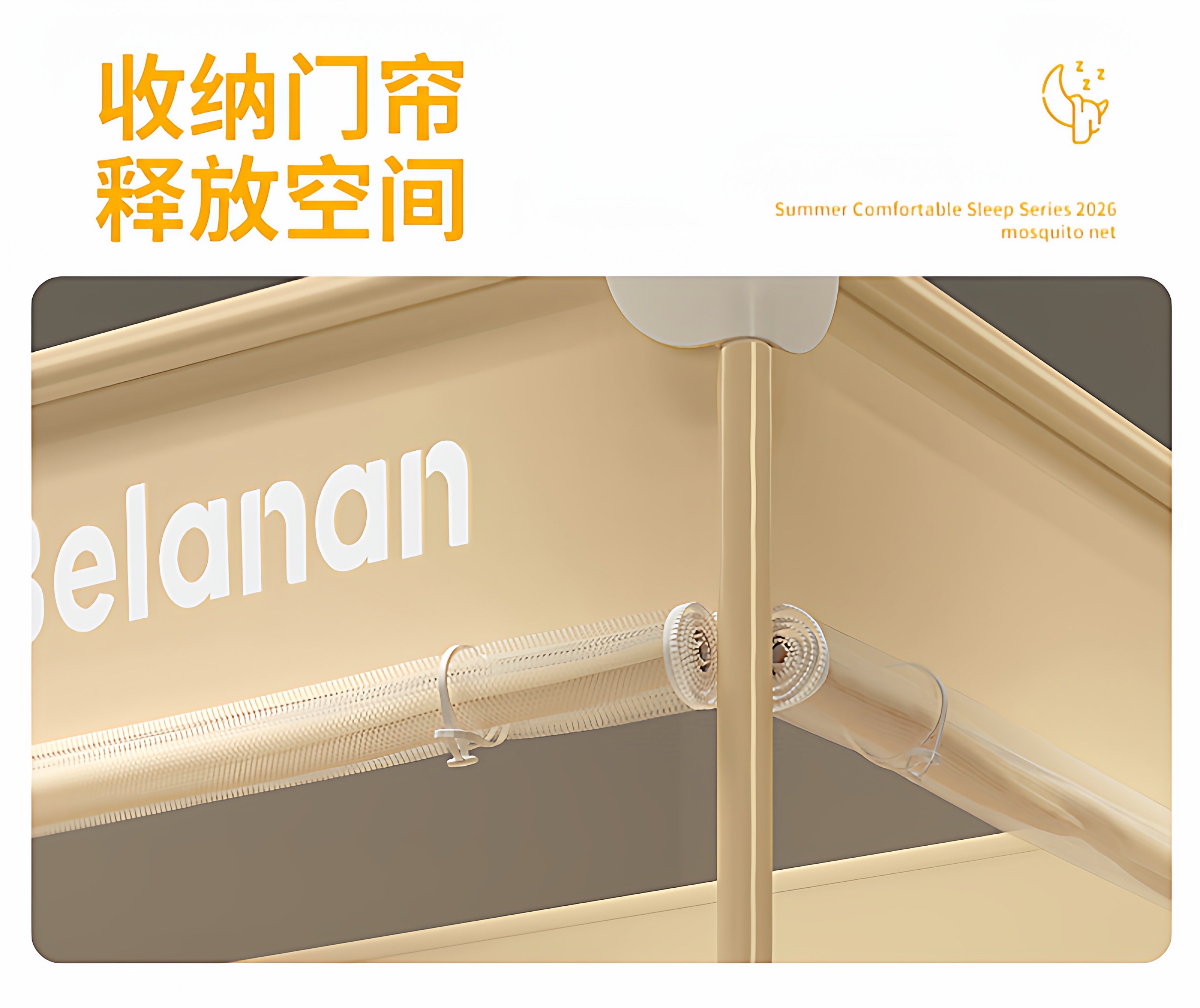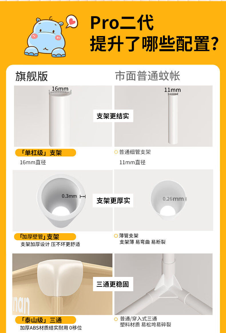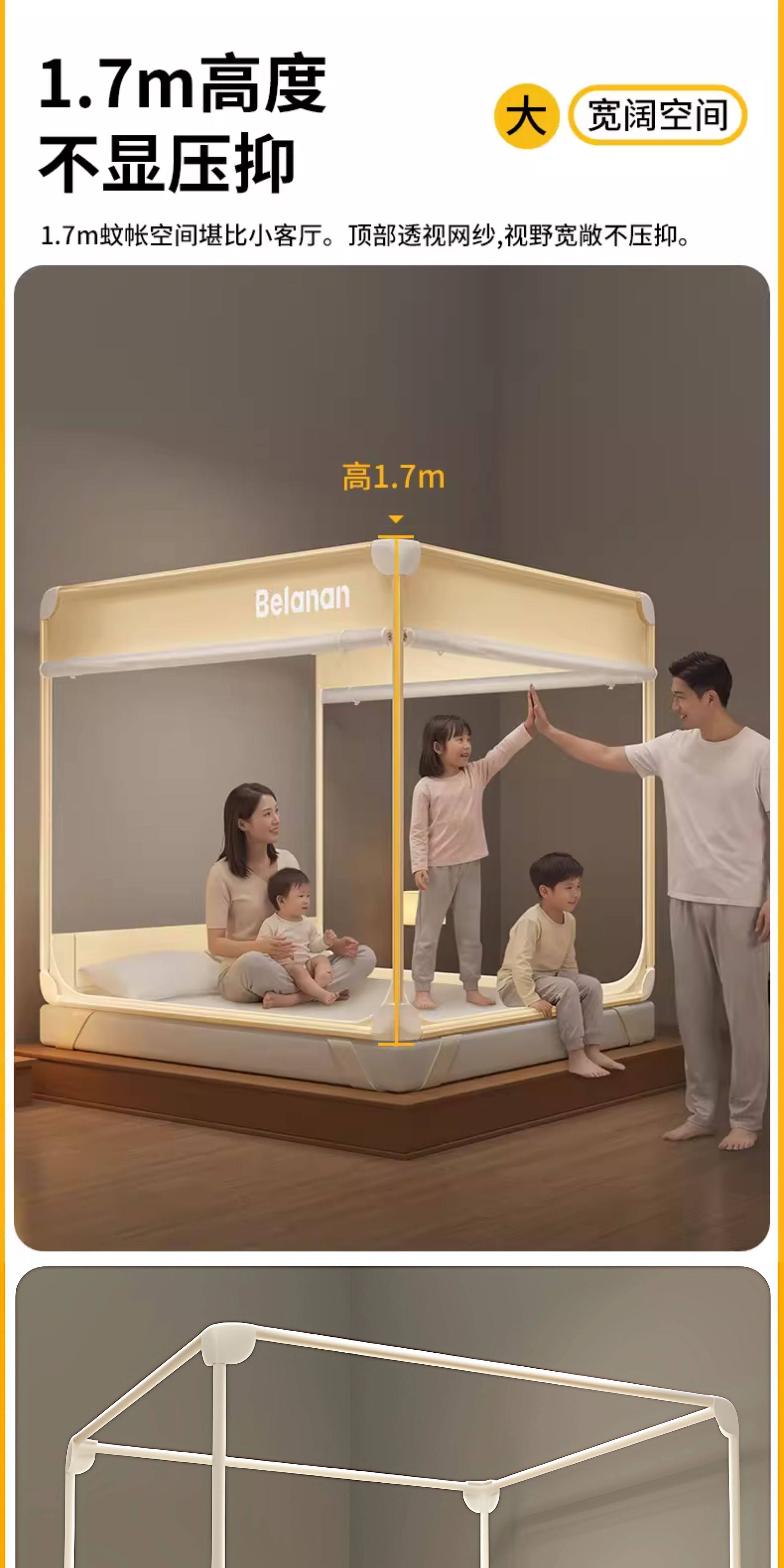 猫人(MiiOW)A类母婴儿防摔蚊帐1.8x2米家用一体式免安装床围栏加粗加厚带支架 max-米色【加固防护宝宝安全】加粗35%支架 【适用1.8x2.0m床】真防摔免拼接支架