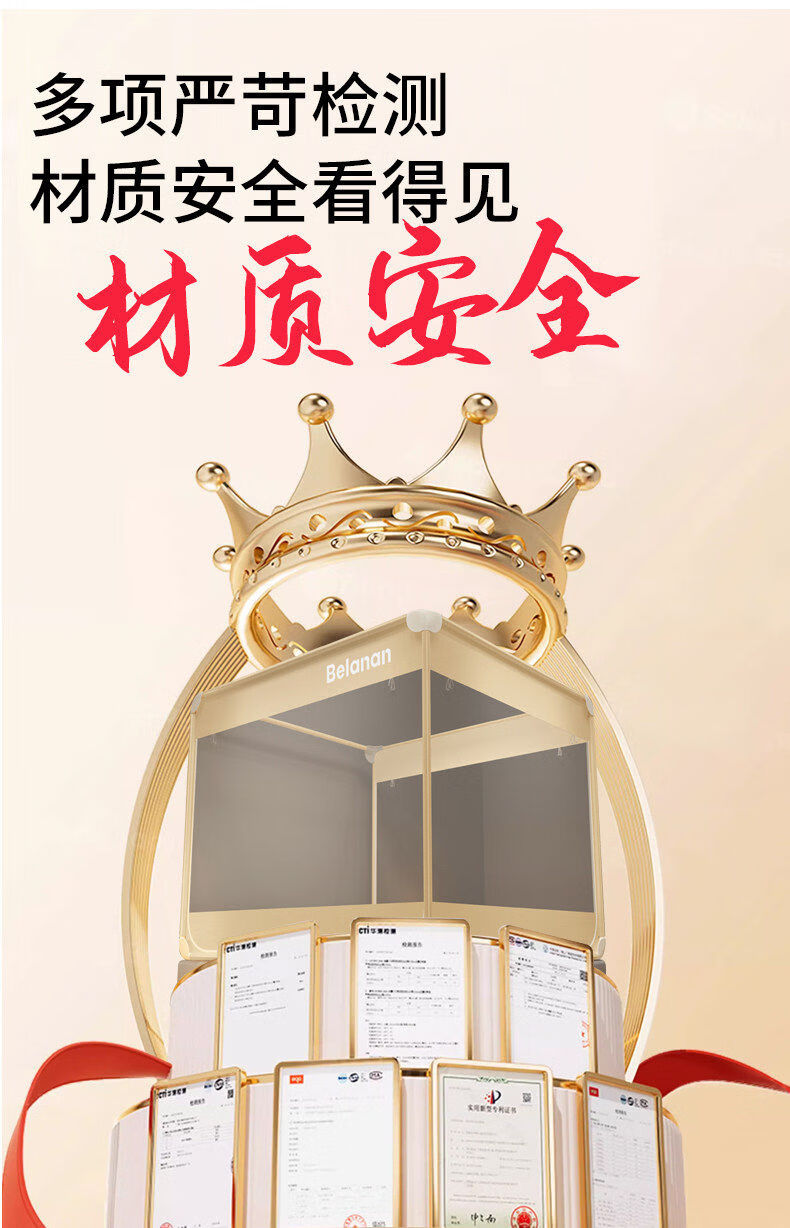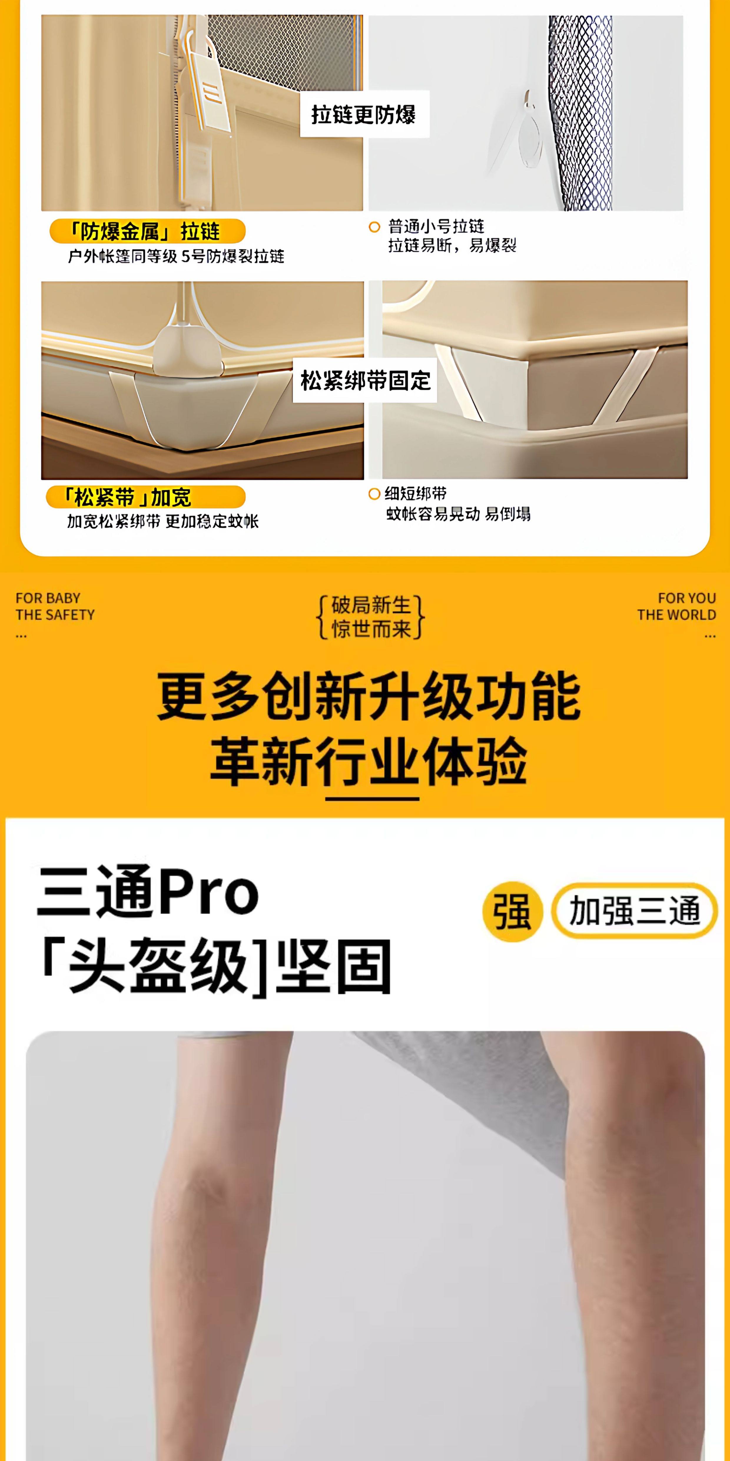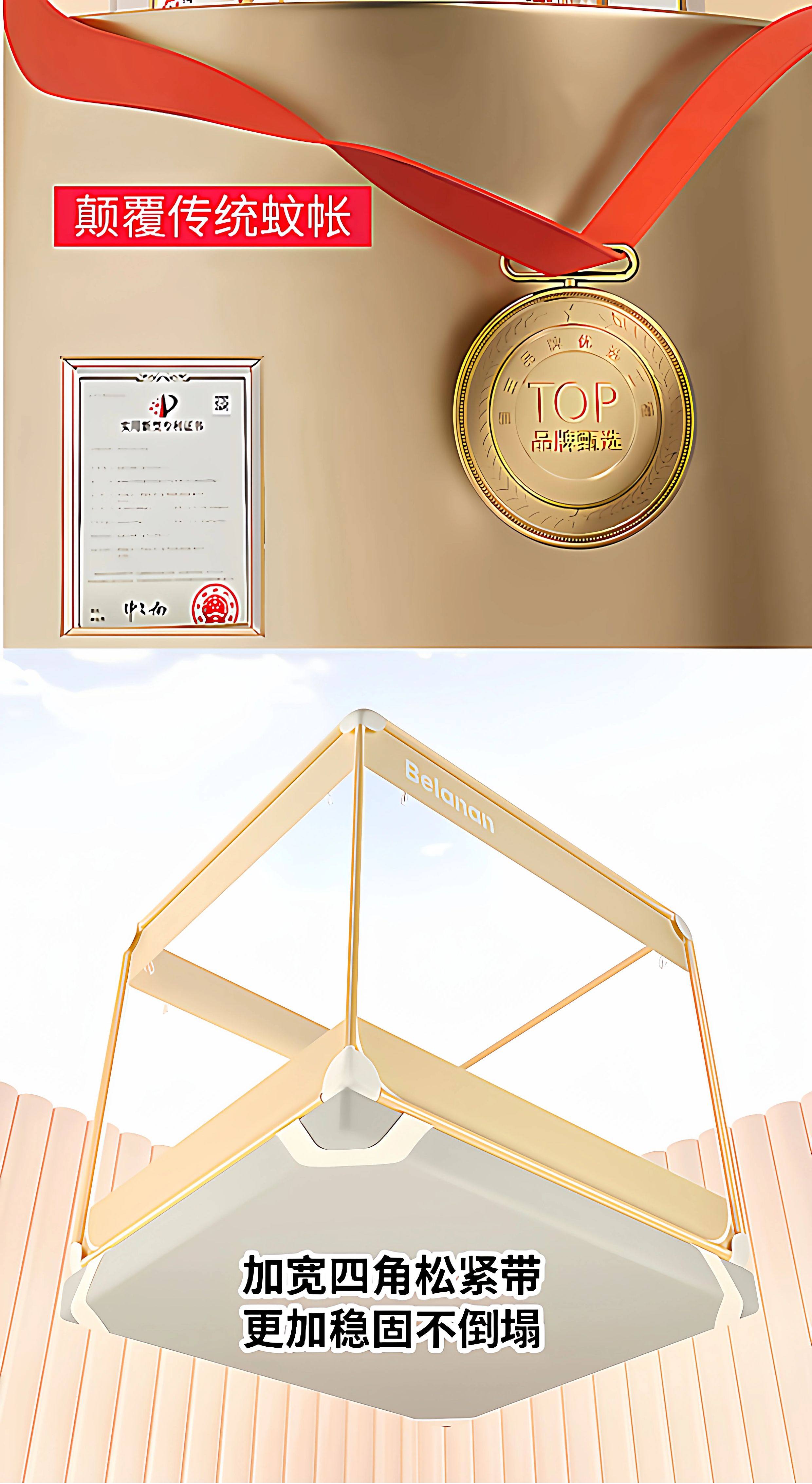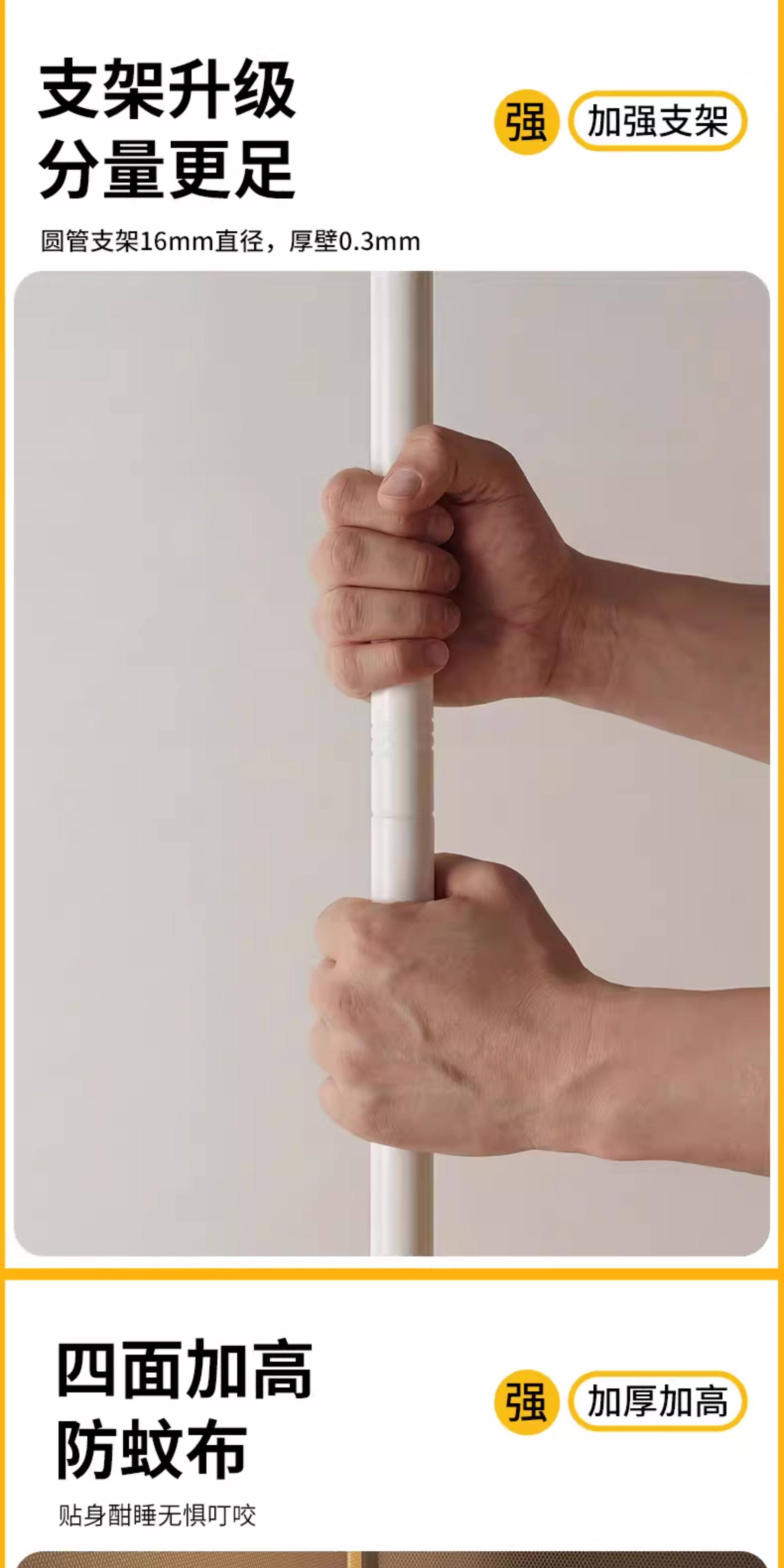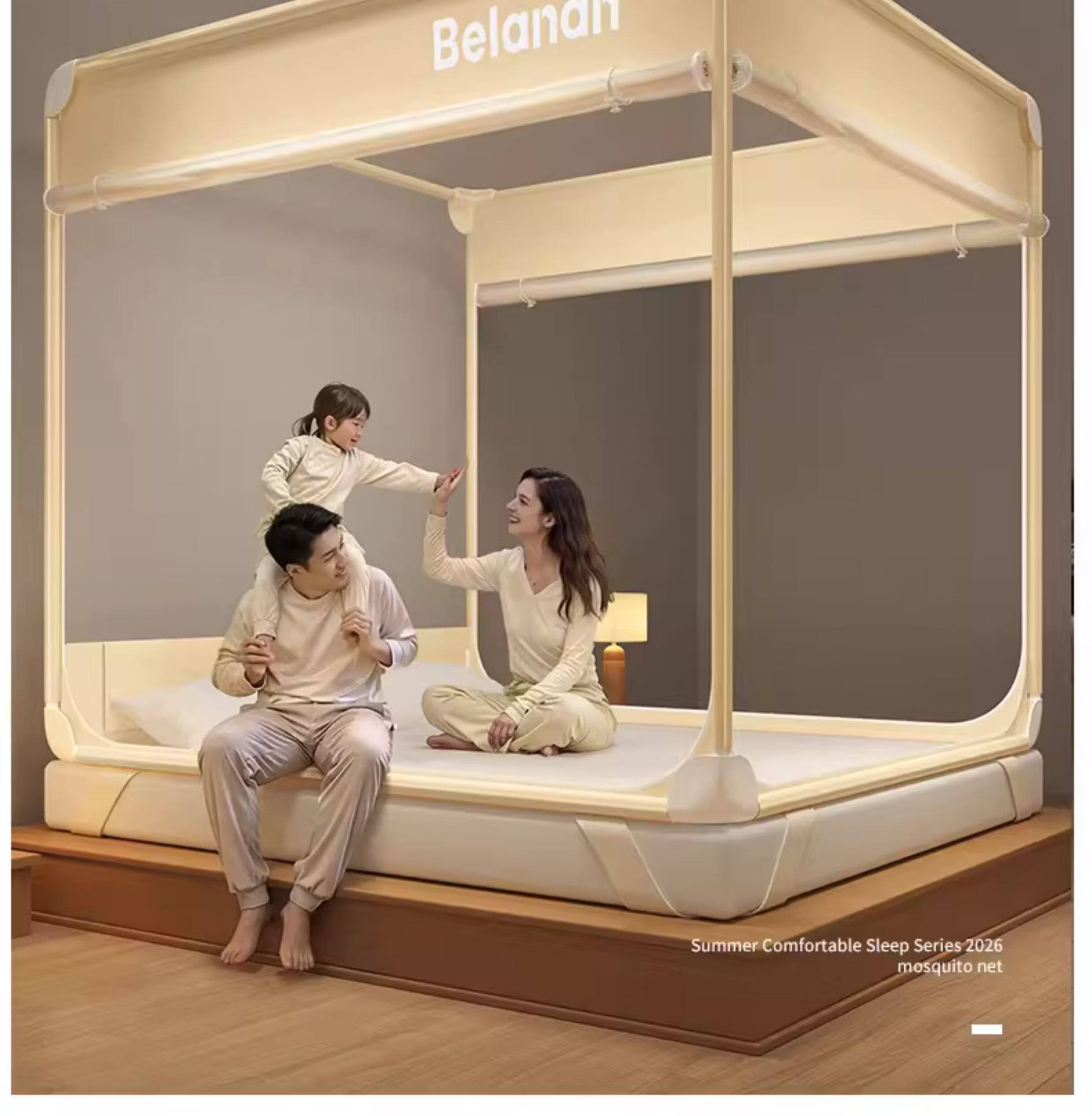猫人(MiiOW)A类母婴儿防摔蚊帐1.8x2米家用一体式免安装床围栏加粗加厚带支架 max-米色【加固防护宝宝安全】加粗35%支架 【适用1.8x2.0m床】真防摔免拼接支架