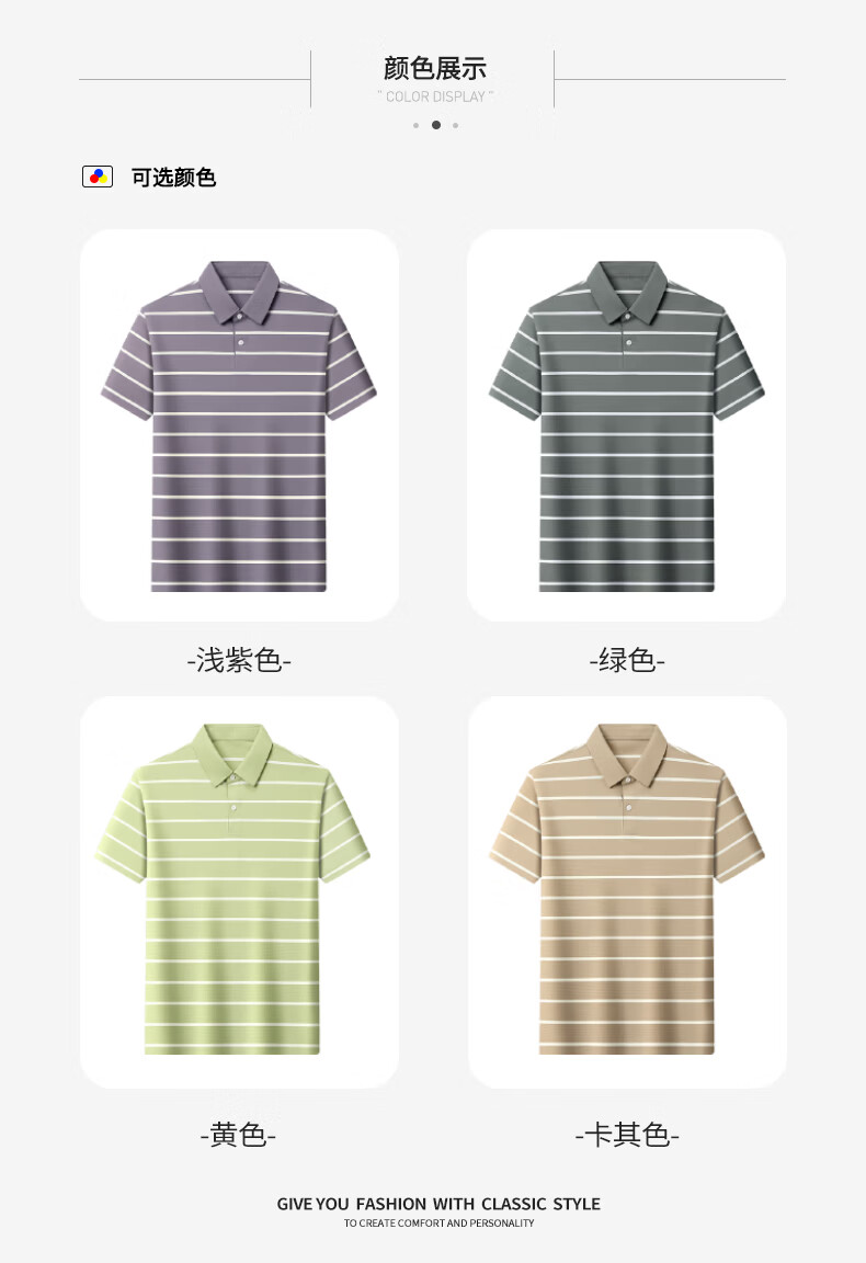 SHANSHAN杉杉【桑蚕丝凉感条纹】短袖t恤男休闲百搭POLO衫夏季新款 绿色 S /165