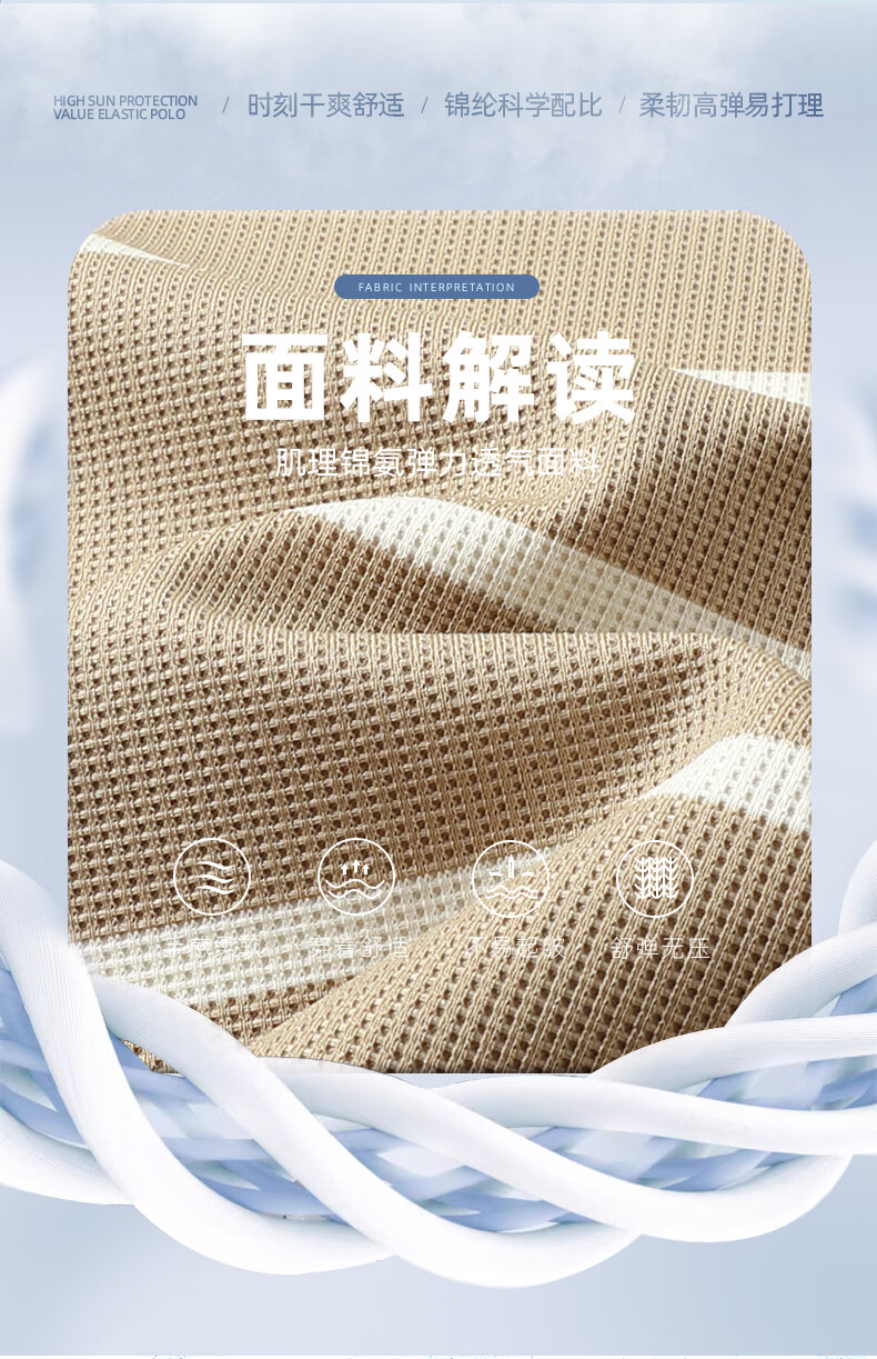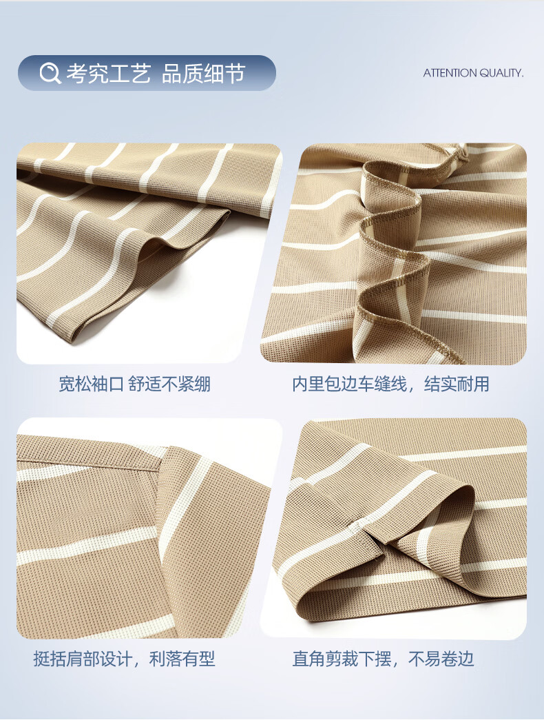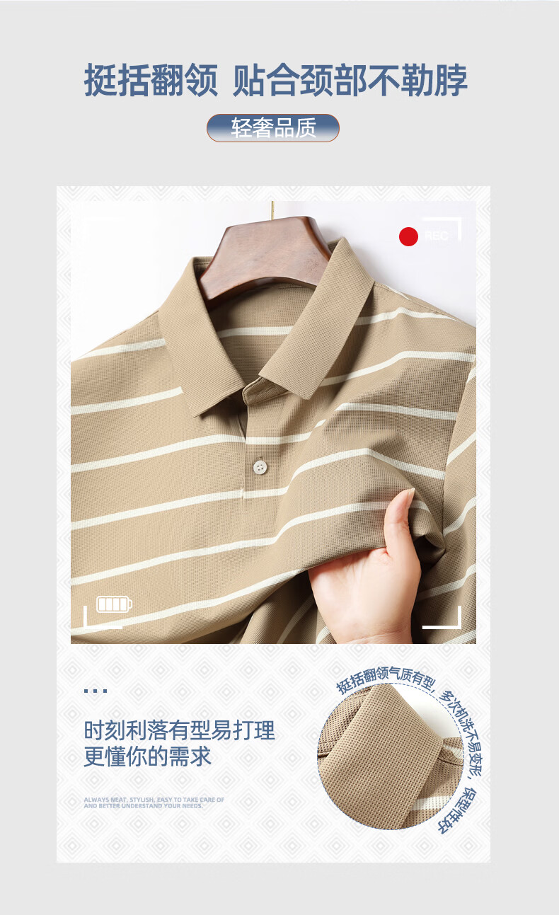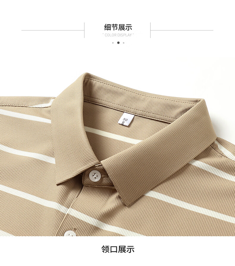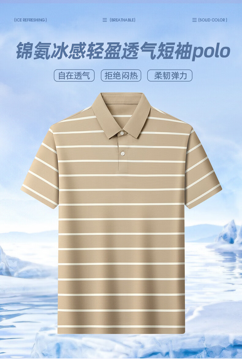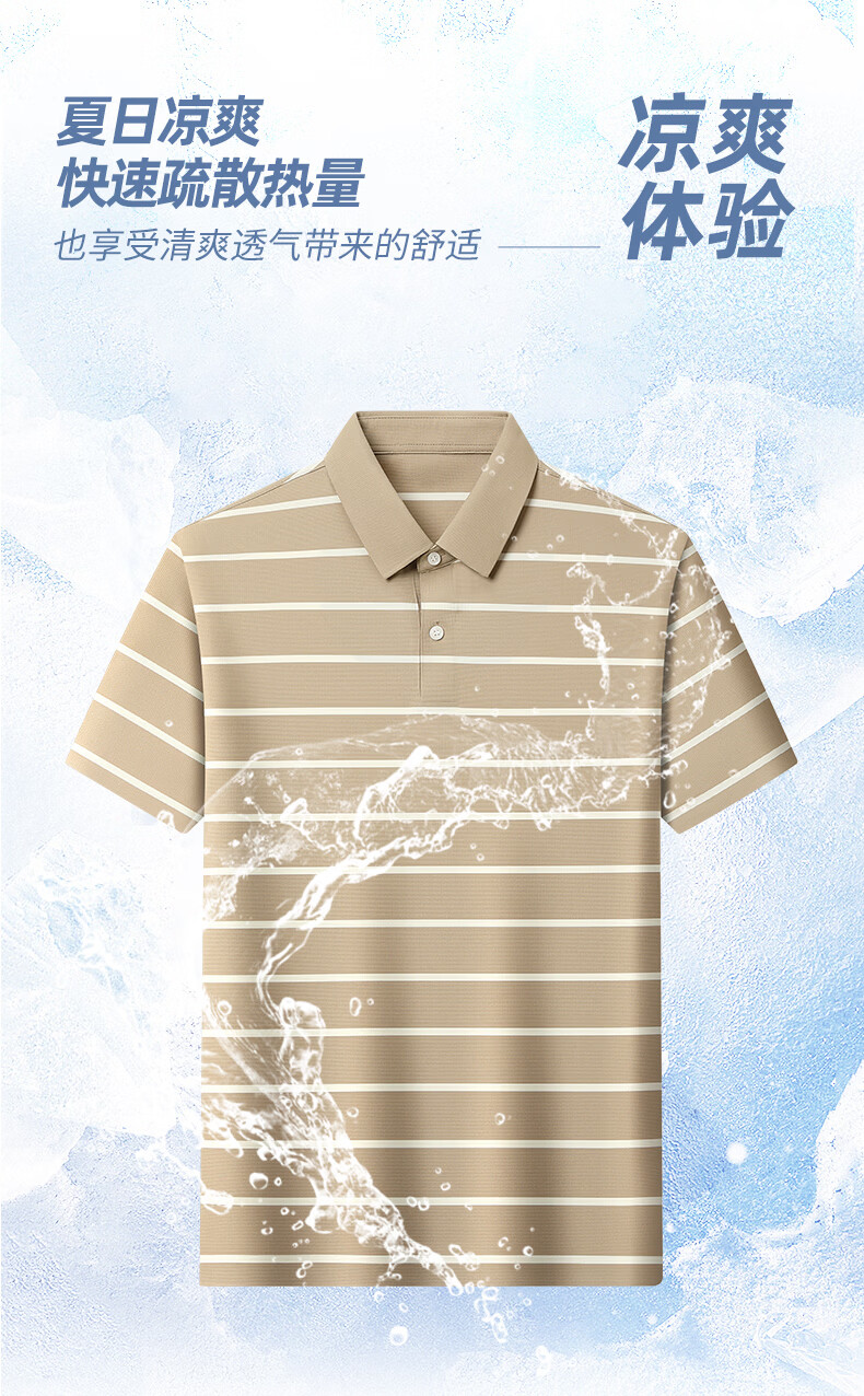 SHANSHAN杉杉【锦氨弹力休闲】短袖t恤男无痕条纹POLO衫夏季新款 卡其色 S /165
