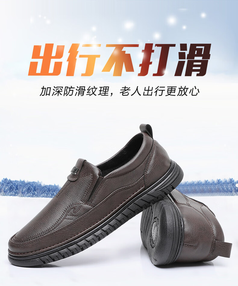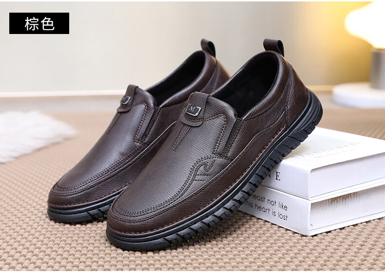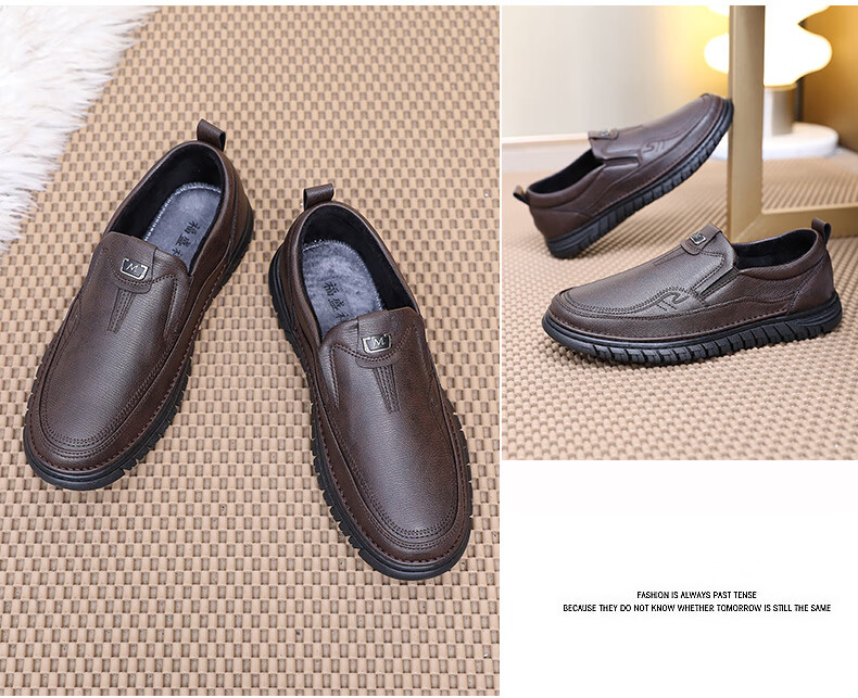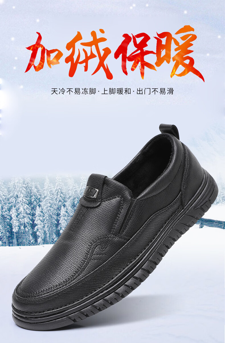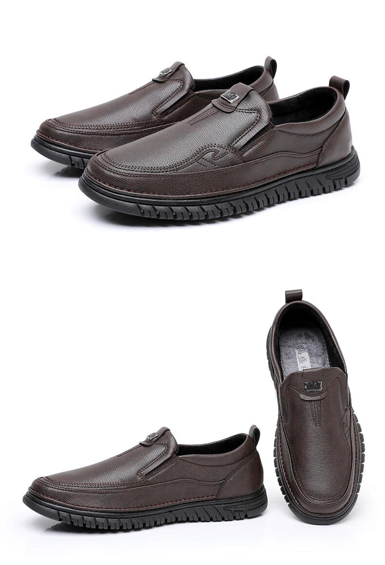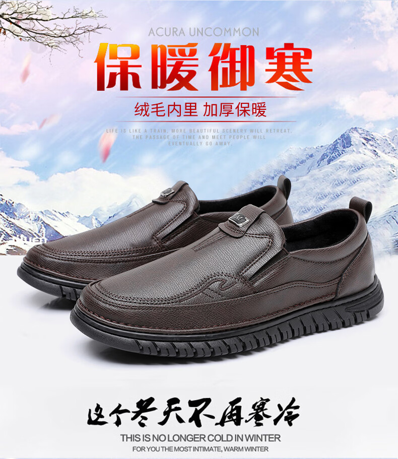 稻草人(MEXICAN)冬季男士二棉鞋薄绒款保暖爸爸鞋时尚仿皮面防水男棉鞋 浅棕色 24932xx 38