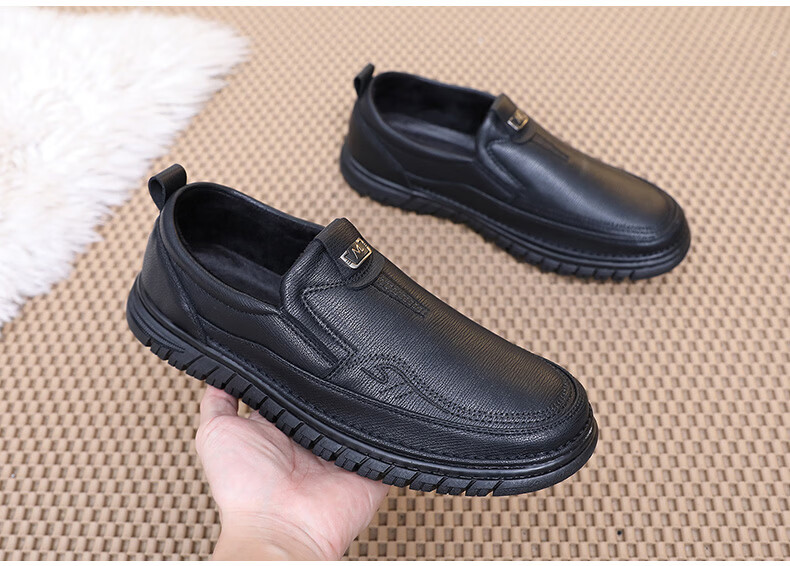 骆驼(CAMEL)牛皮软底舒适通勤休闲轻商务运动皮鞋男士 G15A220076 黑色 42